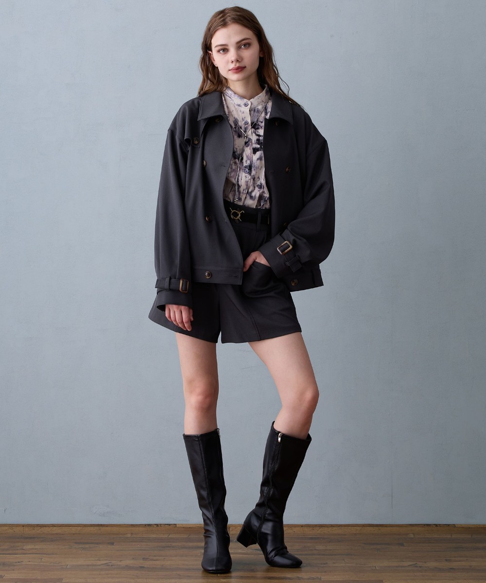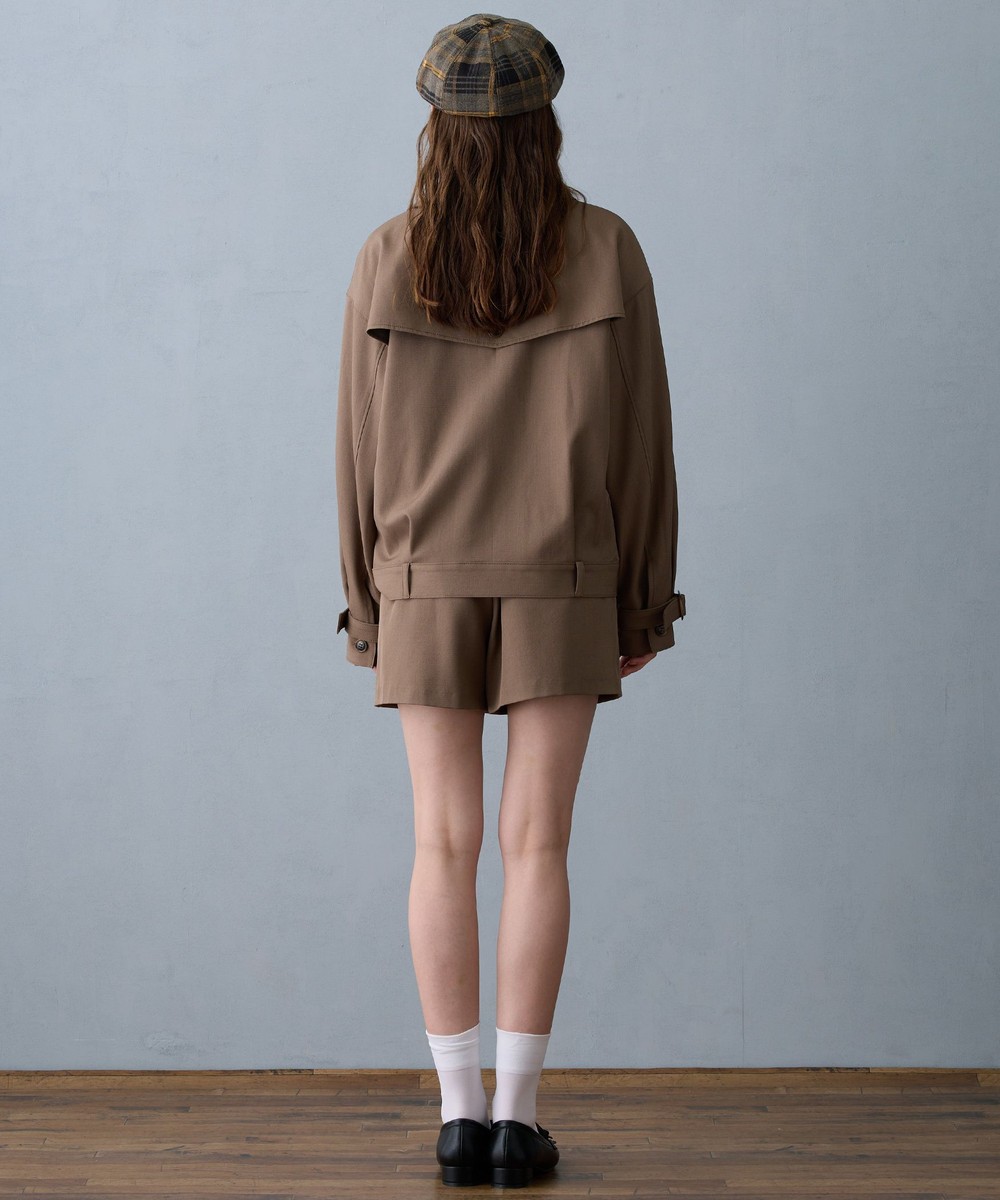 トレンチコートをブルゾン風にアレンジしたようなジャケット。