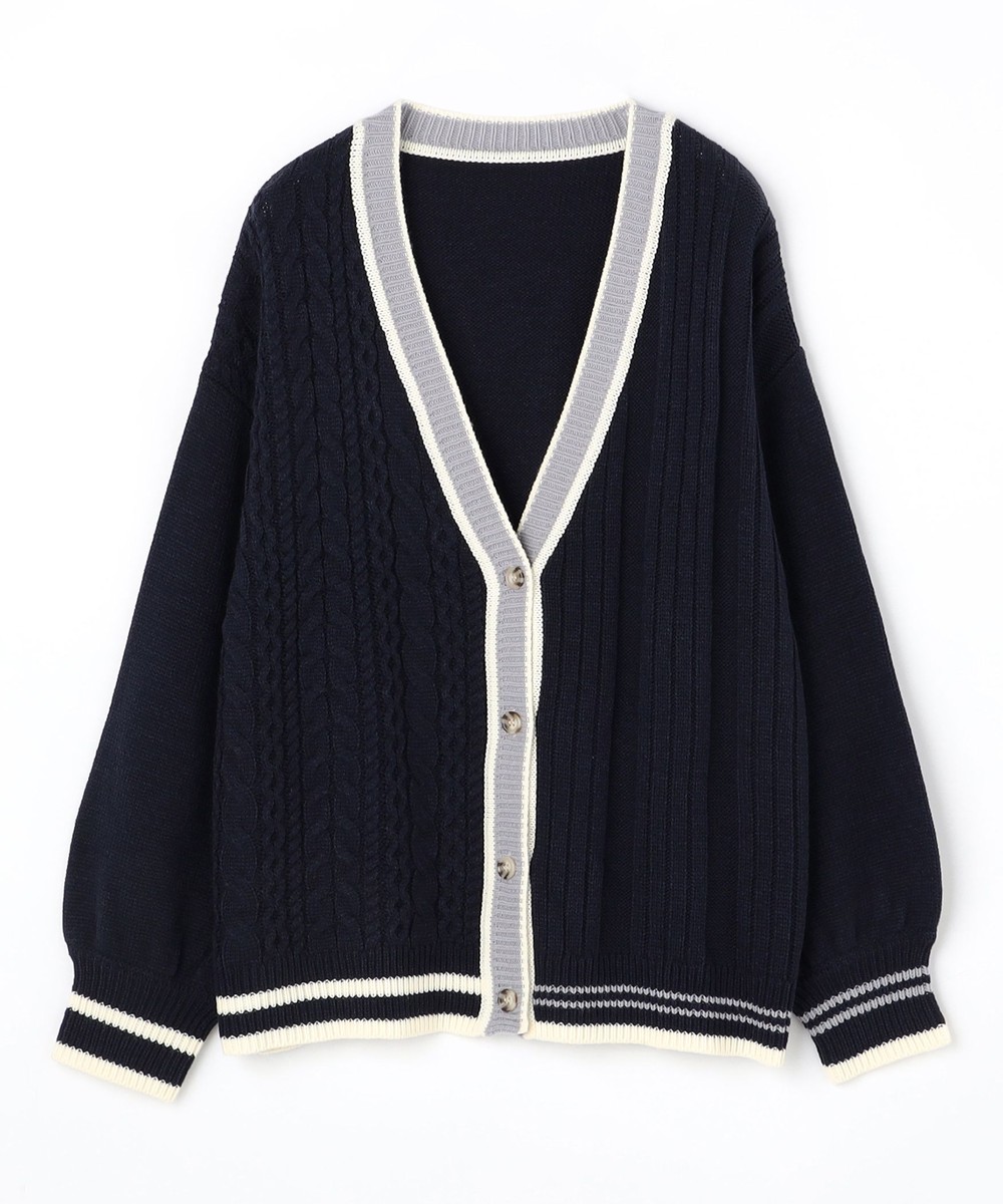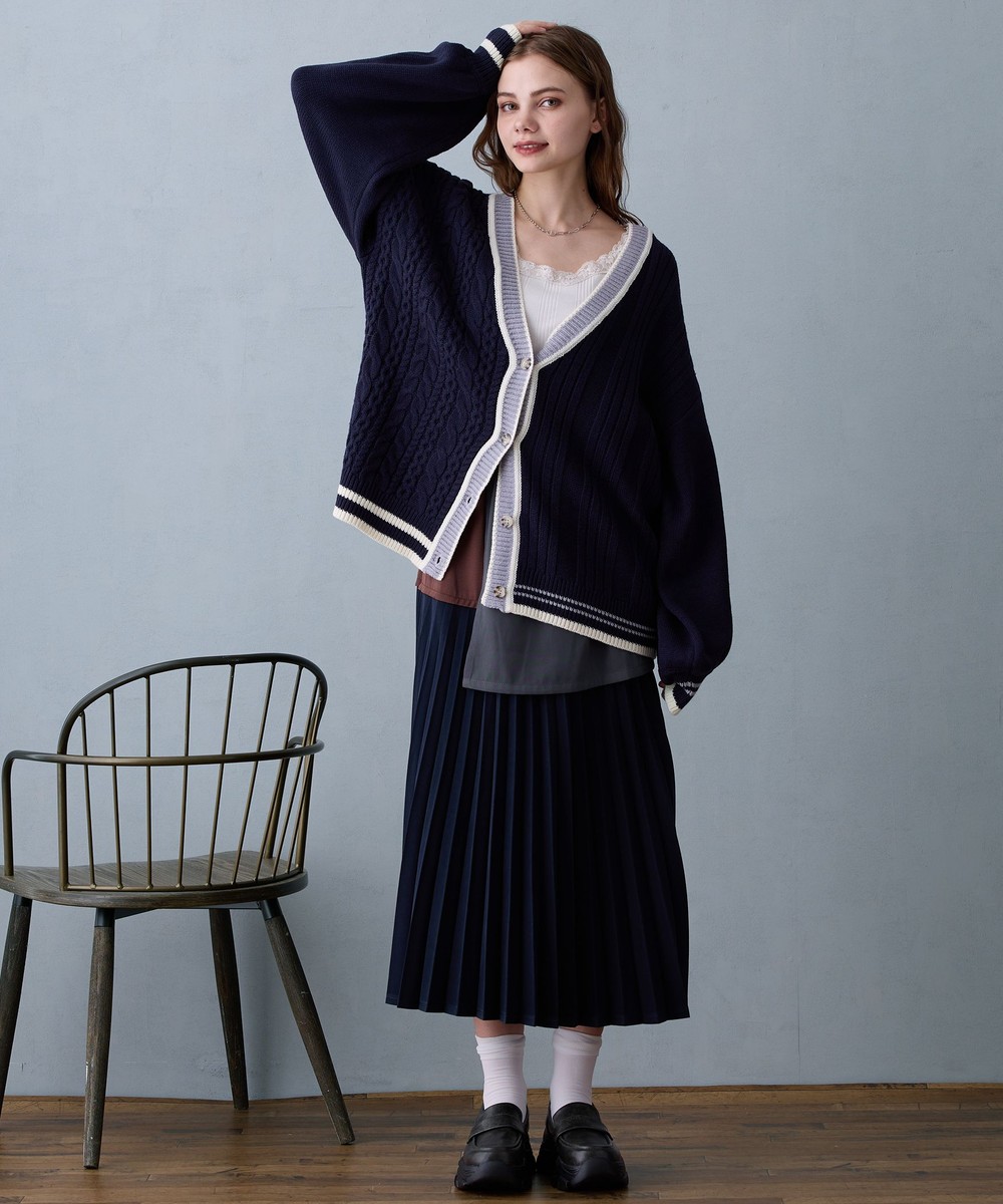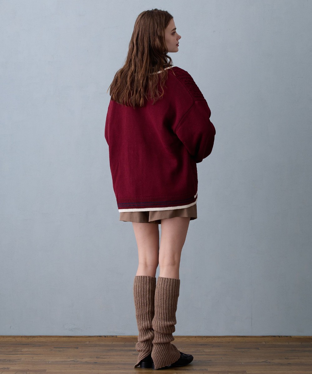 アシンメトリーな編地と配色が目を惹くオーバーサイズのチルデンカーディガンが新登場!