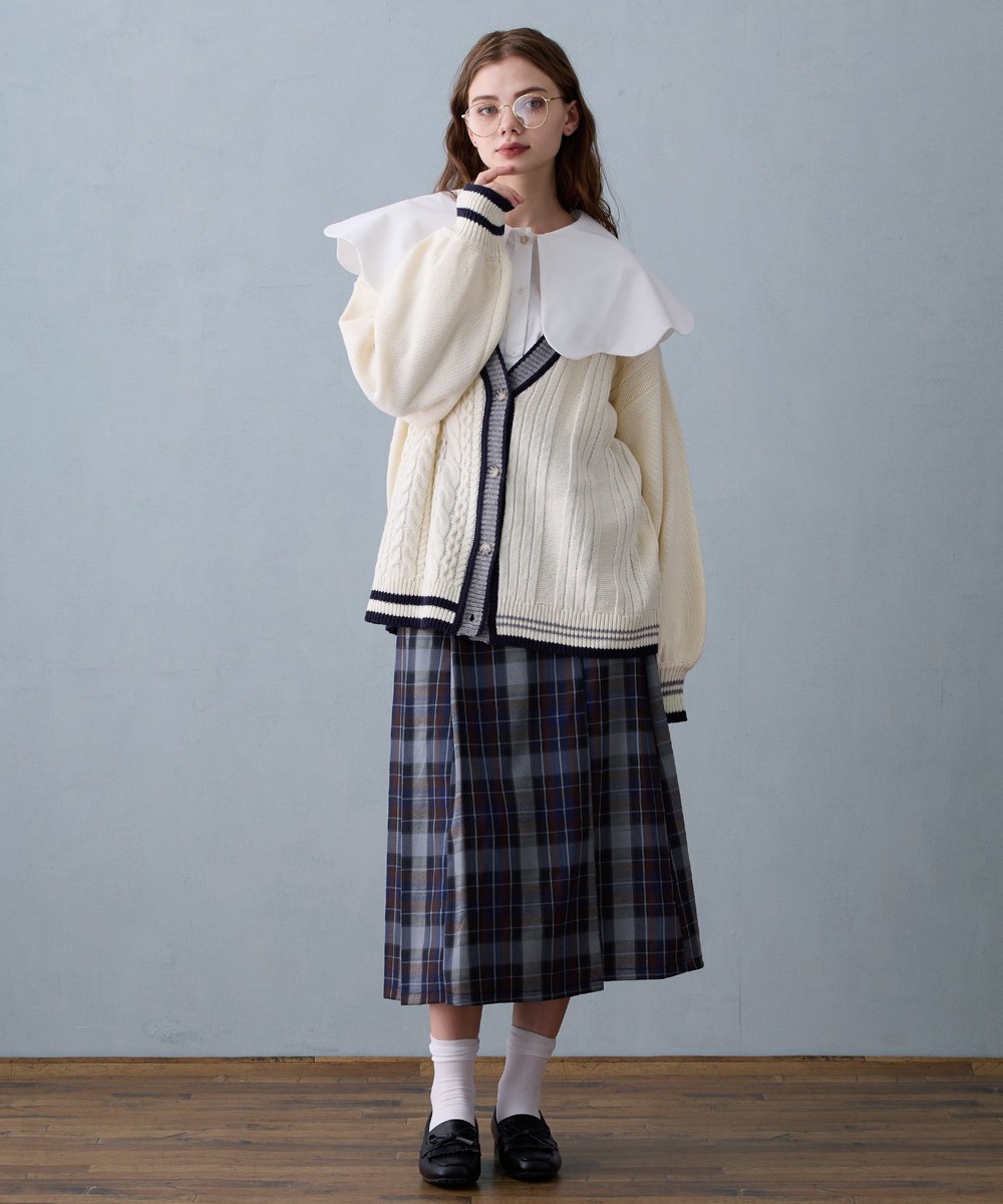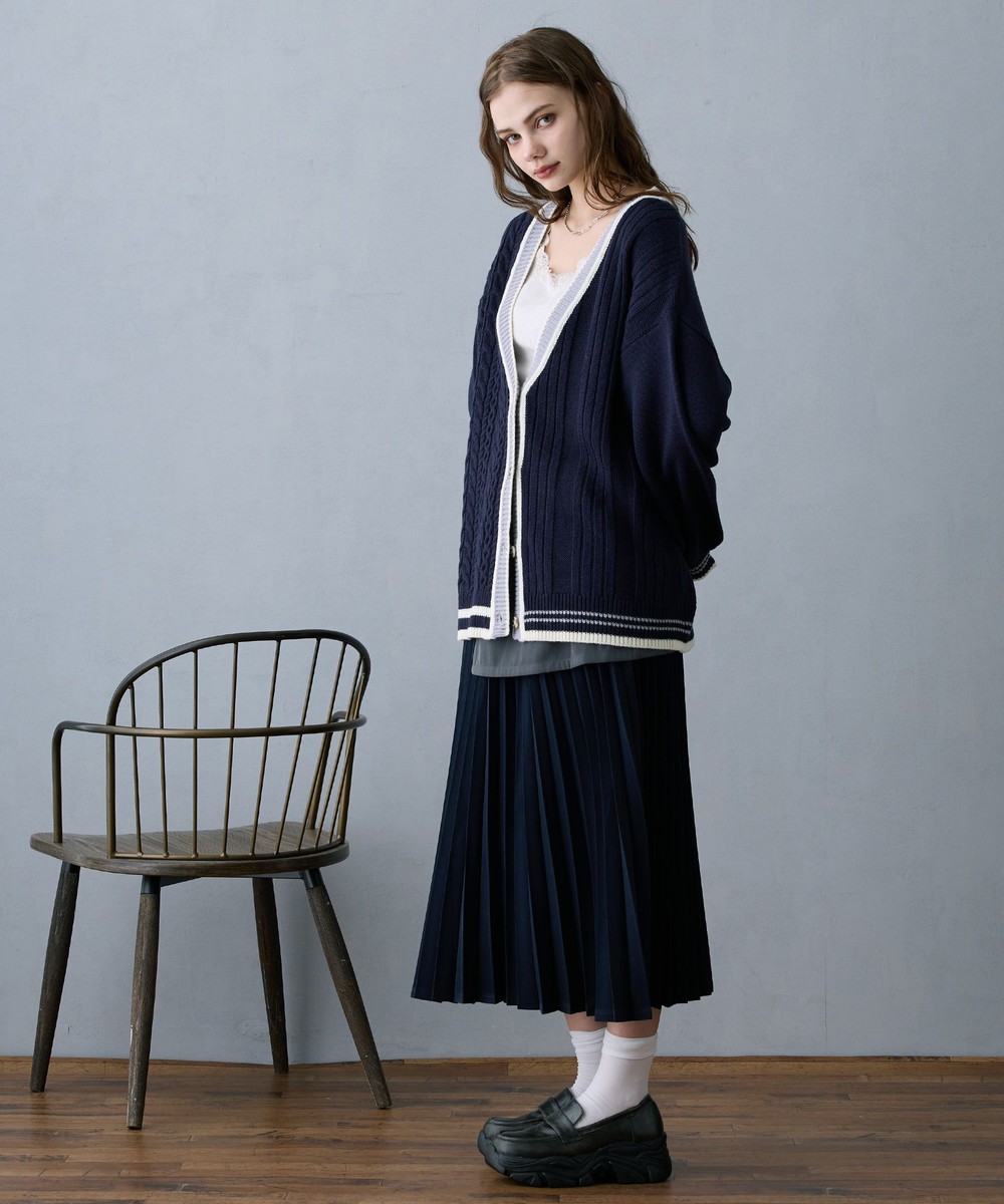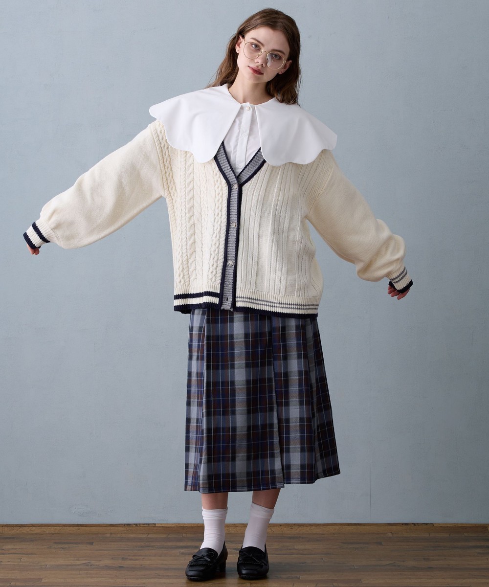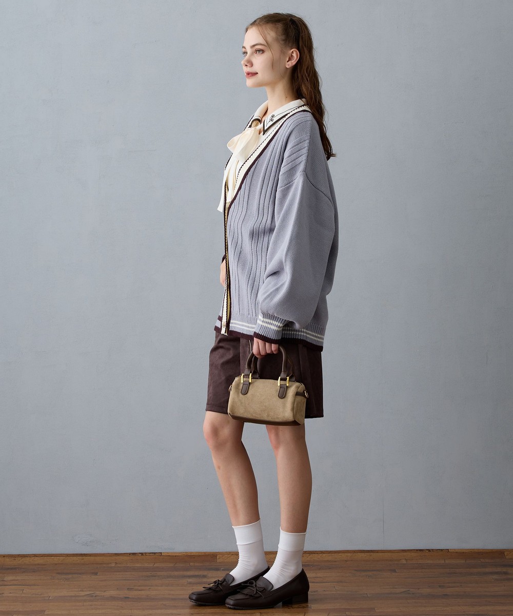 アシンメトリーな編地と配色が目を惹くオーバーサイズのチルデンカーディガンが新登場!