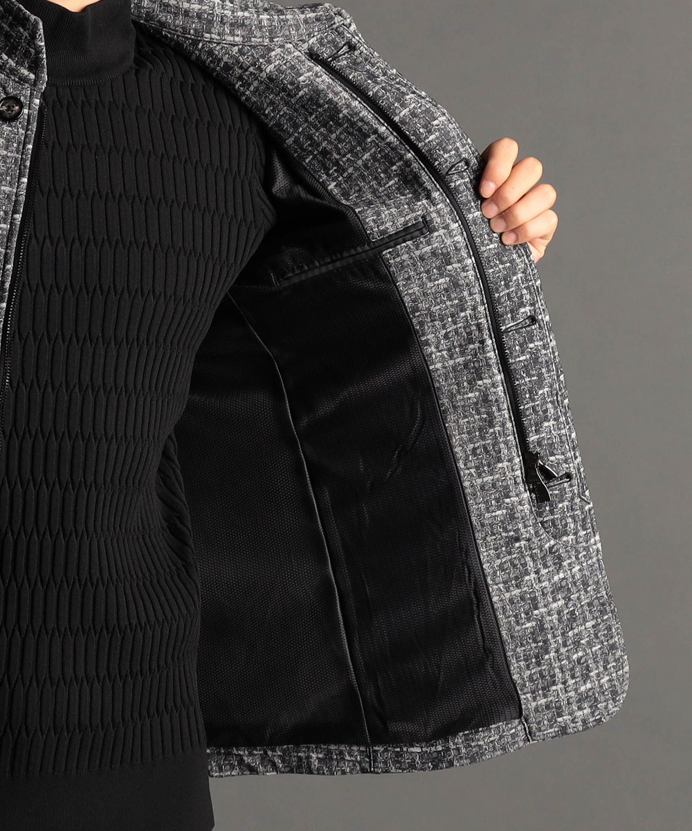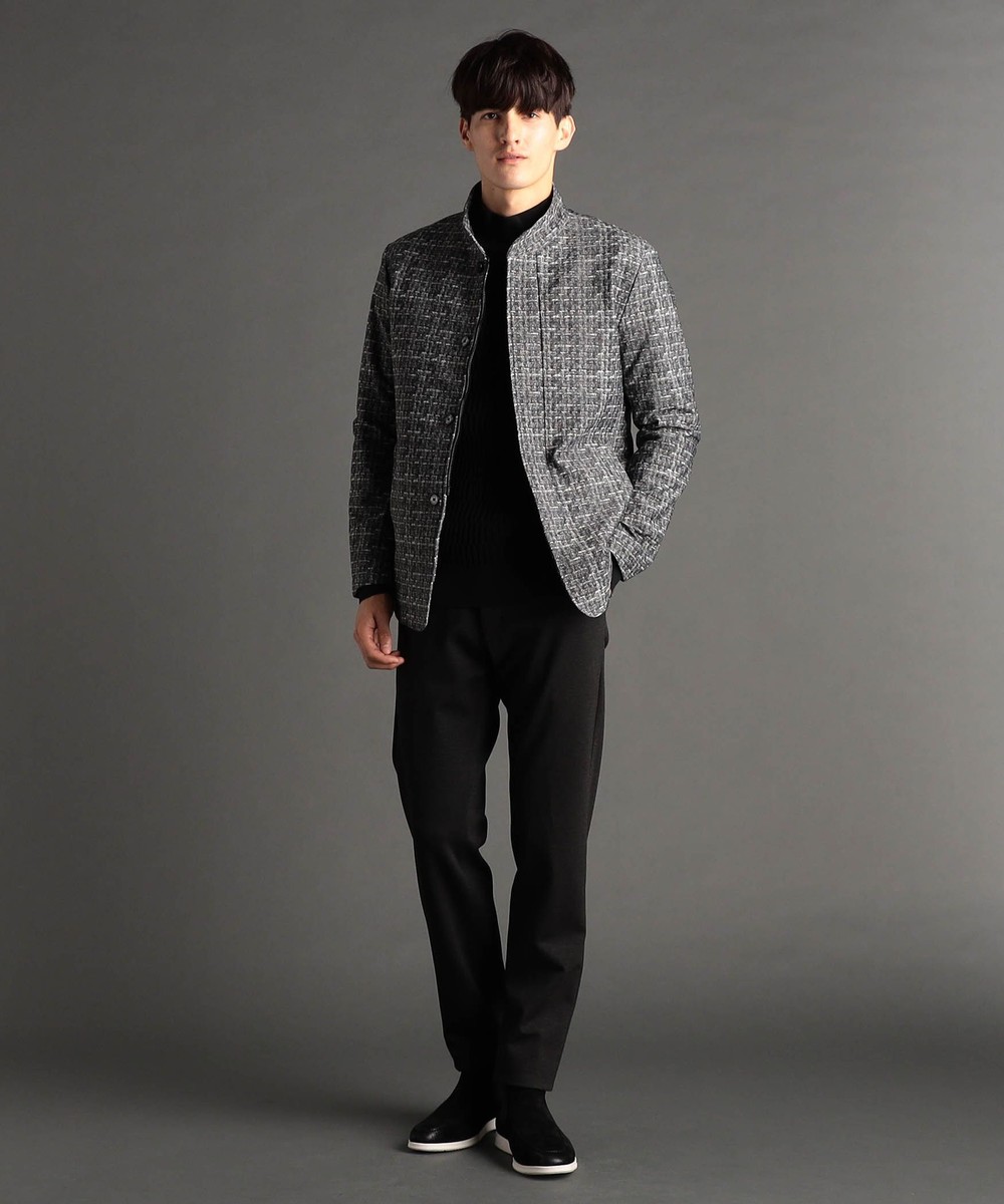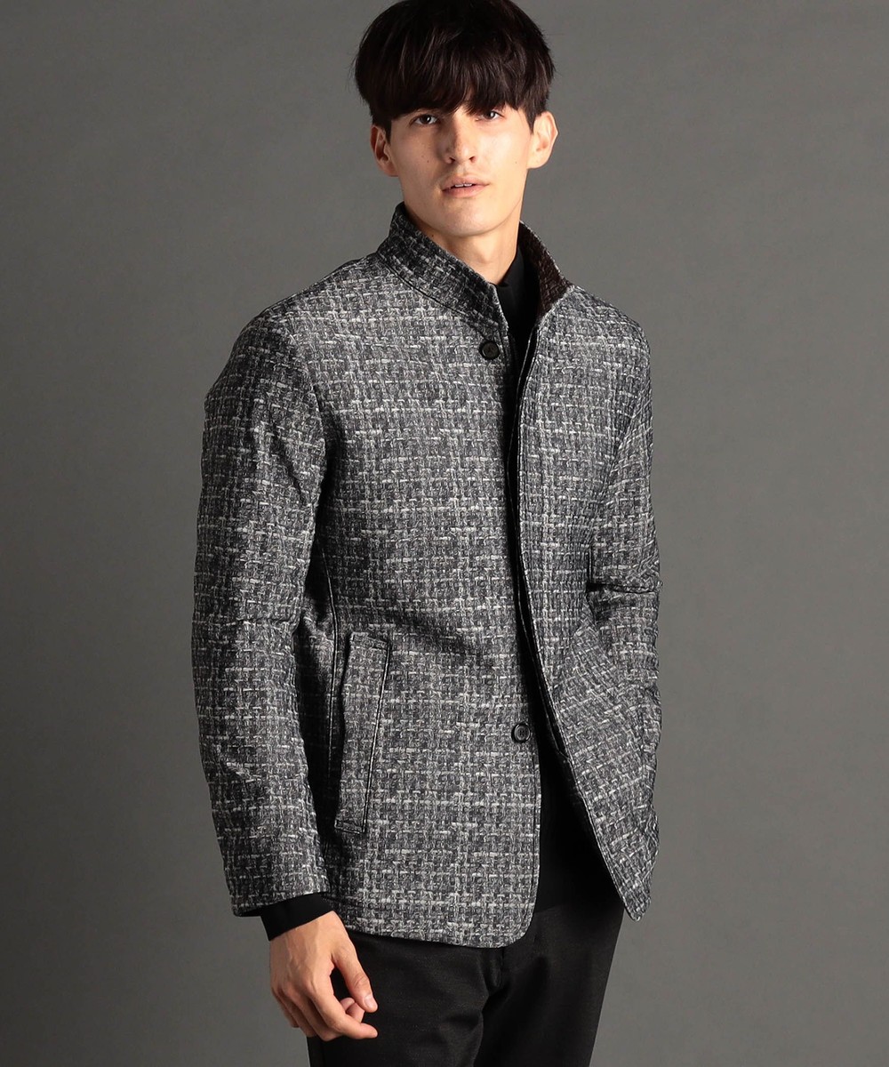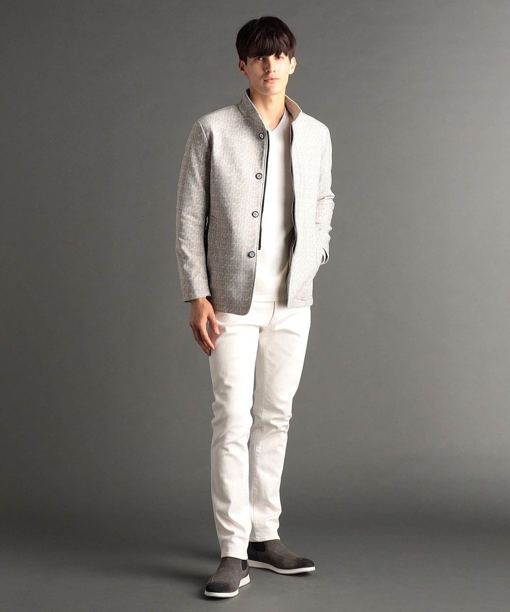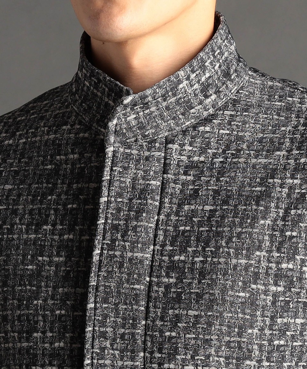 ジップ&ボタン比翼のスタンドカラーブルゾン。