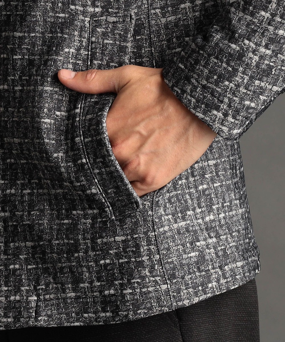 グラフィックチェックプリントトリコット スタンドカラーブルゾン