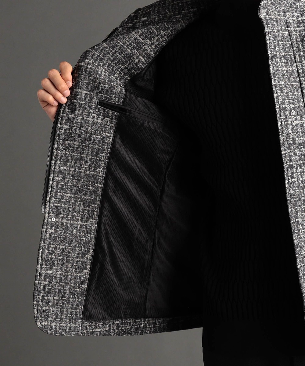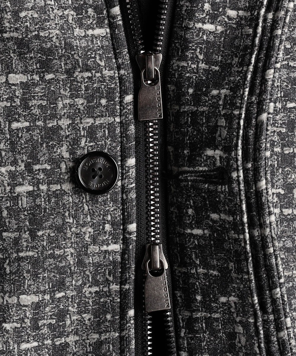 衿回りのワイヤーと、フロントジップ&ボタン比翼で、自在のスタイリングを提案。