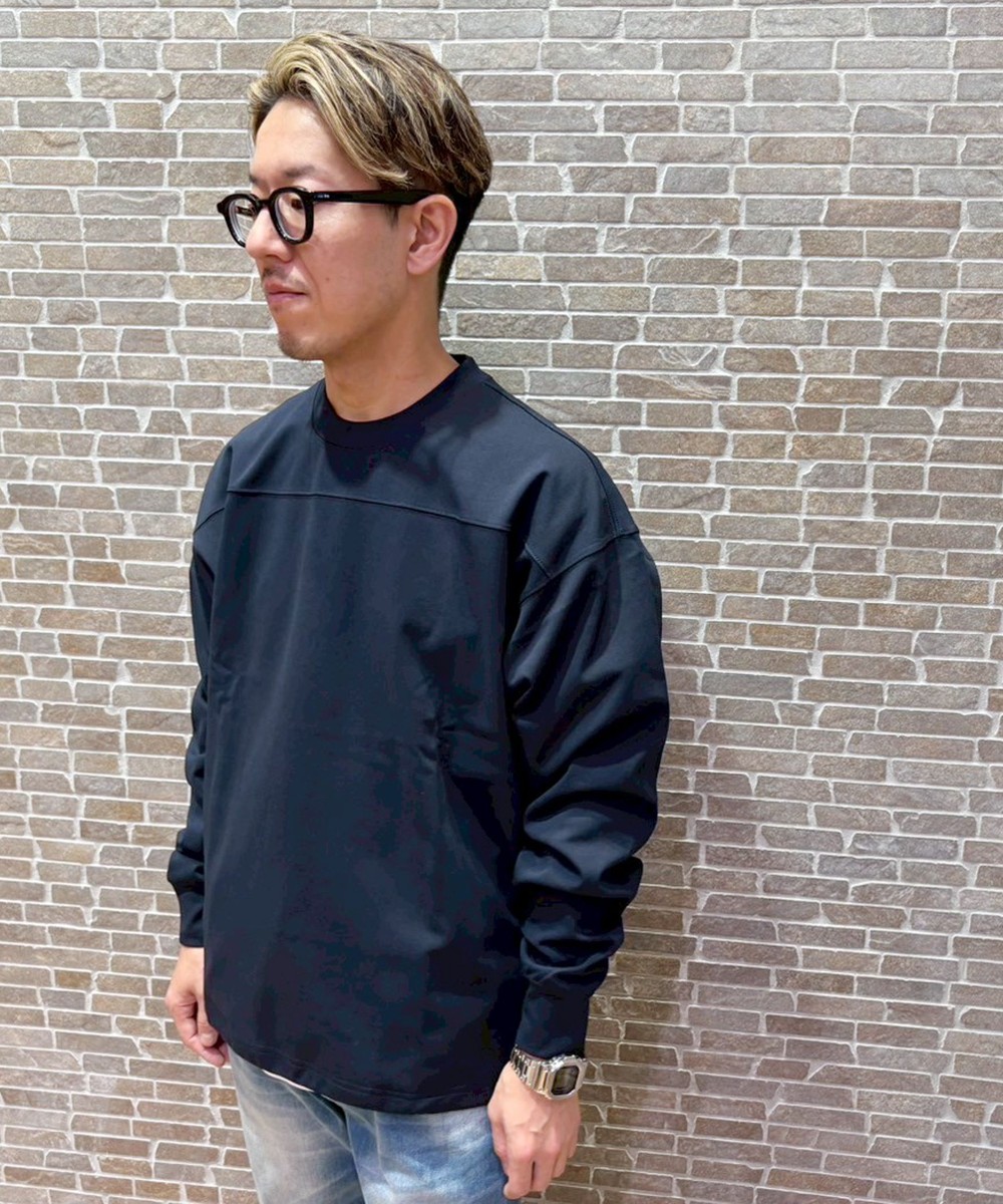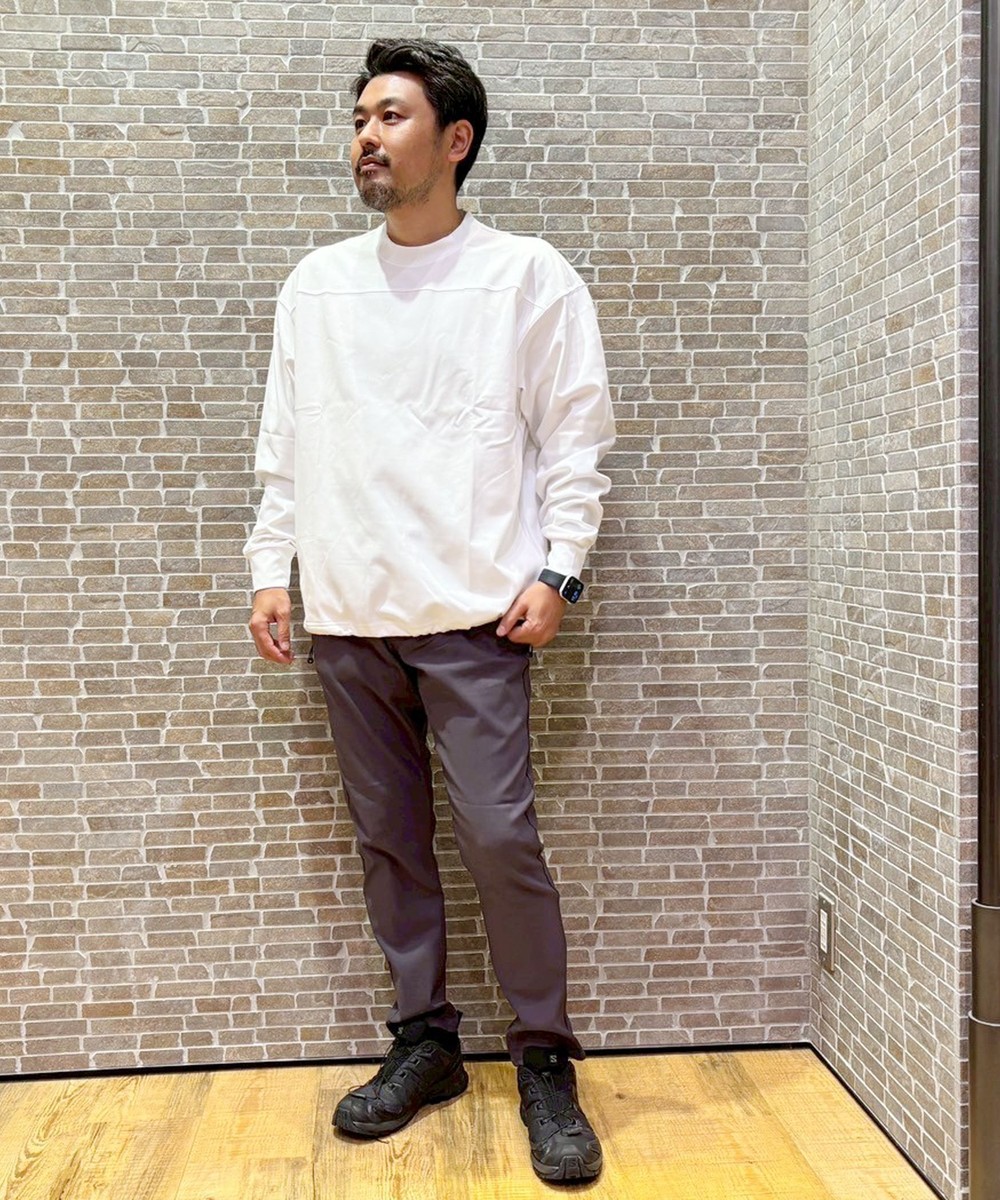 機能性と快適さを兼ね備えた、マルチシーンで活躍するロングスリーブカットソー。Tシャツ感覚で気軽に着用でき、セットアップスタイルも可能な万能アイテムです。