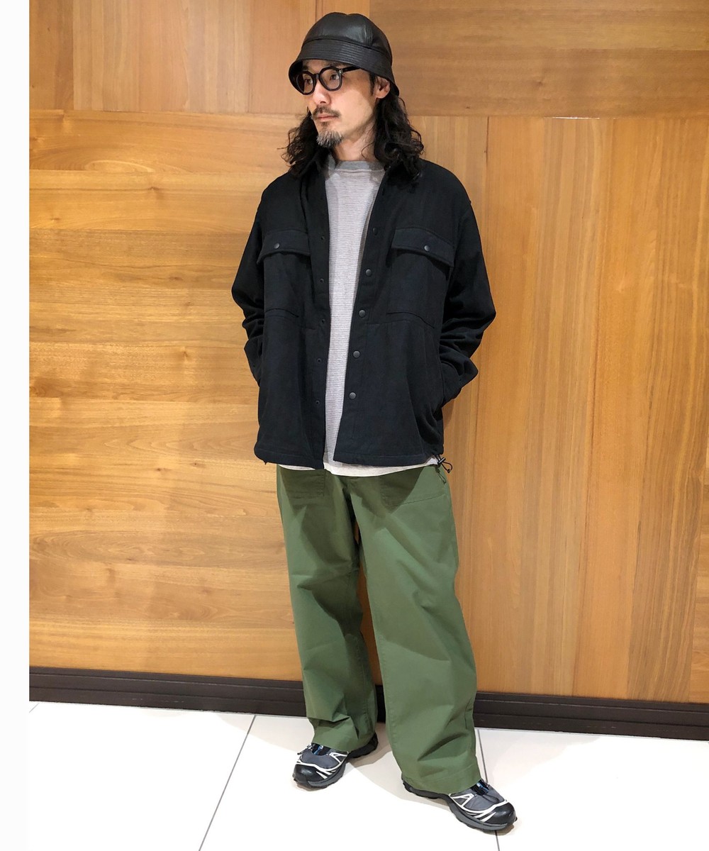 程よくゆとりをもたせたサイズ設計で、インナーにスウェットなども着込みやすく、軽アウターとしても使える仕様です。