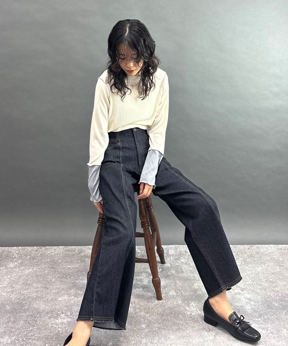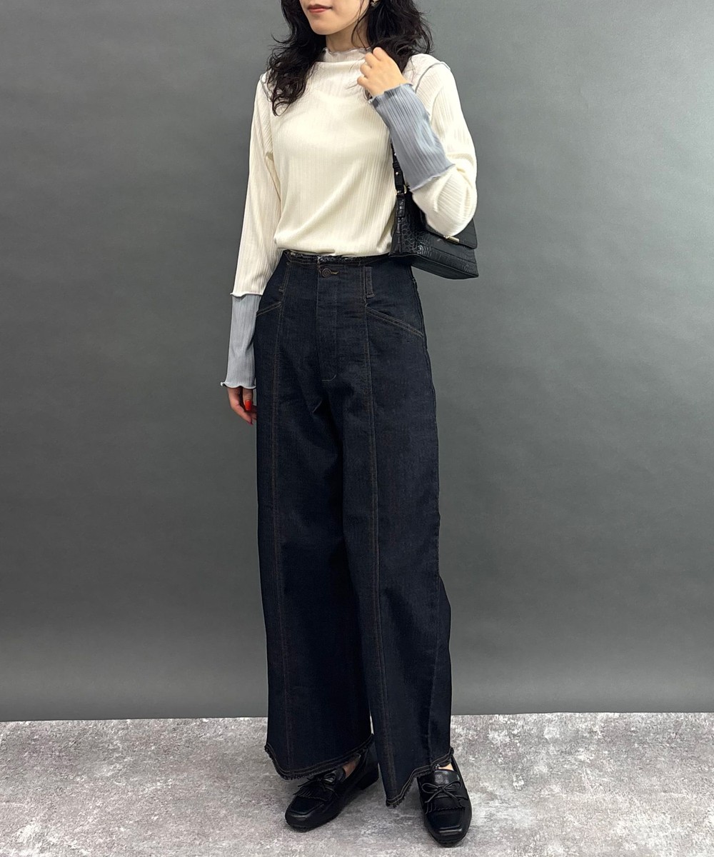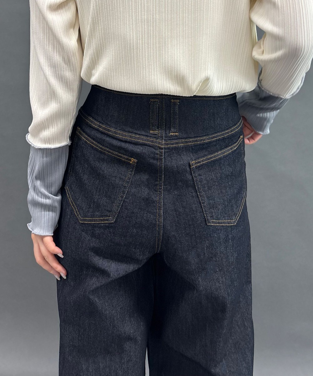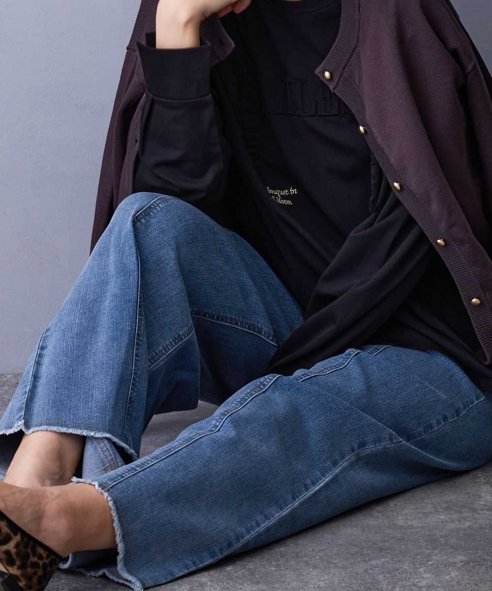 ウエストは断ち切りでラフさを、中心のステッチワークが足のラインをきれいにみせてくれます。