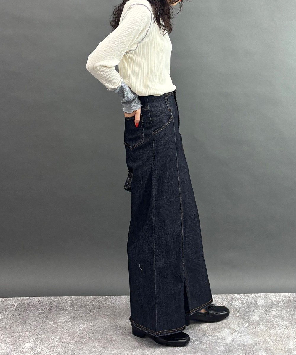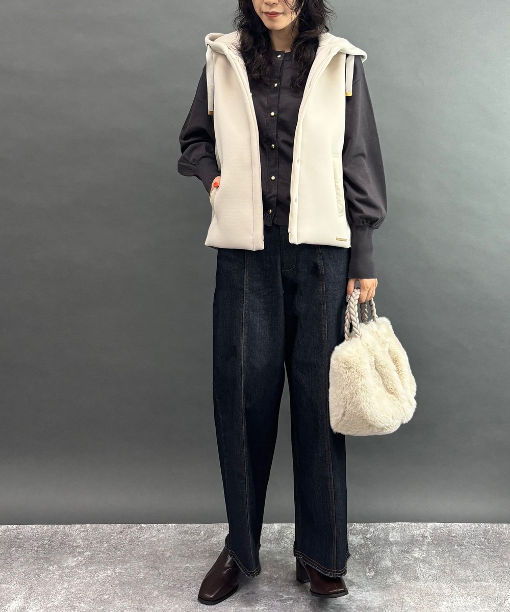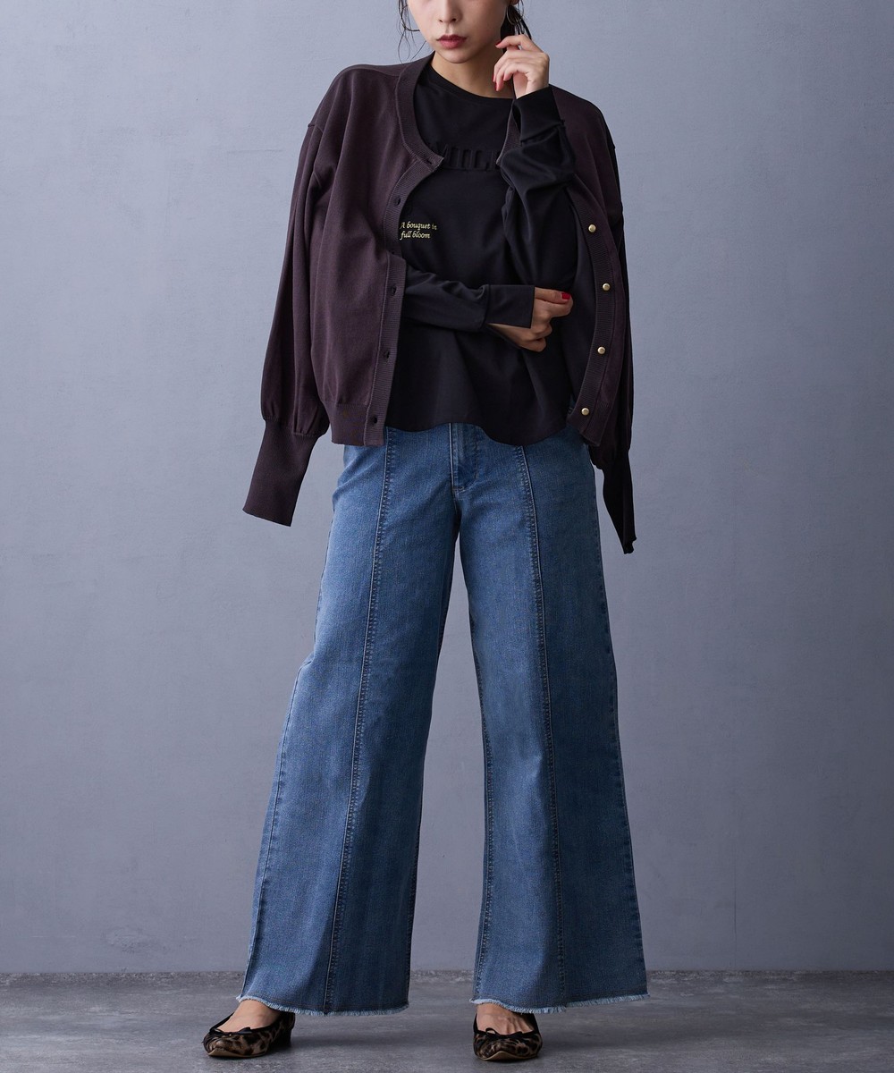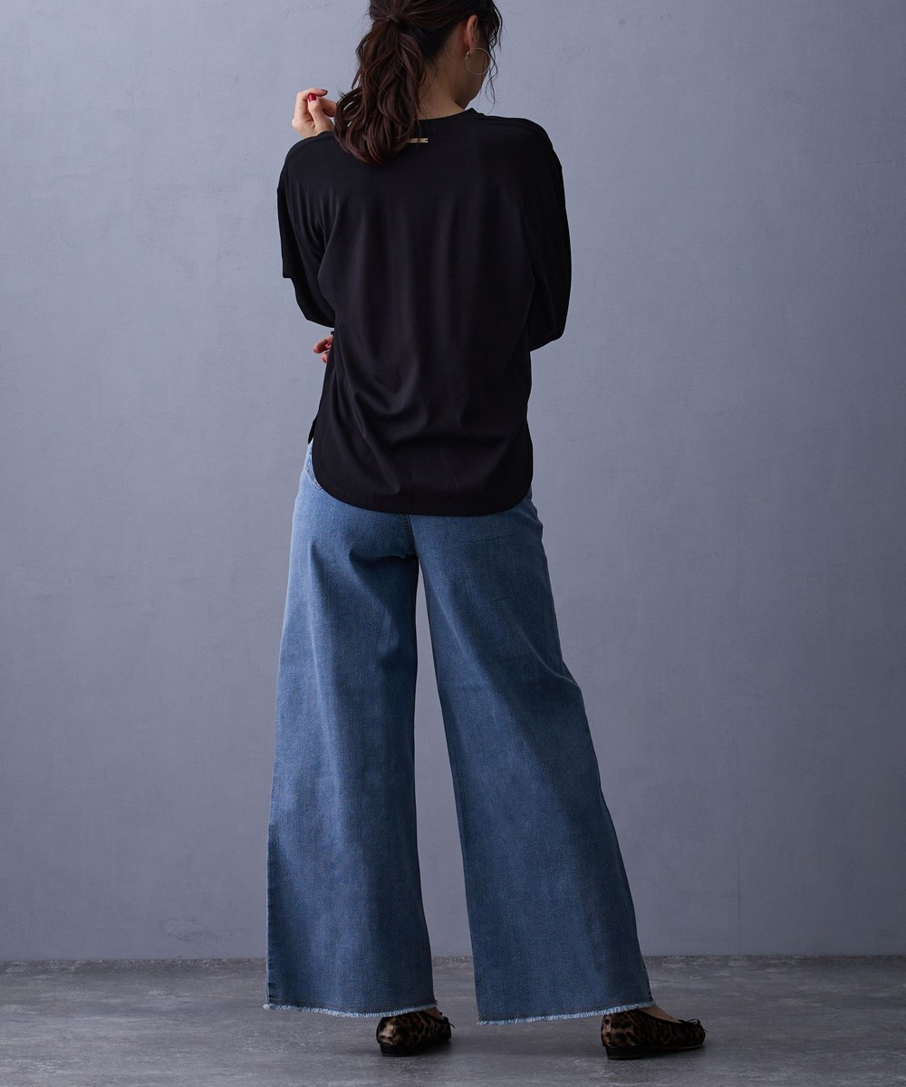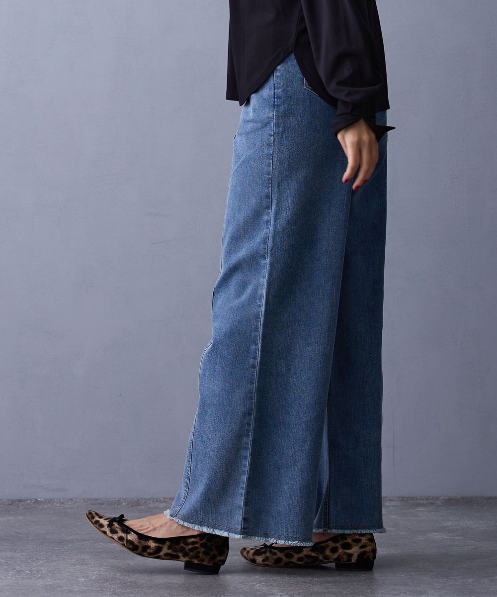 ウエストは断ち切りでラフさを、中心のステッチワークが足のラインをきれいにみせてくれます。