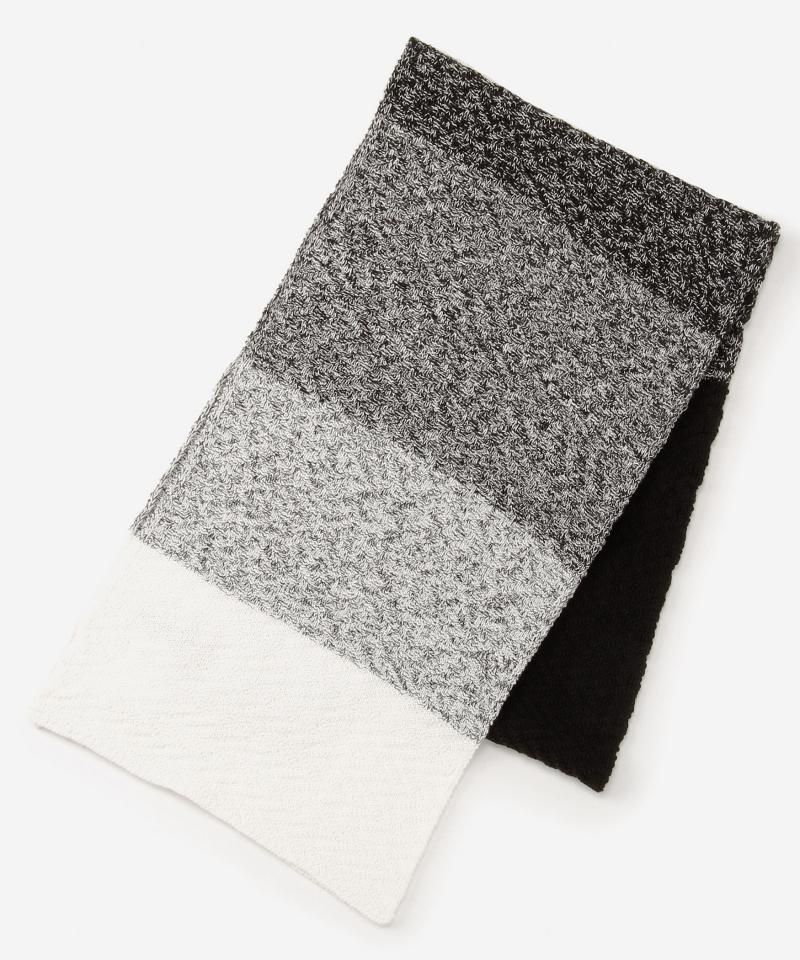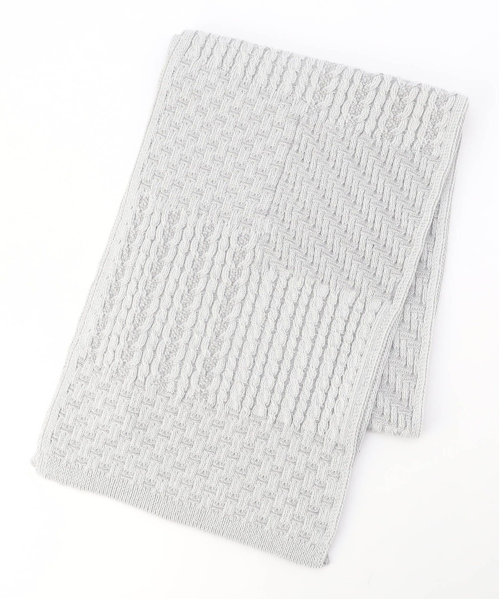5564-6300<10月>同素材同編地企画です。ポリエステル糸を使用している為軽く、さらりと巻いただけでサマになる存在感抜群のストールに仕上がっています。