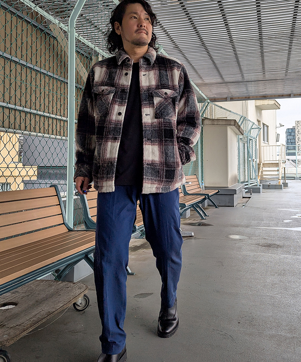 ●CPOシャツとは、Chief Petty Officer(チーフ・ペティ・オフィサー)の略。アメリカ海軍の下士官を指し、その下士官が着用していた作業用シャツをルーツとするシャツジャケットのことです。特徴的なのは、襟付きで胸に大きなフラップ付きのポケットが付いている点です。厚手のウール素材で作られていることが多く、アウターとしても使えるシャツとして人気があります。
