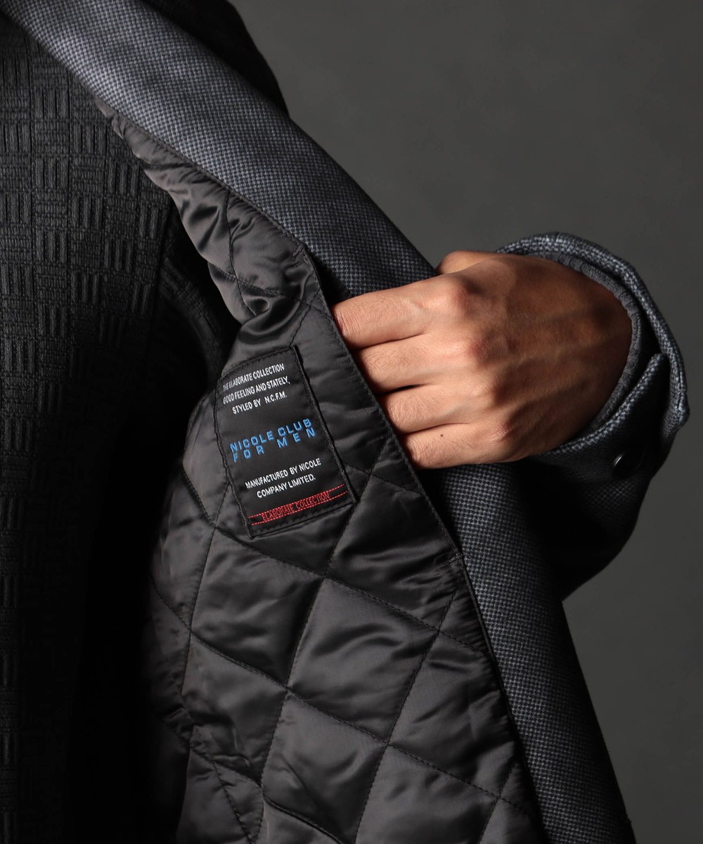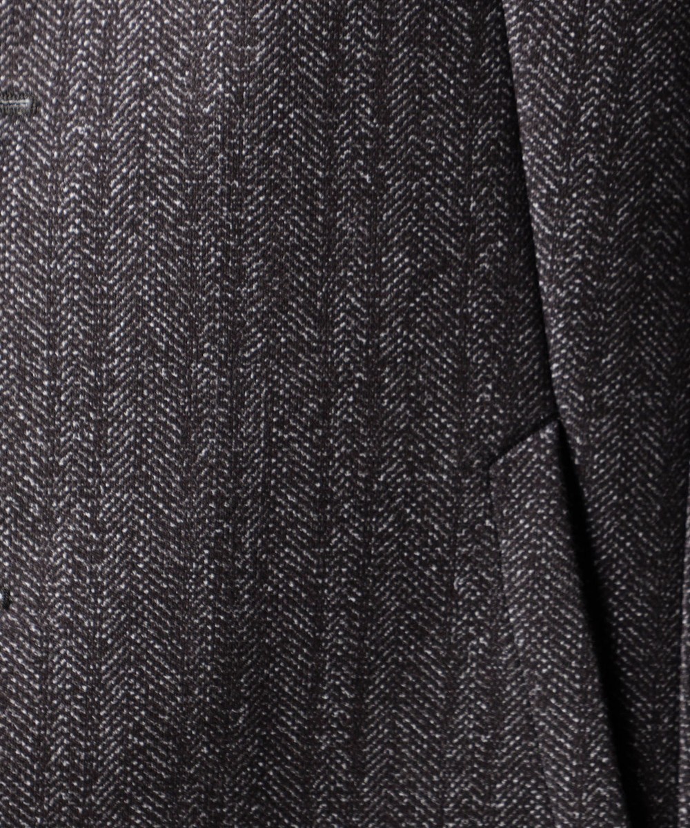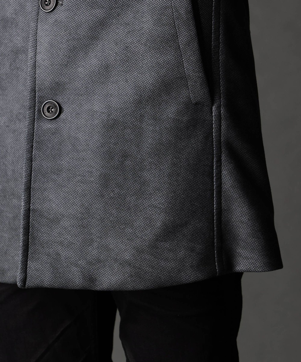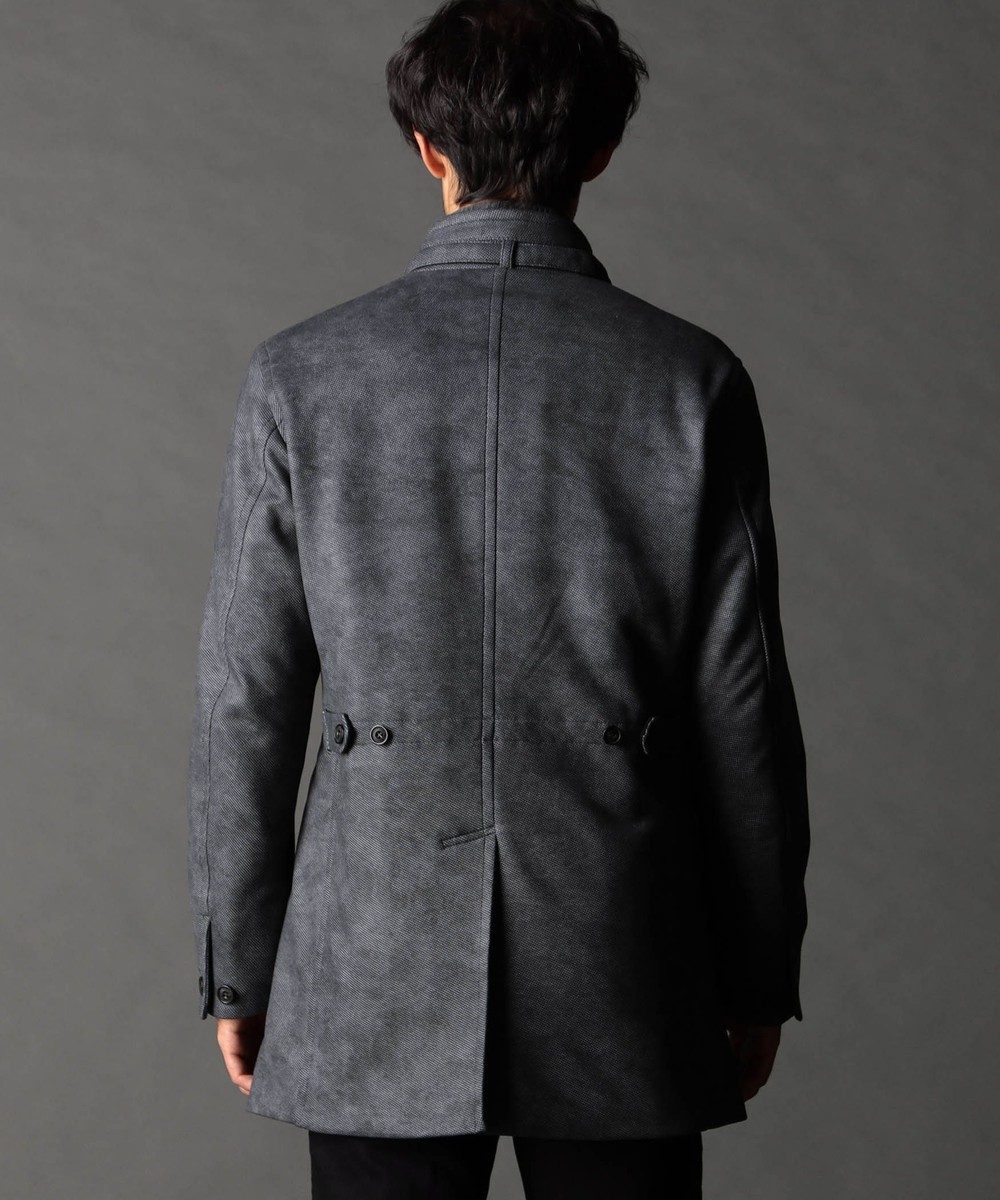 ウエストシェイプを入れた綺麗なシルエットです。設定上は中にジャケットが着用出来る位のゆとりをつけたコート用のサイズにしています。後身頃にタブを付けてアジャスト機能も付けていますので、よりシャープなシルエットで着用を楽しめます。