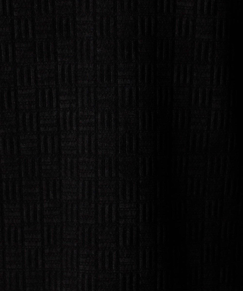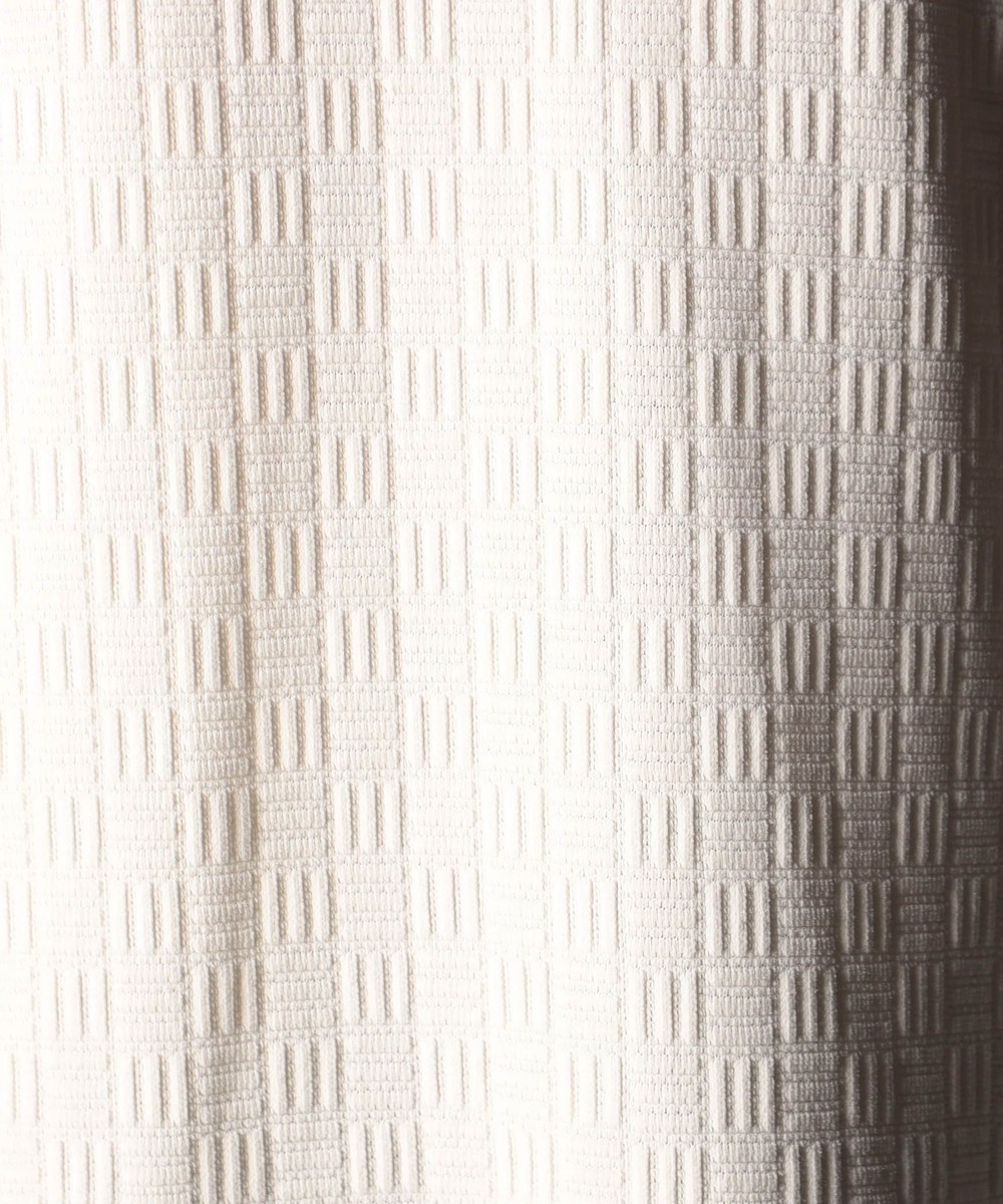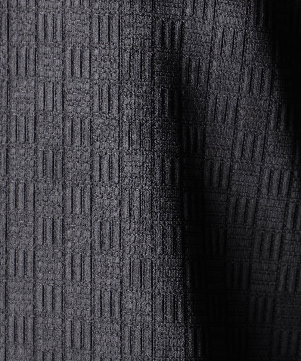 3本のラインを縦横交互に組み合わせ、編み方で凹凸を出してブロックチェック柄を表現したベロア素材。ベロアならではの程よい光沢感がありながら綿素材特有のナチュラルな風合いも併せ持った上品な印象の生地です。カットソーですので張りのあるストレッチ性も備えています。