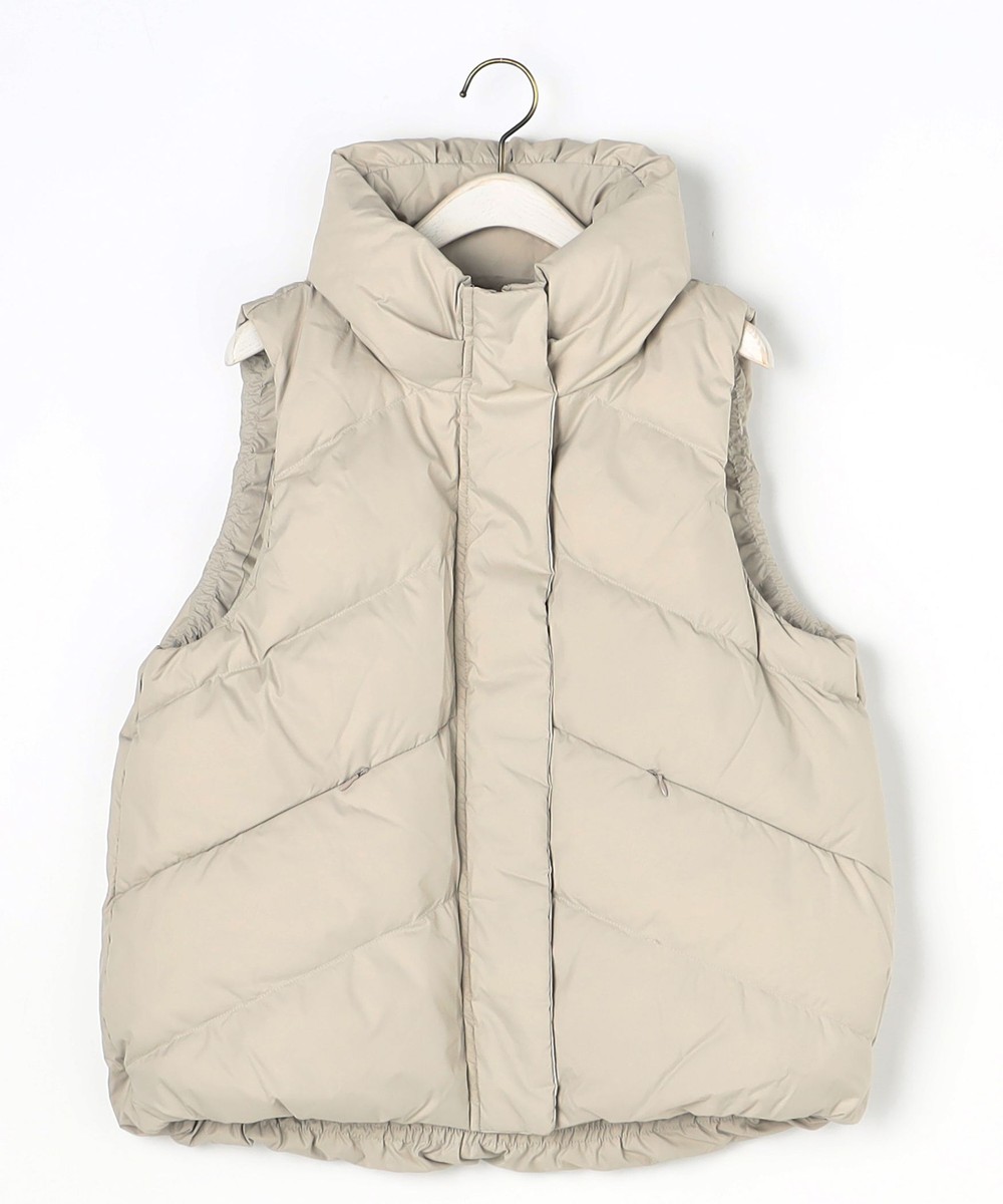 ボリュームスタンドの衿がポイントになるダウンベストです。