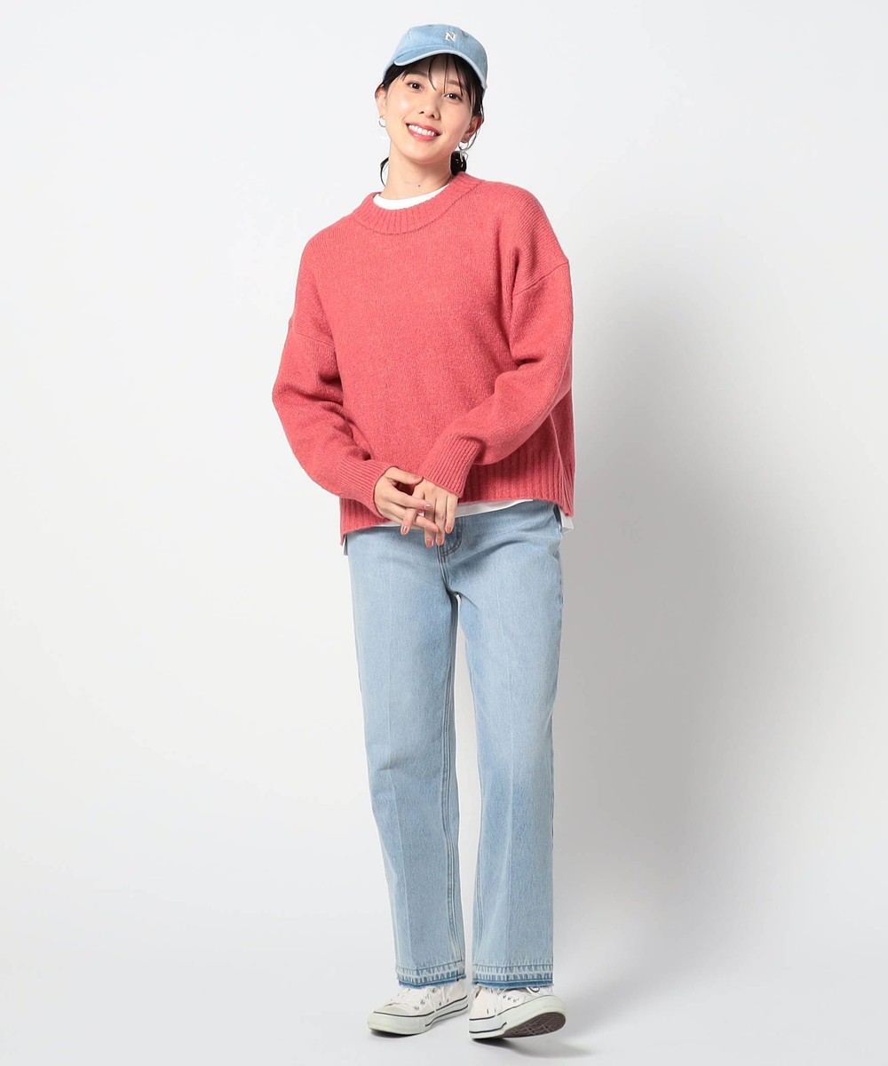 クロップド丈のややワイドシルエットのプルオーバーニットです。