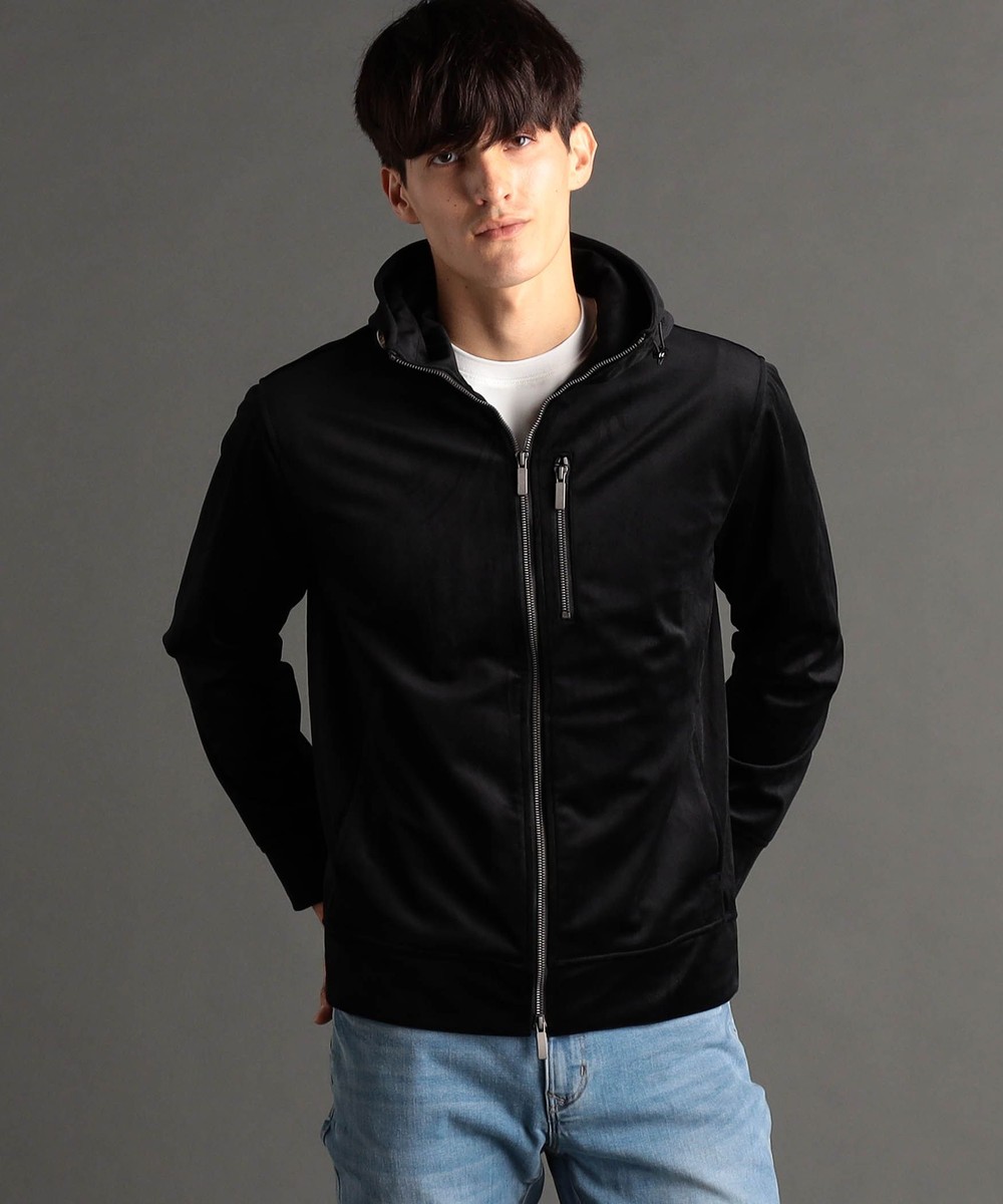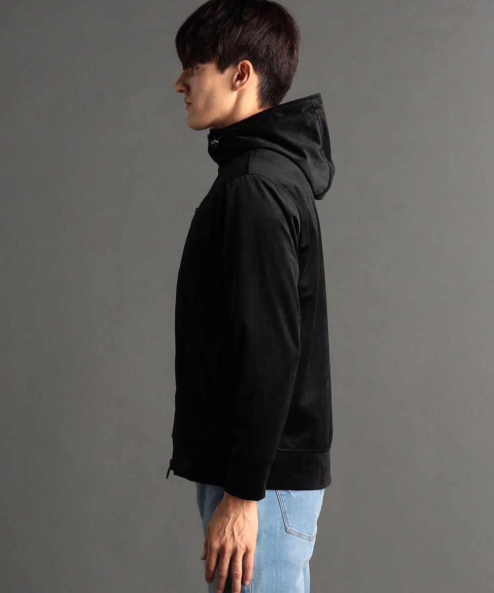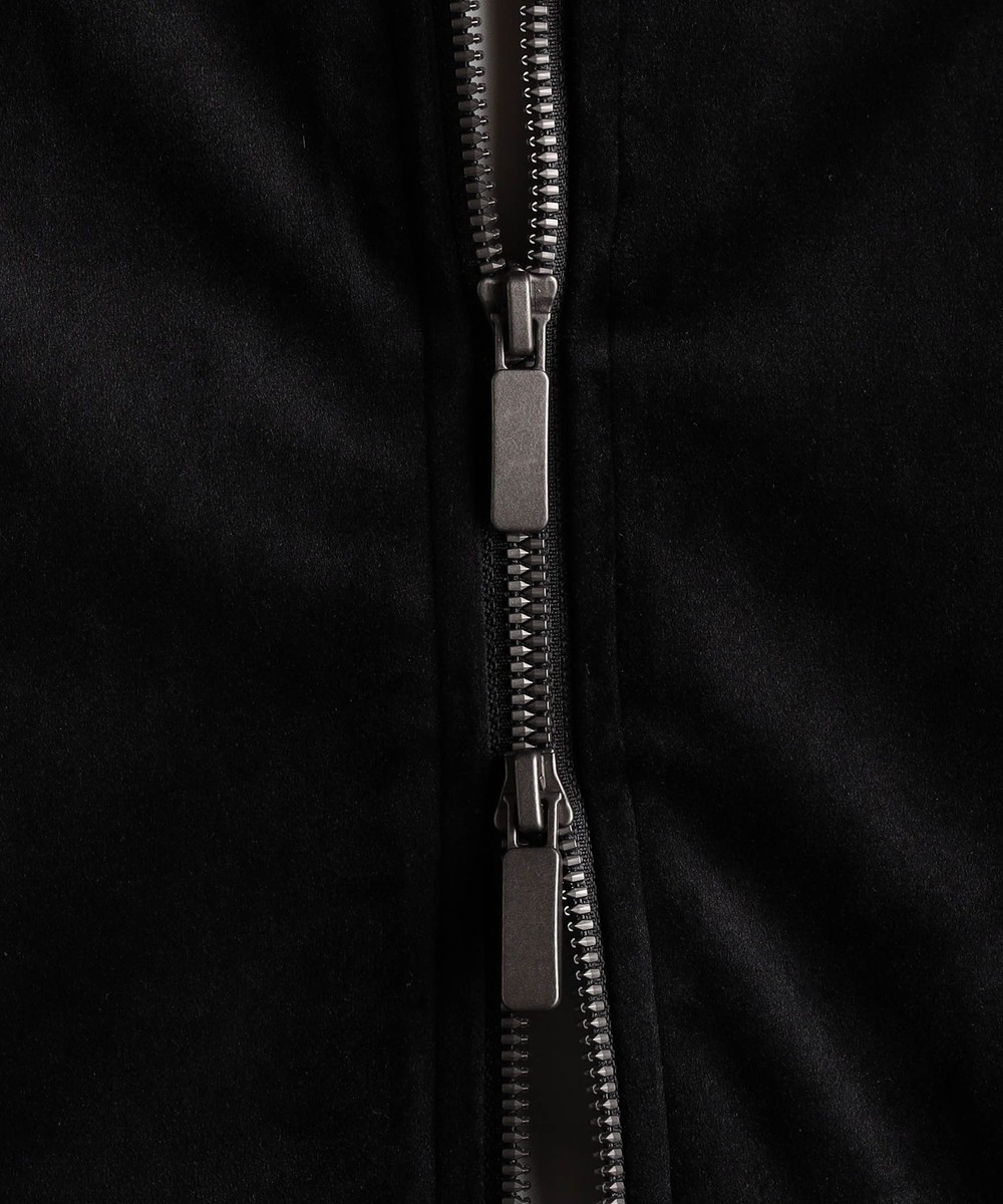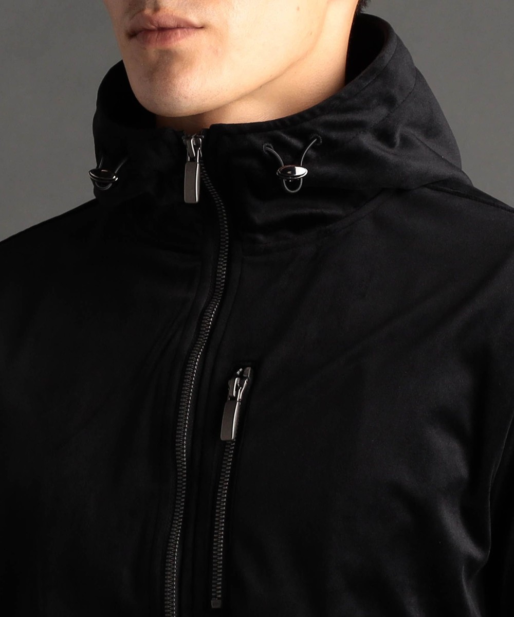 首元までしっかりと立つフードがポイント。フロントジップはダブル仕様で気分に合わせてフォルムを変える事が可能。