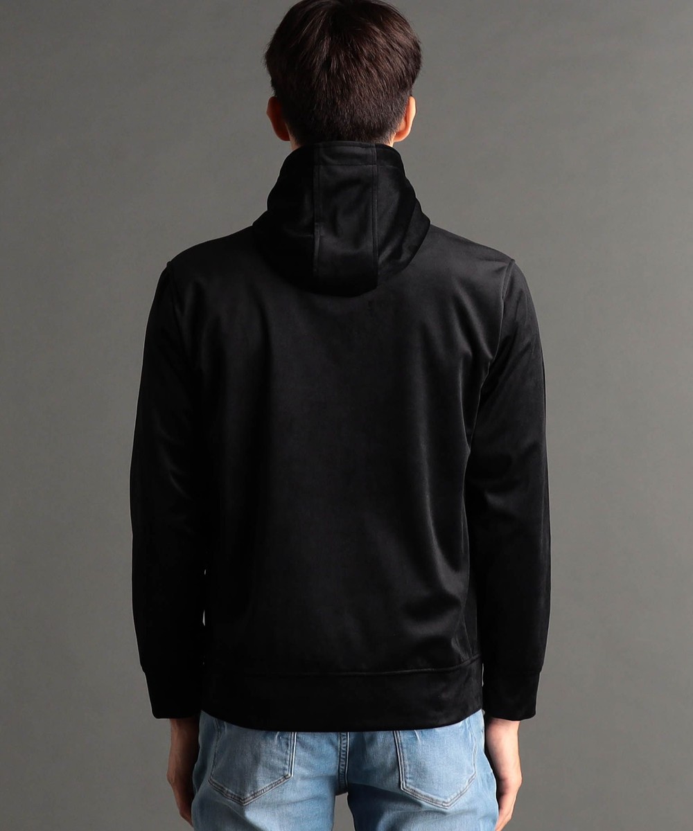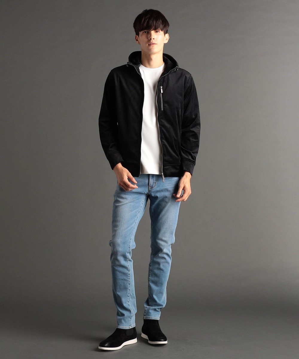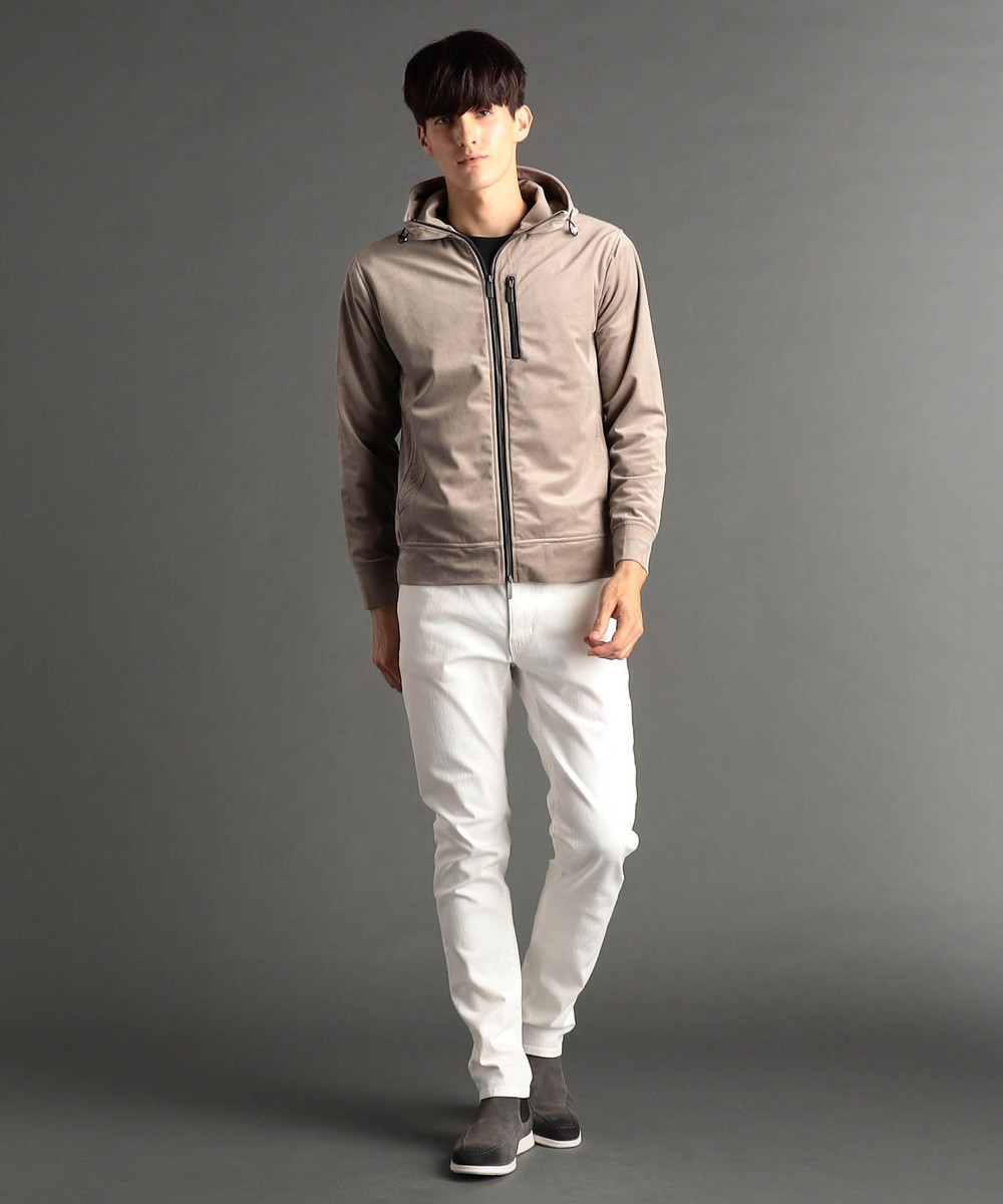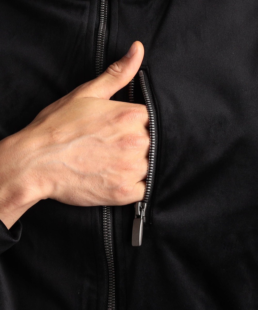 首元までしっかりと立つフードがポイント。フロントジップはダブル仕様で気分に合わせてフォルムを変える事が可能。