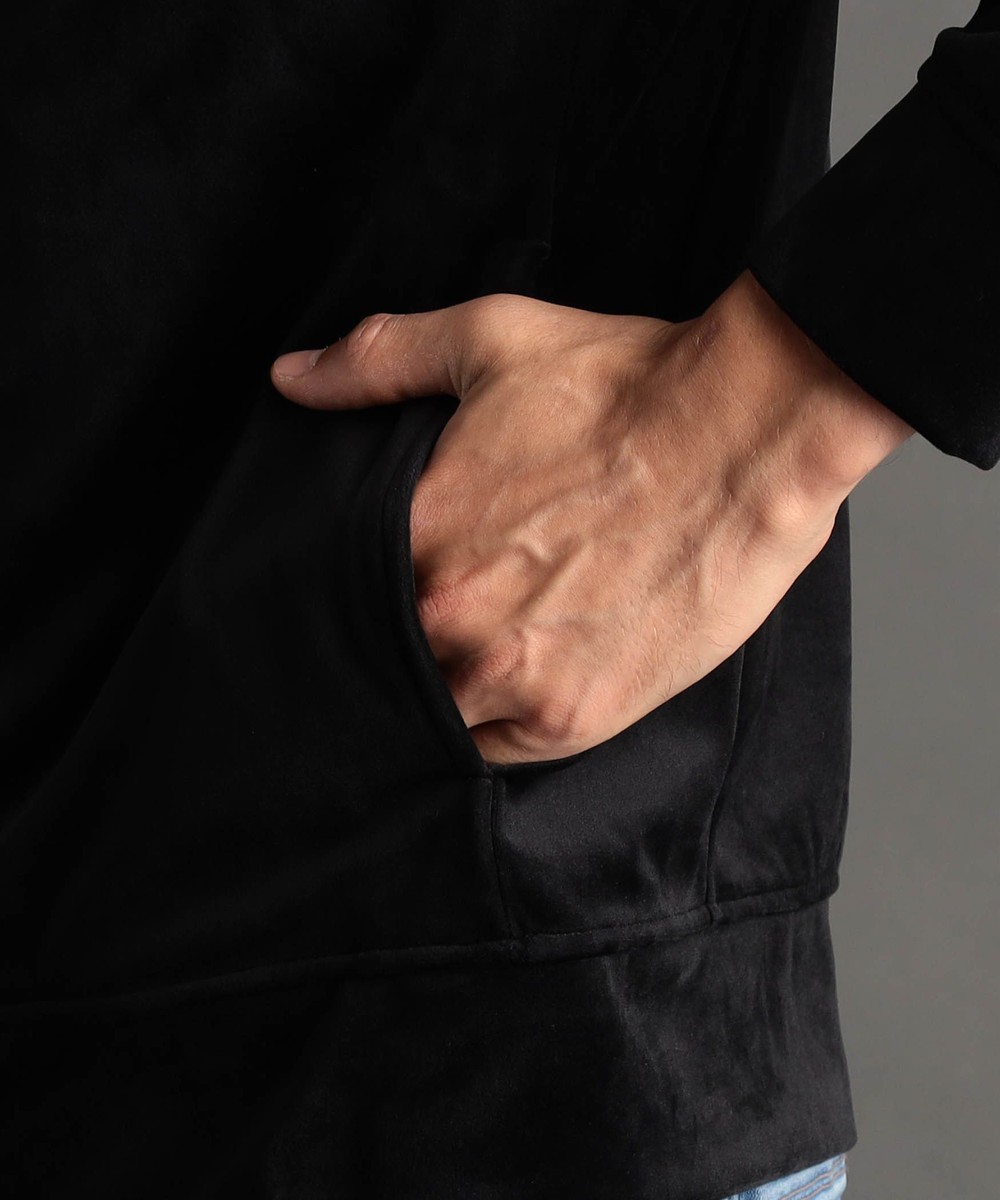 天竺ニットの地糸にパイル編みを施し、その後パイルカット&起毛処理で程よい横伸びを表現しています。