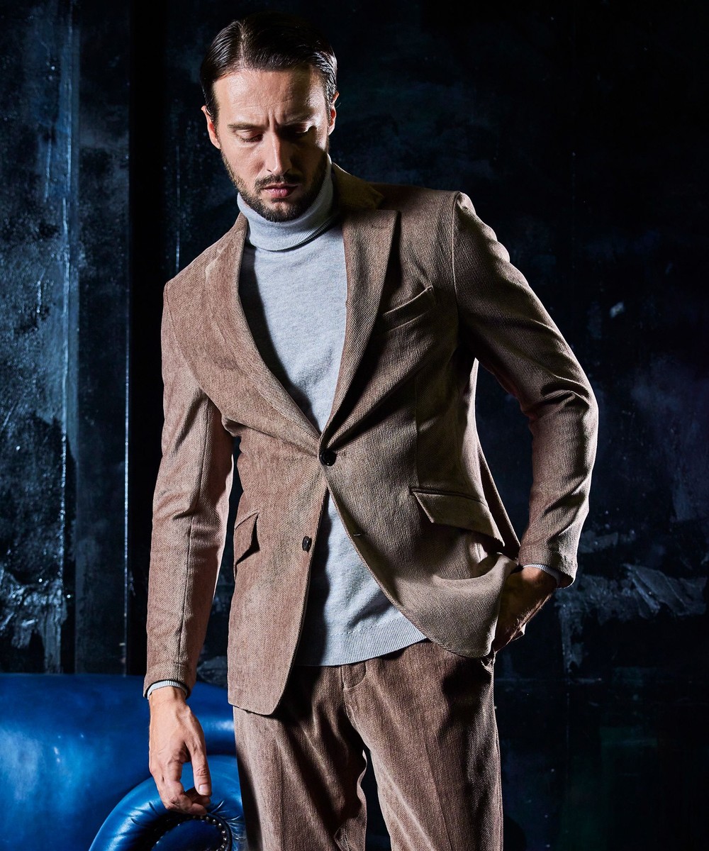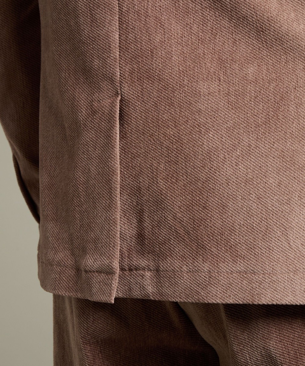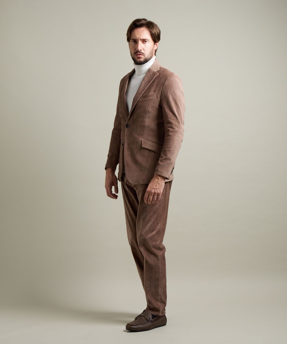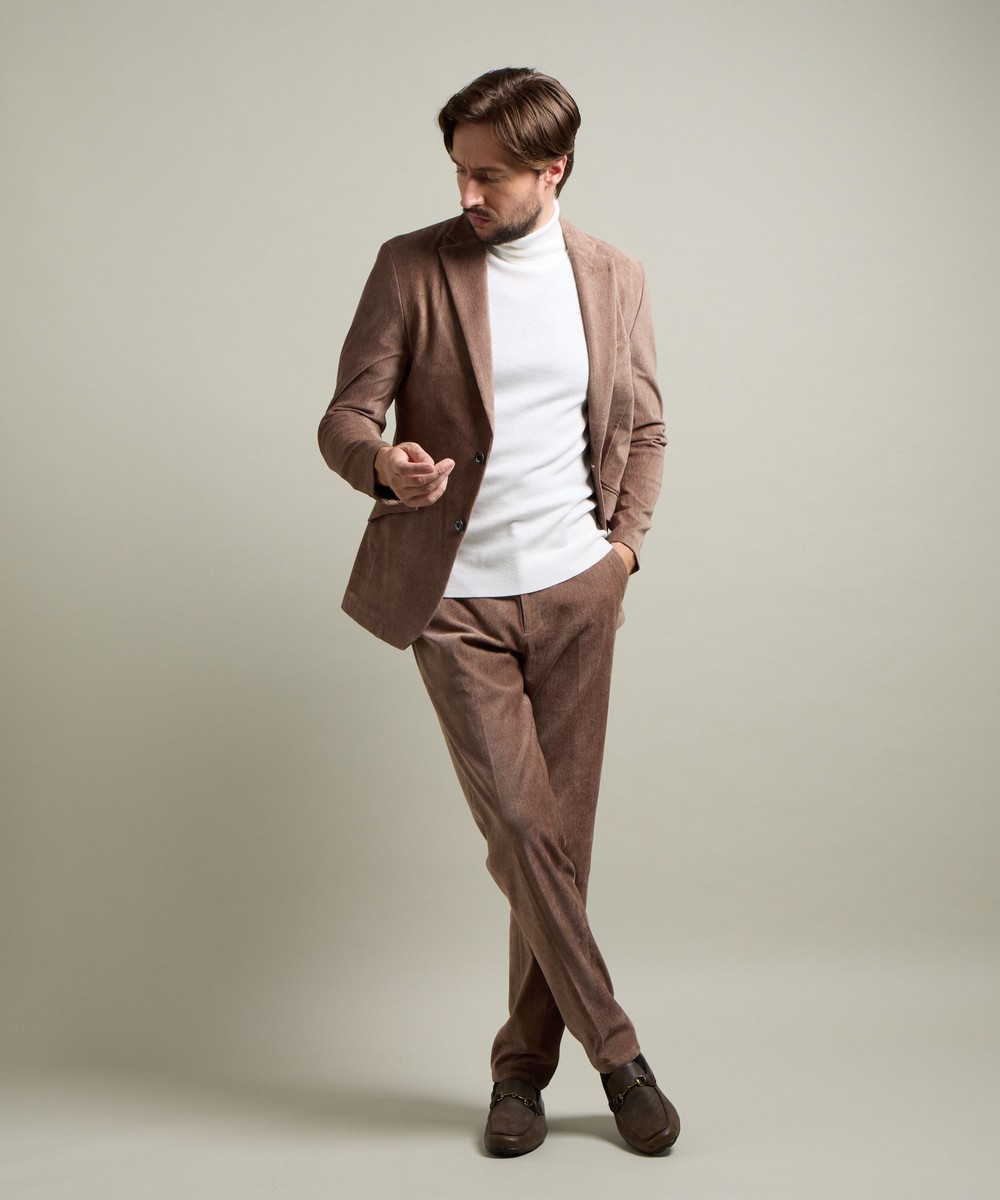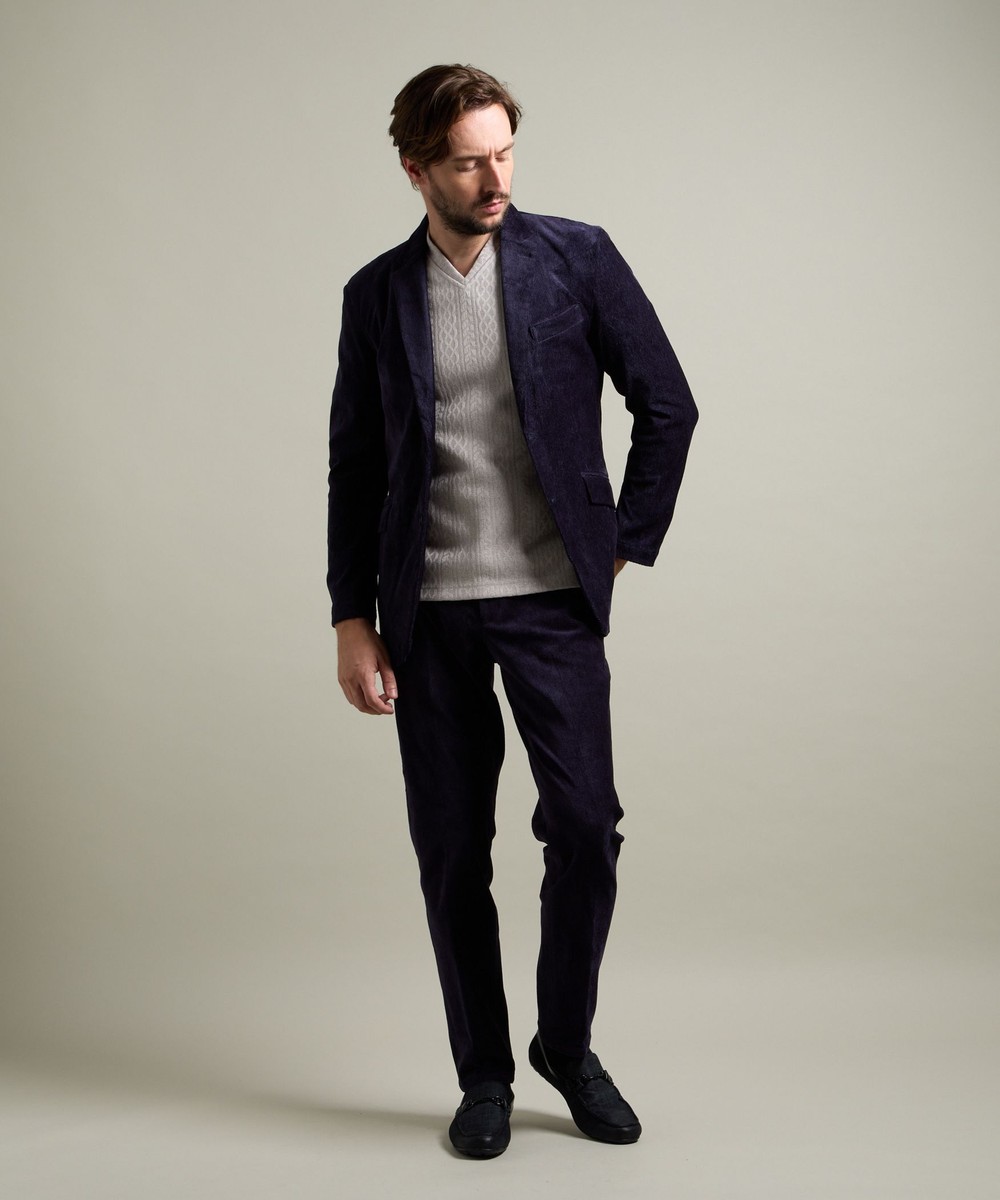 縦畝(ウネ)のコーデュロイとは違う、斜めの組織感が特長のカルゼ柄が上品さをかもし出します。