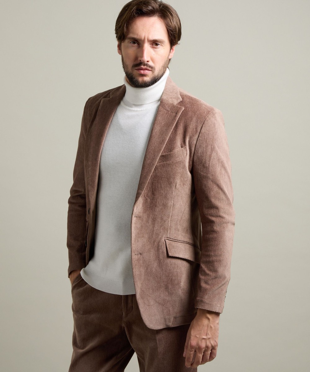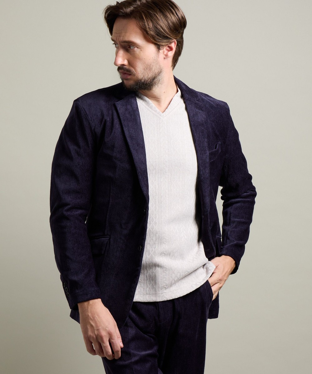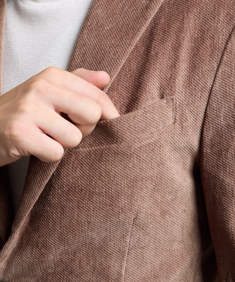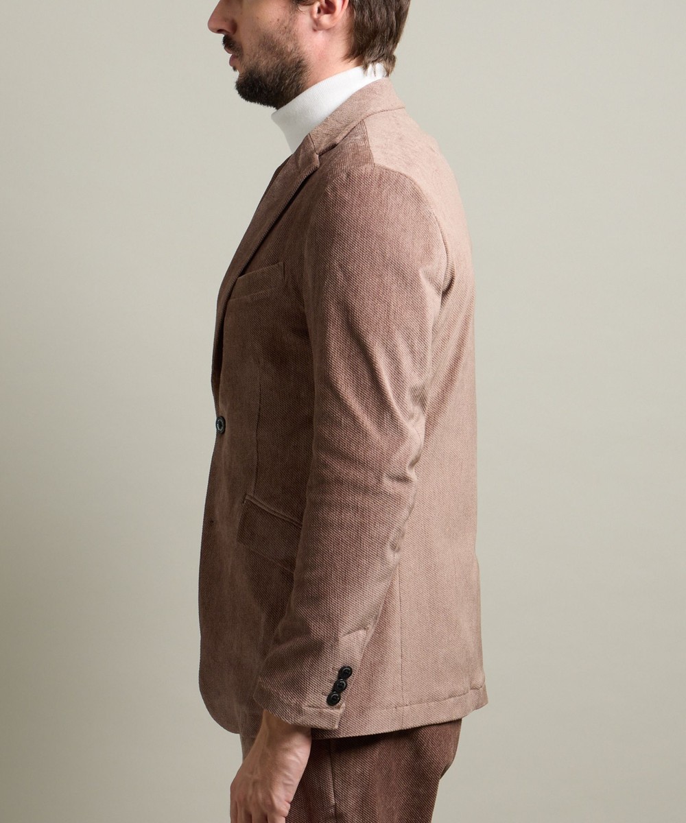 縦畝(ウネ)のコーデュロイとは違う、斜めの組織感が特長のカルゼ柄が上品さをかもし出します。