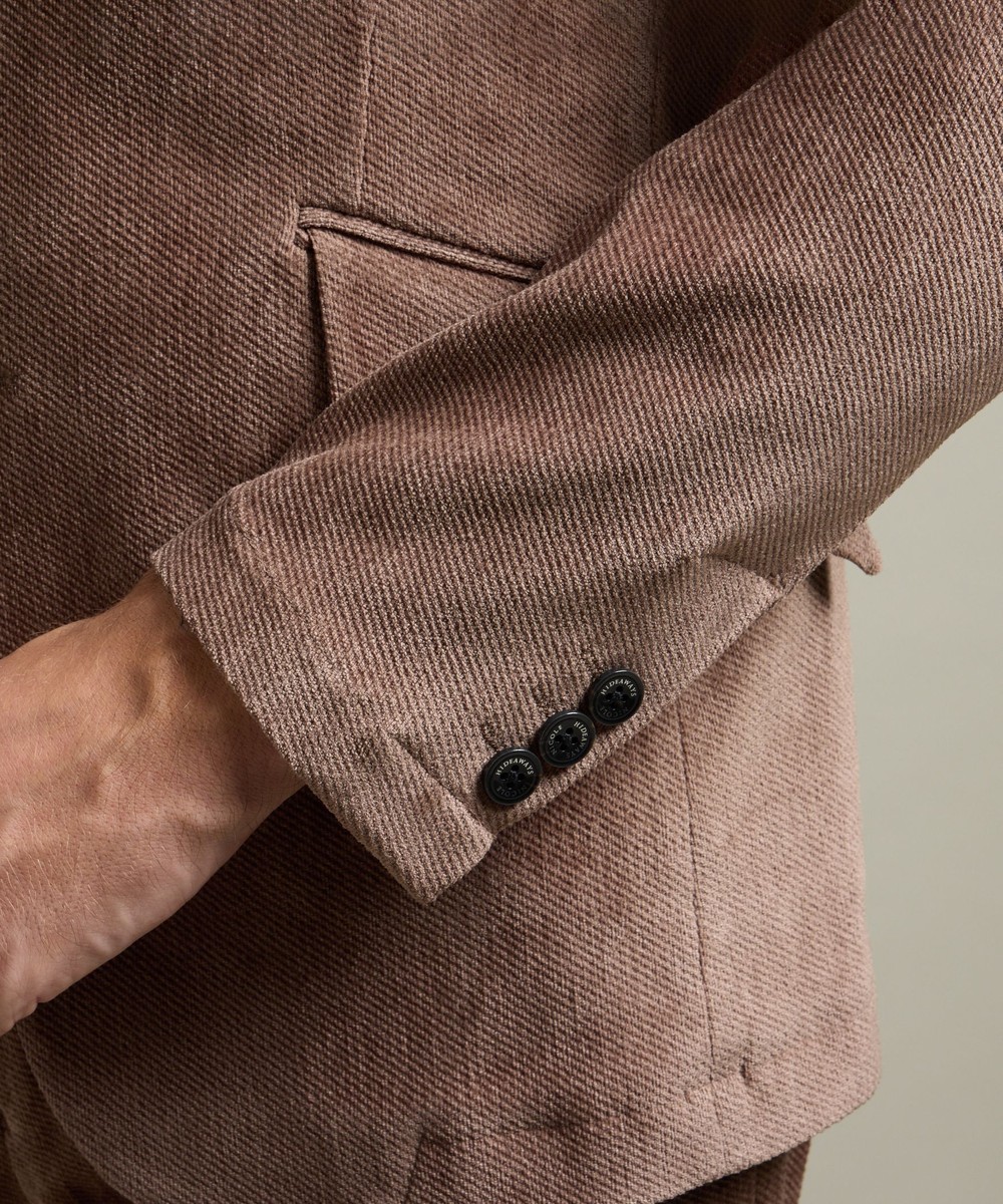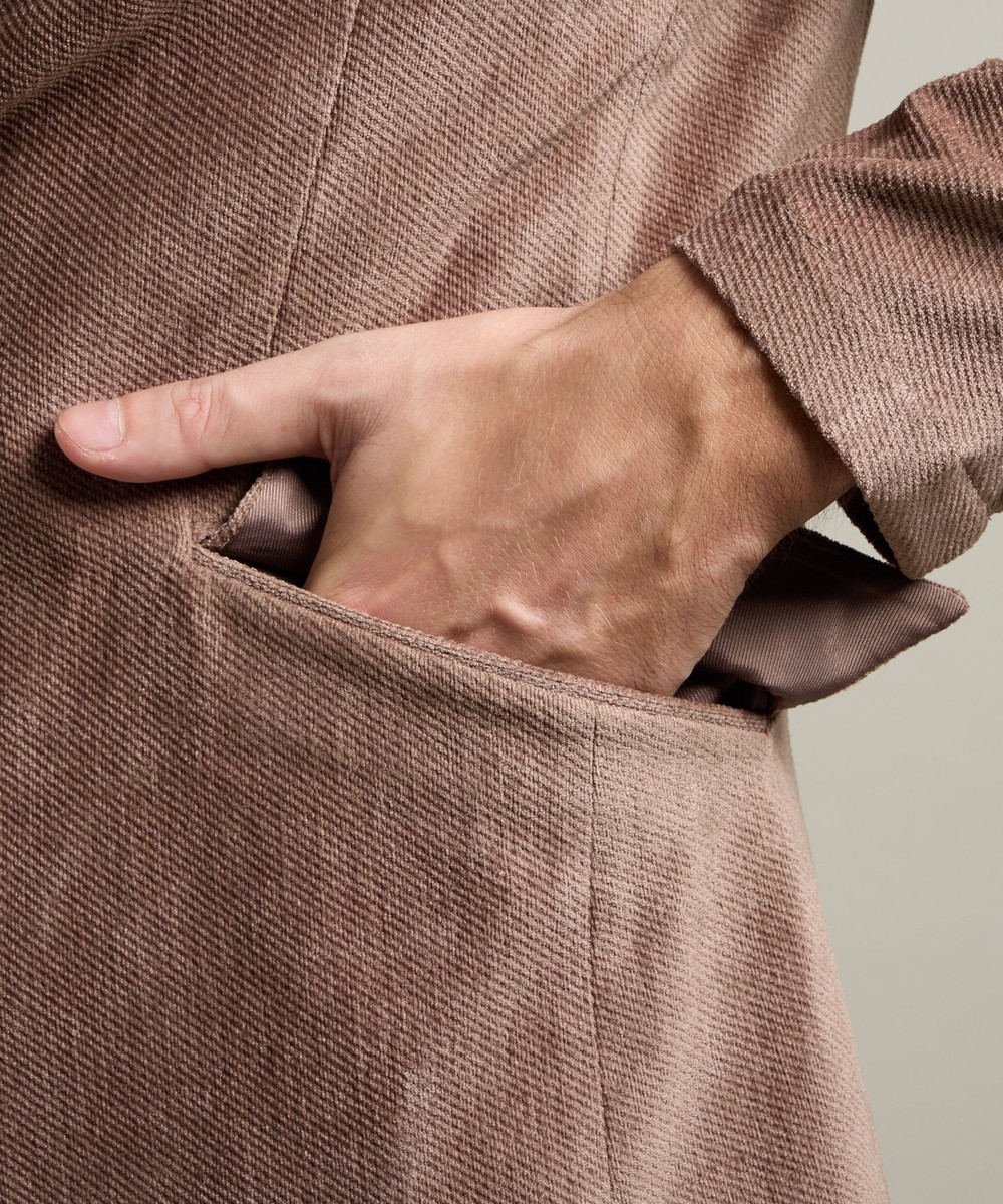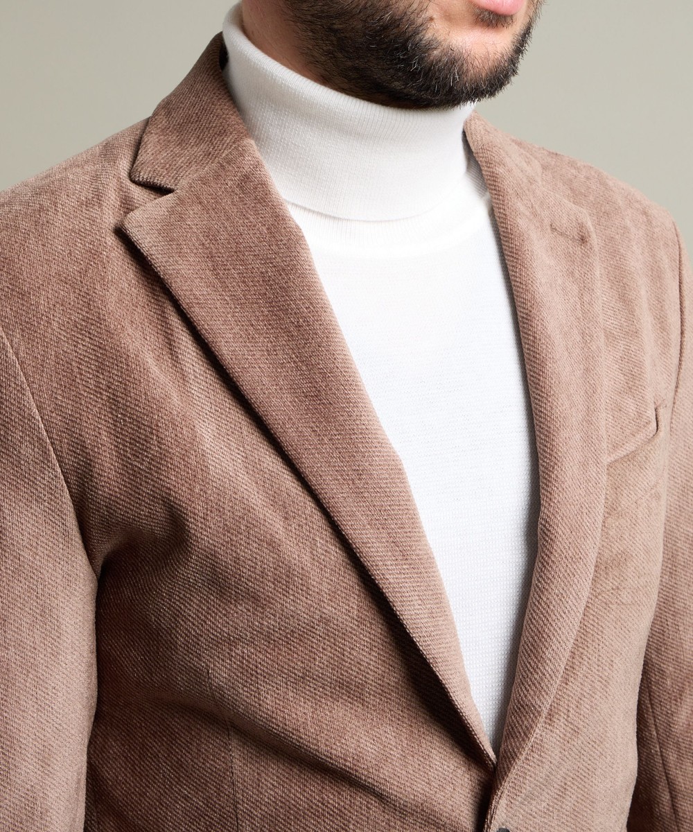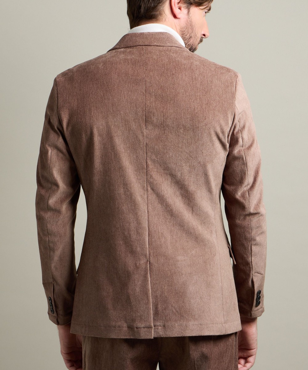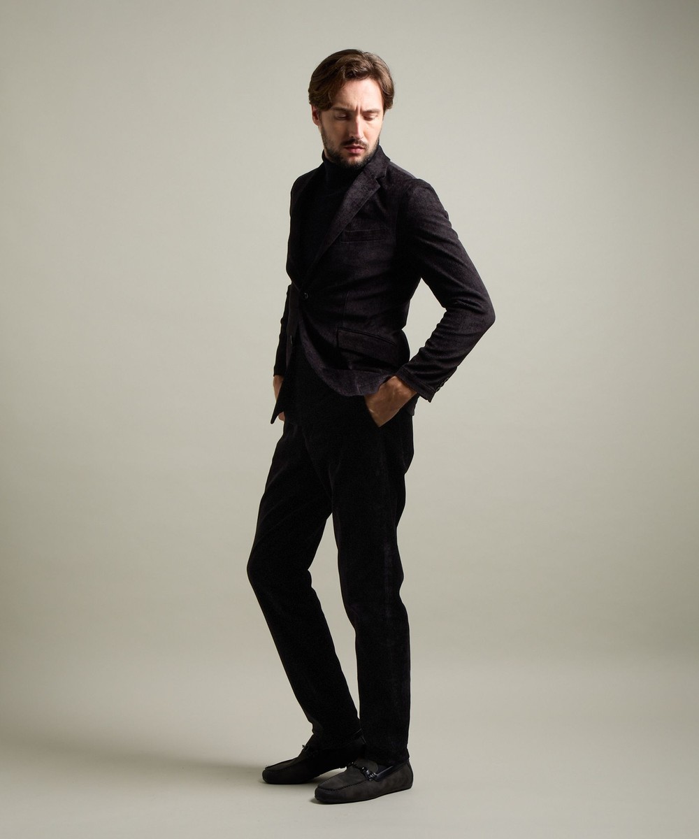縦畝(ウネ)のコーデュロイとは違う、斜めの組織感が特長のカルゼ柄が上品さをかもし出します。