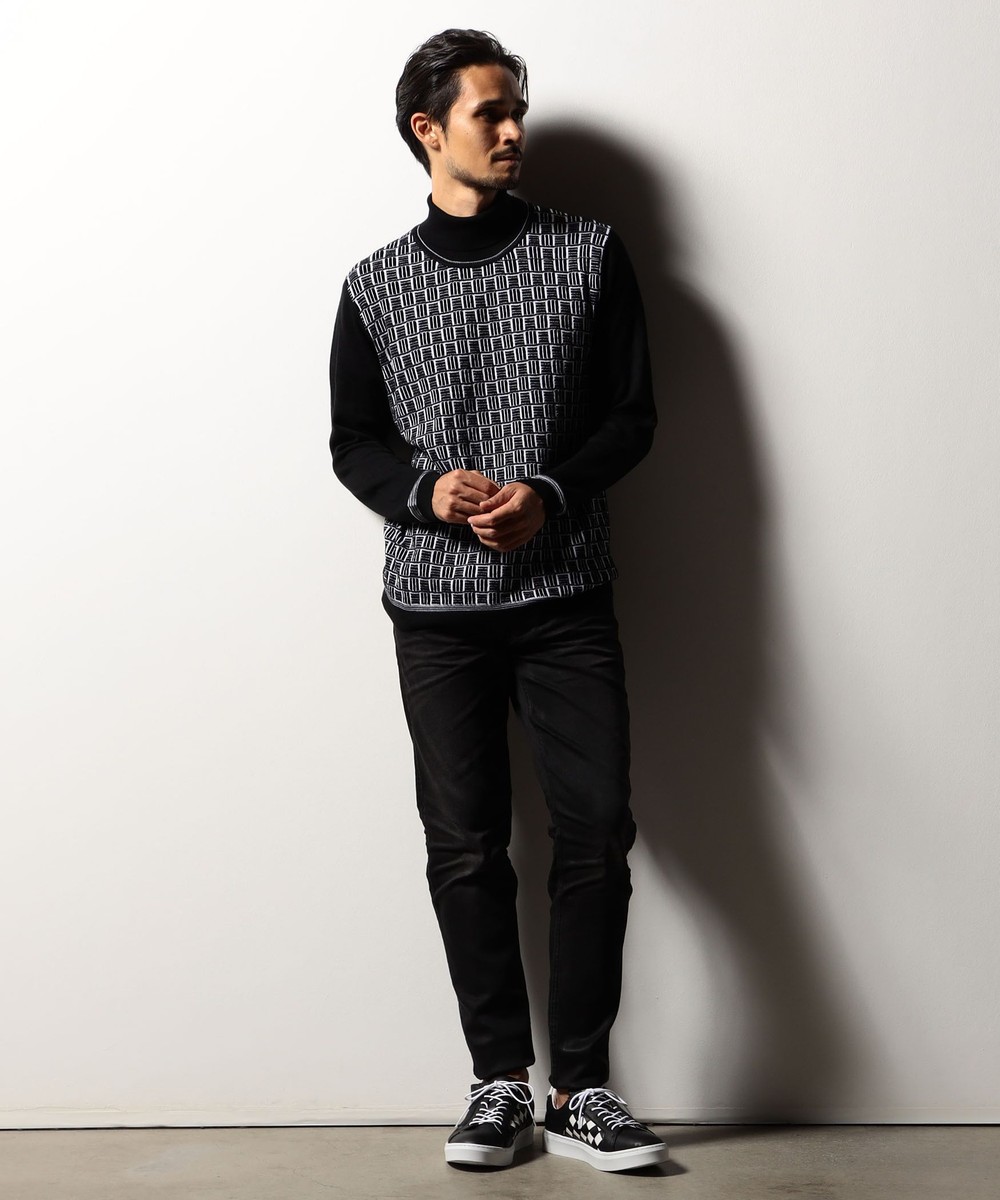若干深めの股上、腰周りは少しタイトめに調整し、裾口にかけて細くなったスリムスキニーシルエット。細身の綺麗なラインです。股下は9分丈設定にしています。