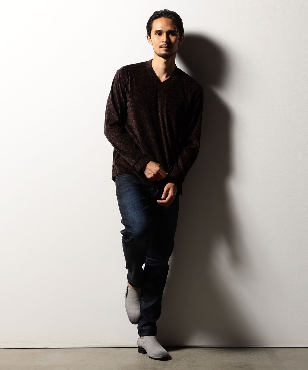 ・特殊な製品加工を手作業で施しています。加工の特性上、生地の色や濃淡、ムラが一点一点異なり、カラー・サイズによって多少の誤差が生じる場合があります。着用回数、保管状況により差が出ますが、シワがなくなったり、生地の表面変化などあります。加工の特性としてご了承ください。