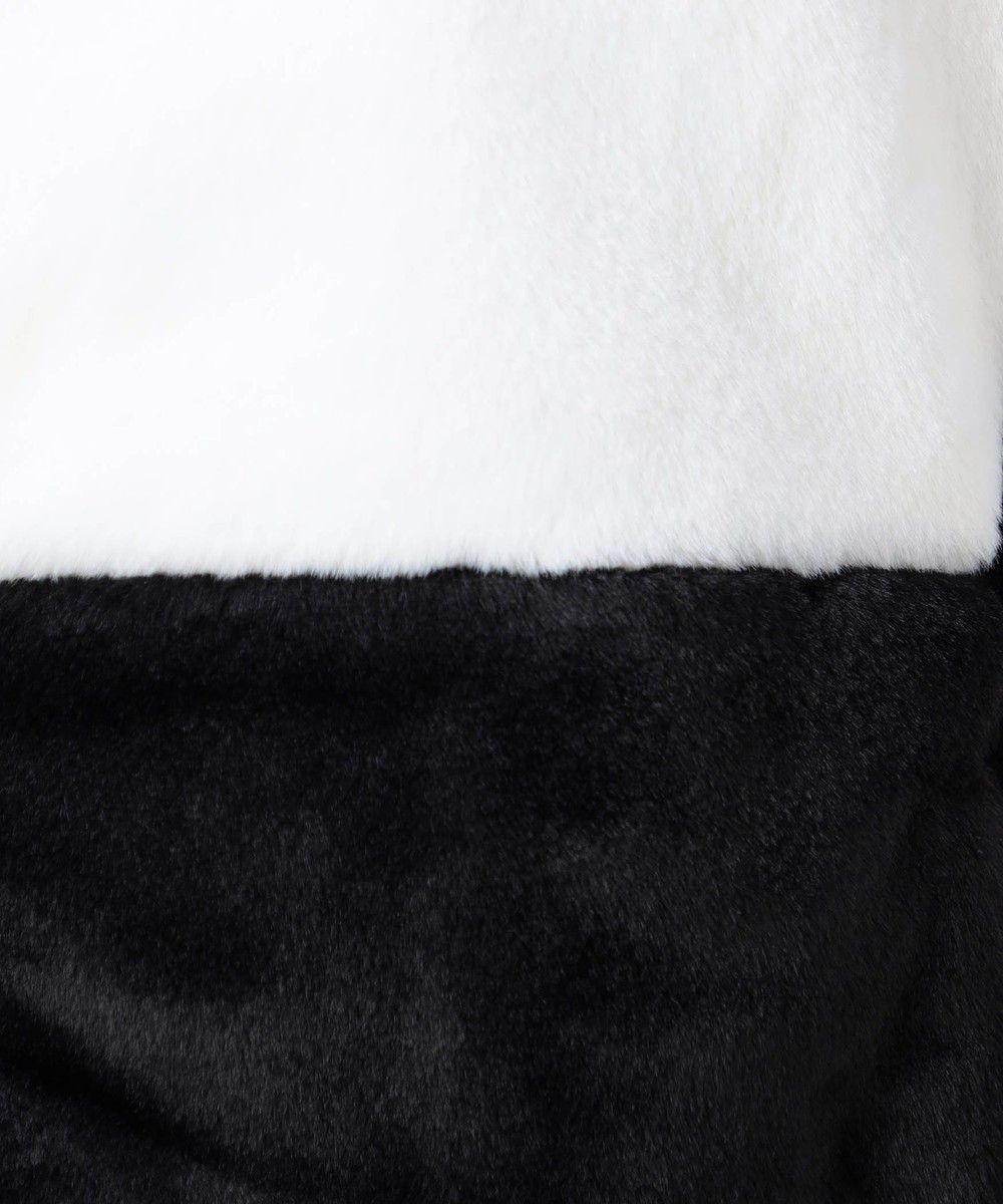 光沢感のある毛足の長いポリエステルファー素材。毛の密度が詰まっていて毛並みもありますので、肉厚だけど柔らかくて滑らかなタッチがとても気持ち良いです。