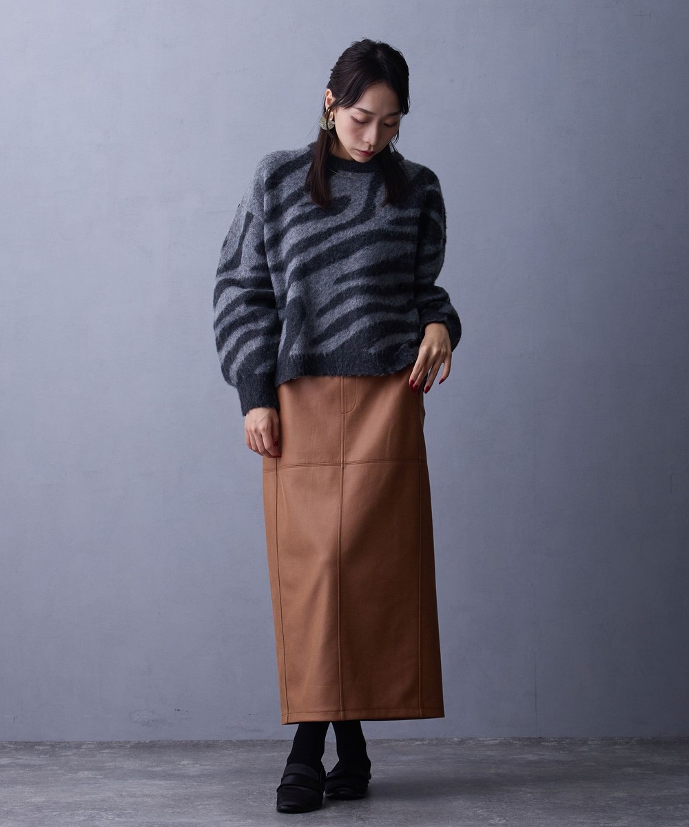 存在感のあるニットは、デニムやワイドパンツなどと合わせてもおしゃれな装いに。