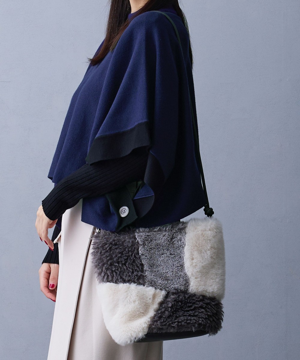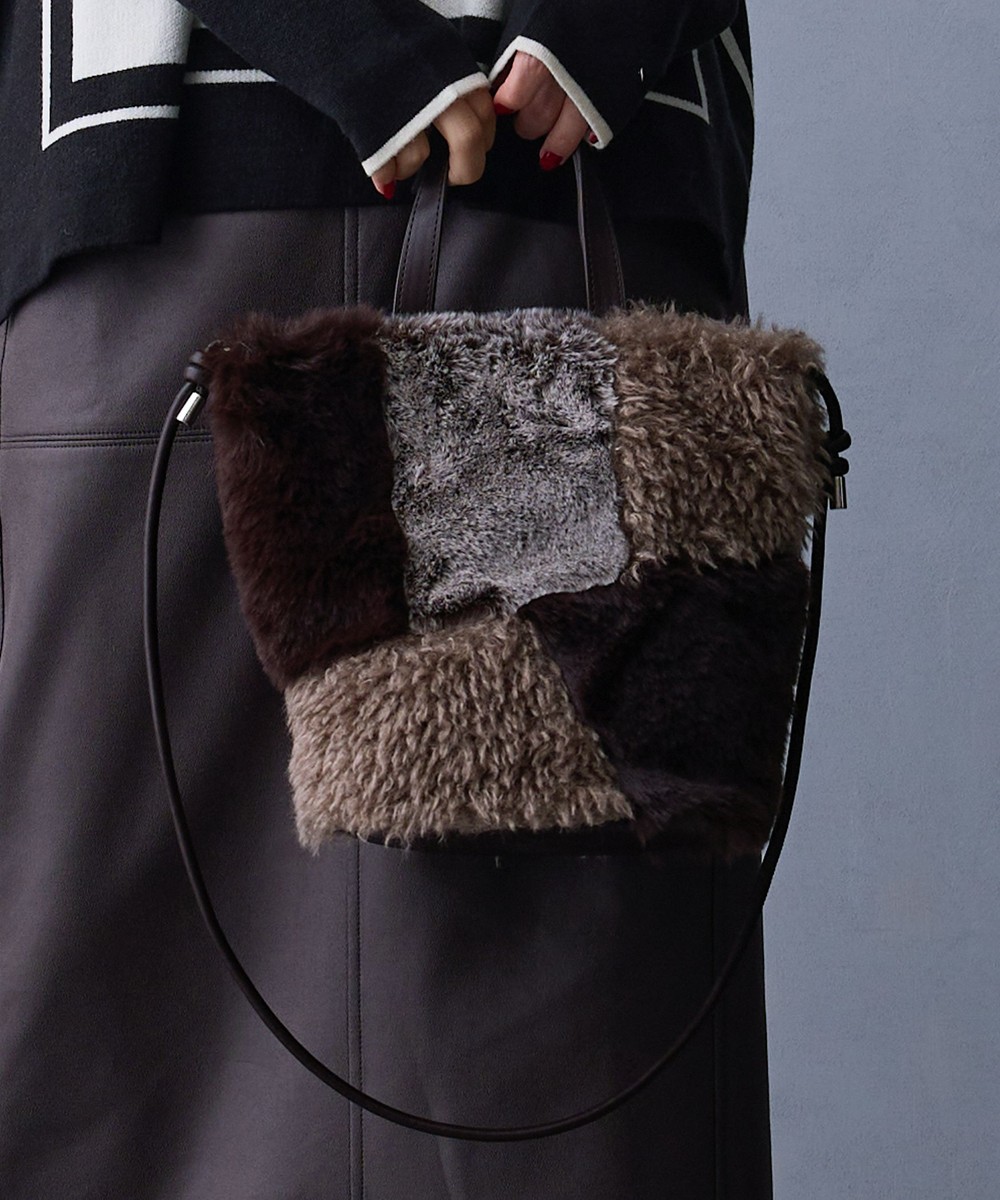 素材の違うフェイファーをパネル状にしたデザインバッグ。