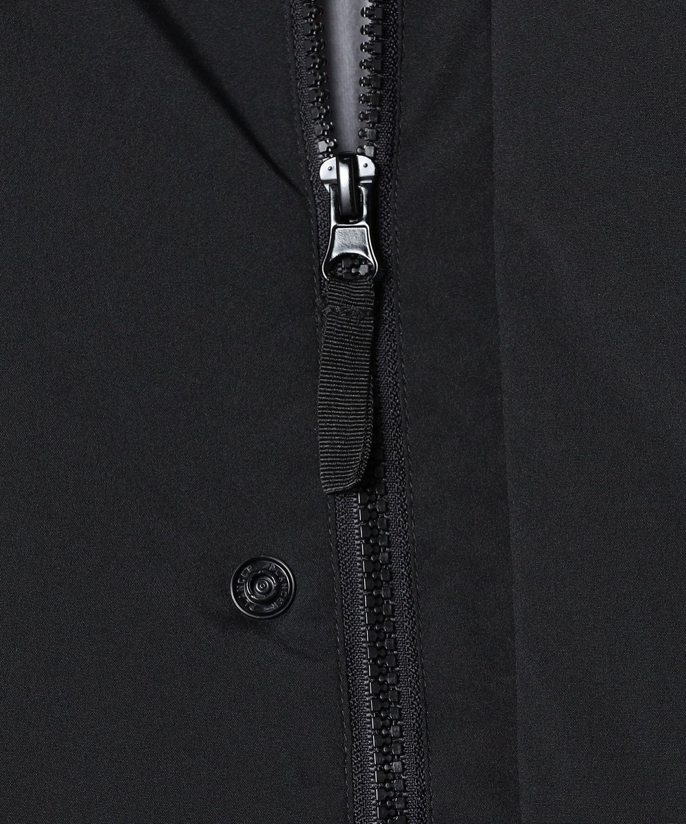 スタンドカラーなので、インナーにフード付きのトップスも合わせやすい万能デザイン。