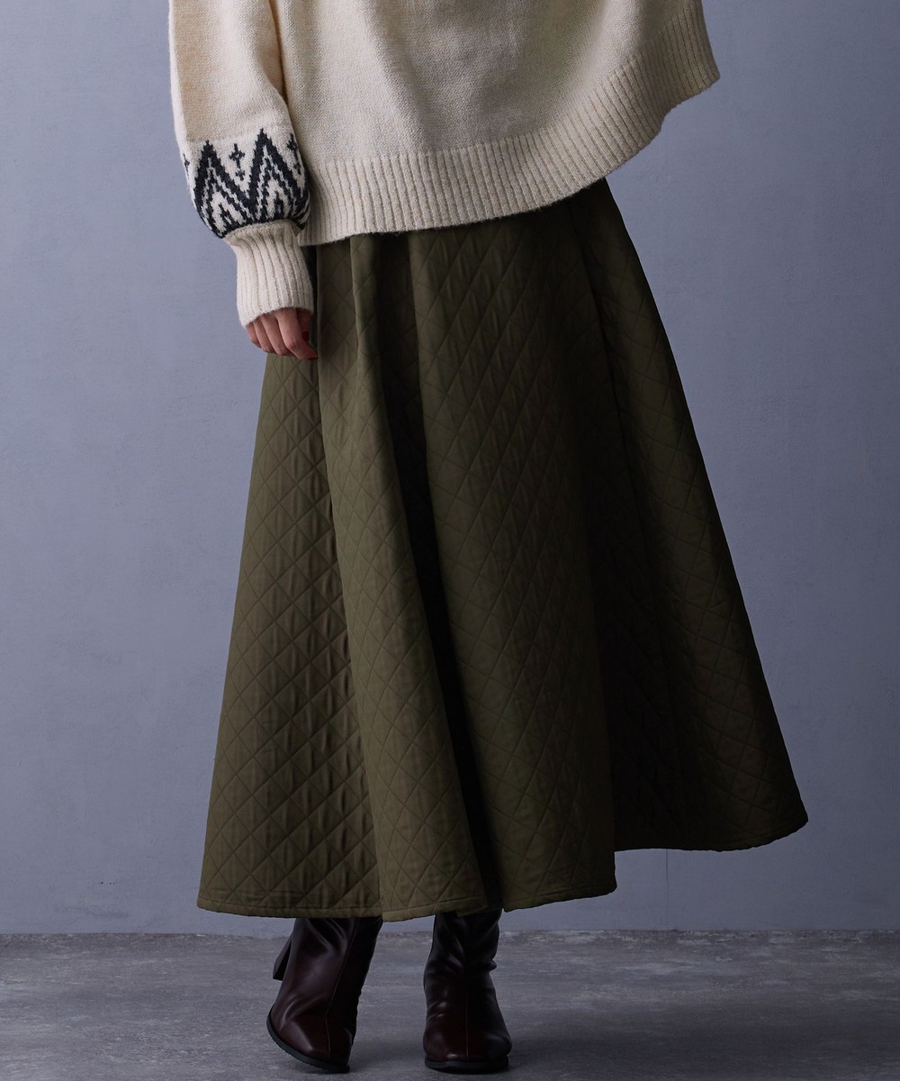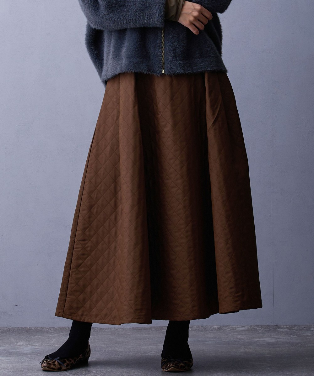 シーズンらしいキルティングのスカートは、着心地も見た目も暖かさのある素材感。