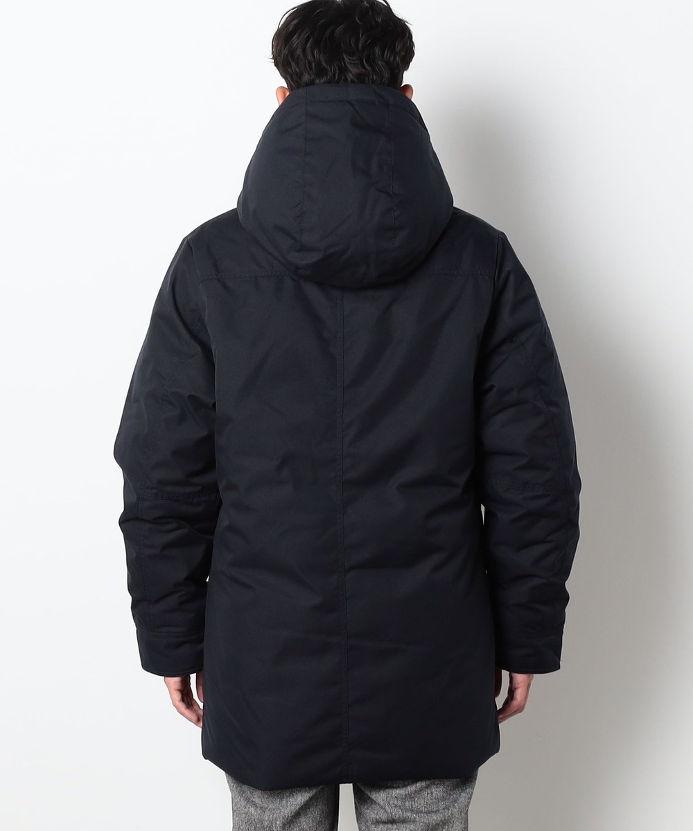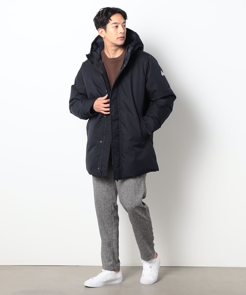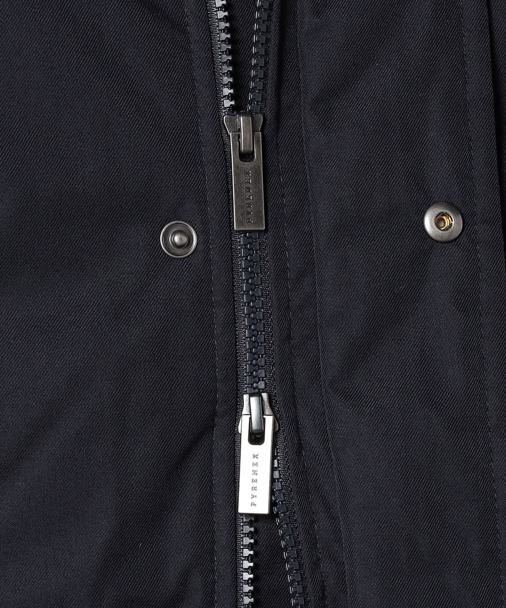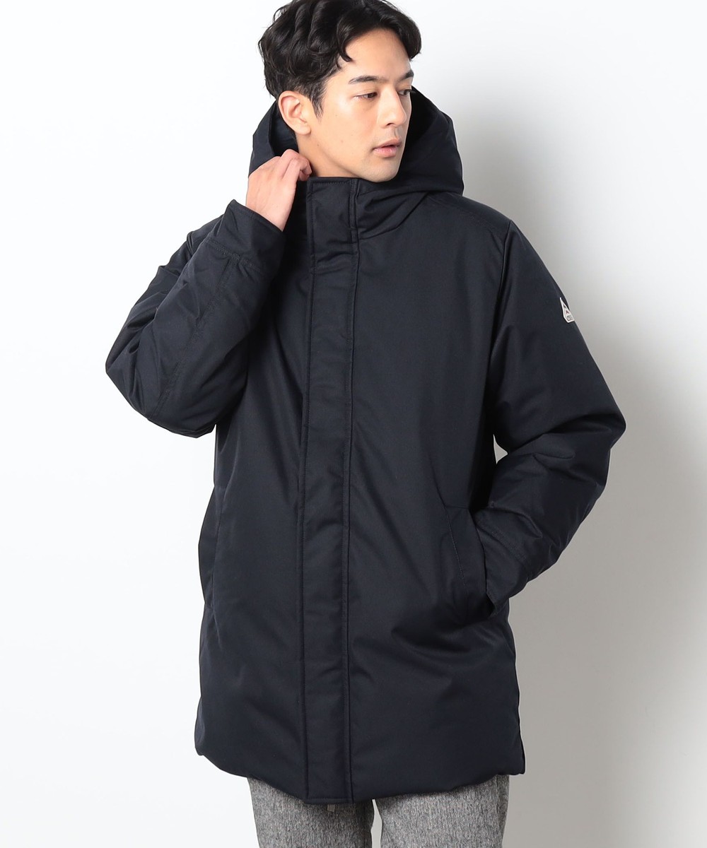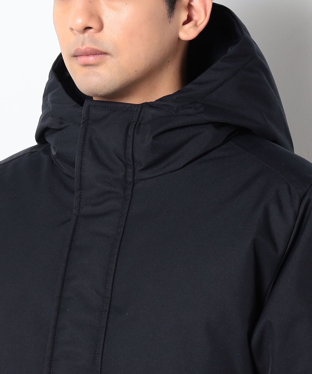 比翼仕立てのフロントに、キルトステッチが無い洗練されたデザインで、ボリュームのあるフードが特徴です。
