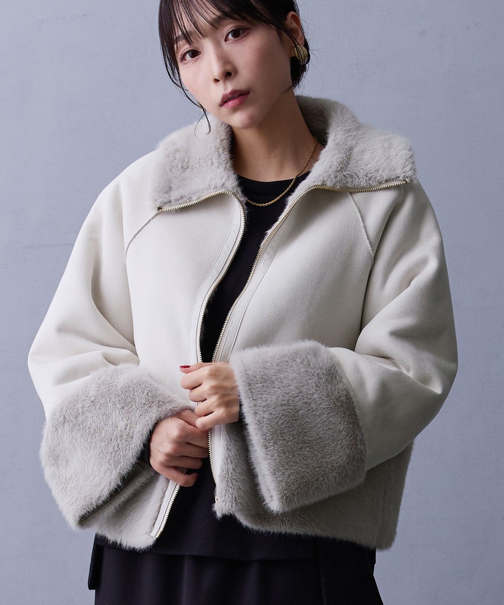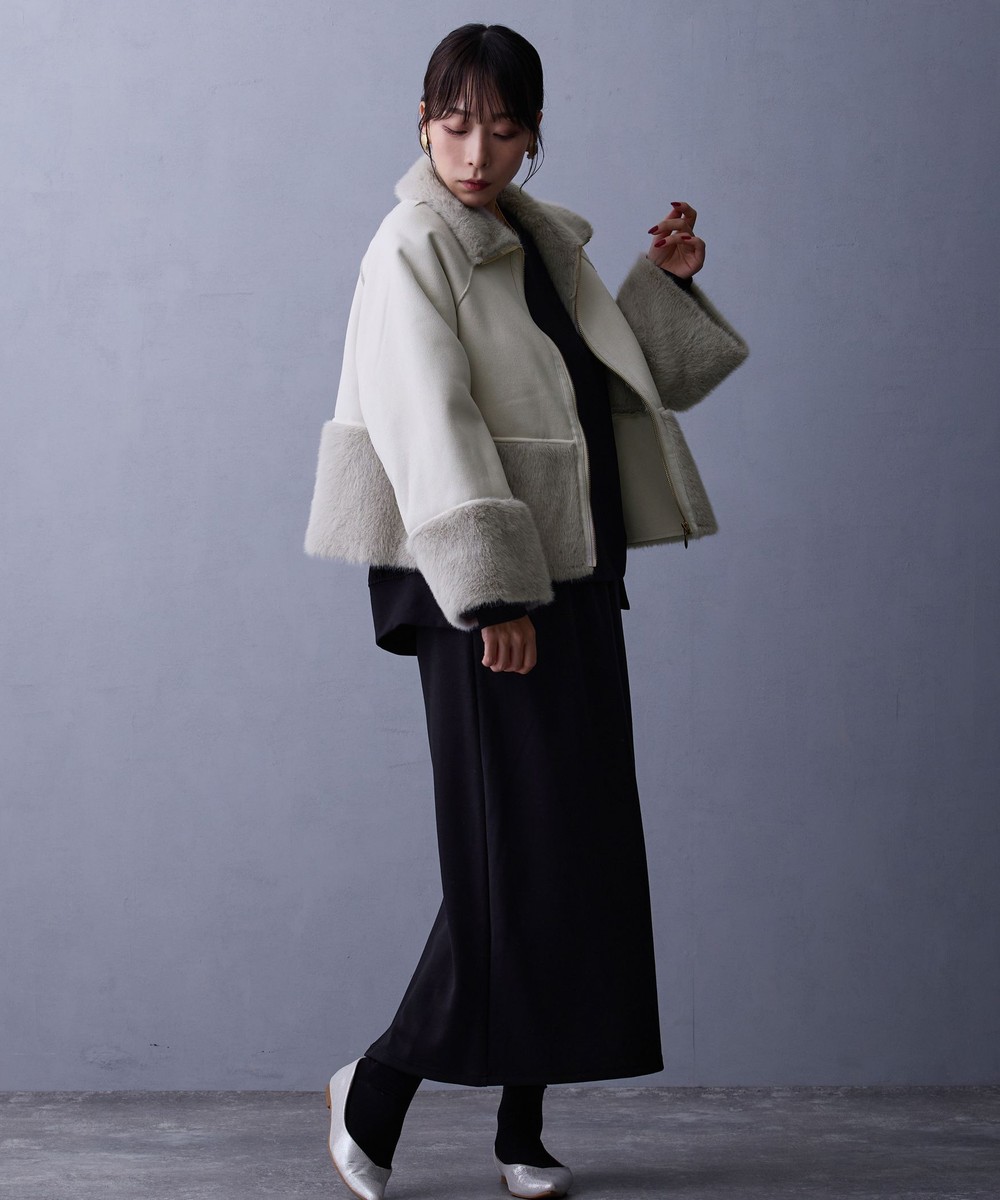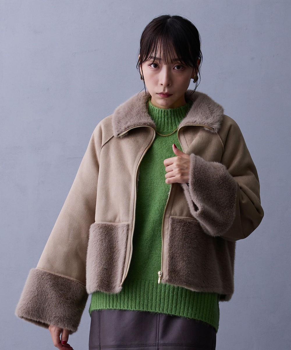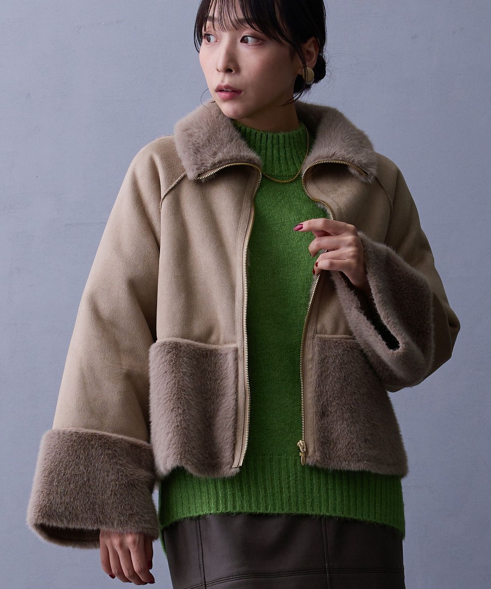毛足の滑らかなフェイクファーを使用し高級感をプラス。ファー使いが上品でワンランク上の大人カジュアルを演出できます。