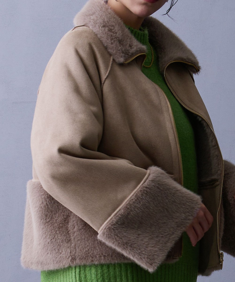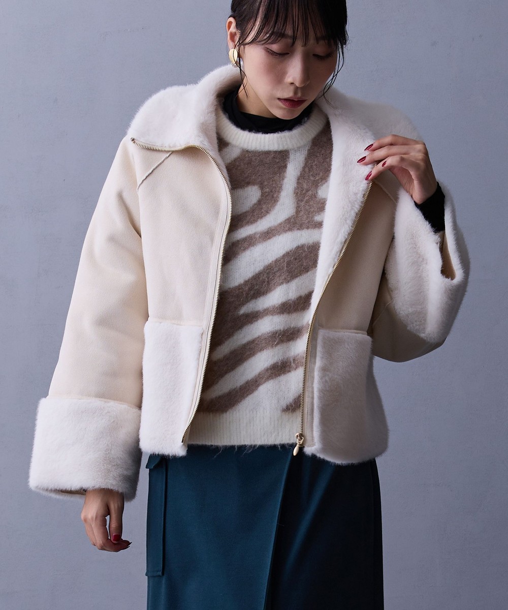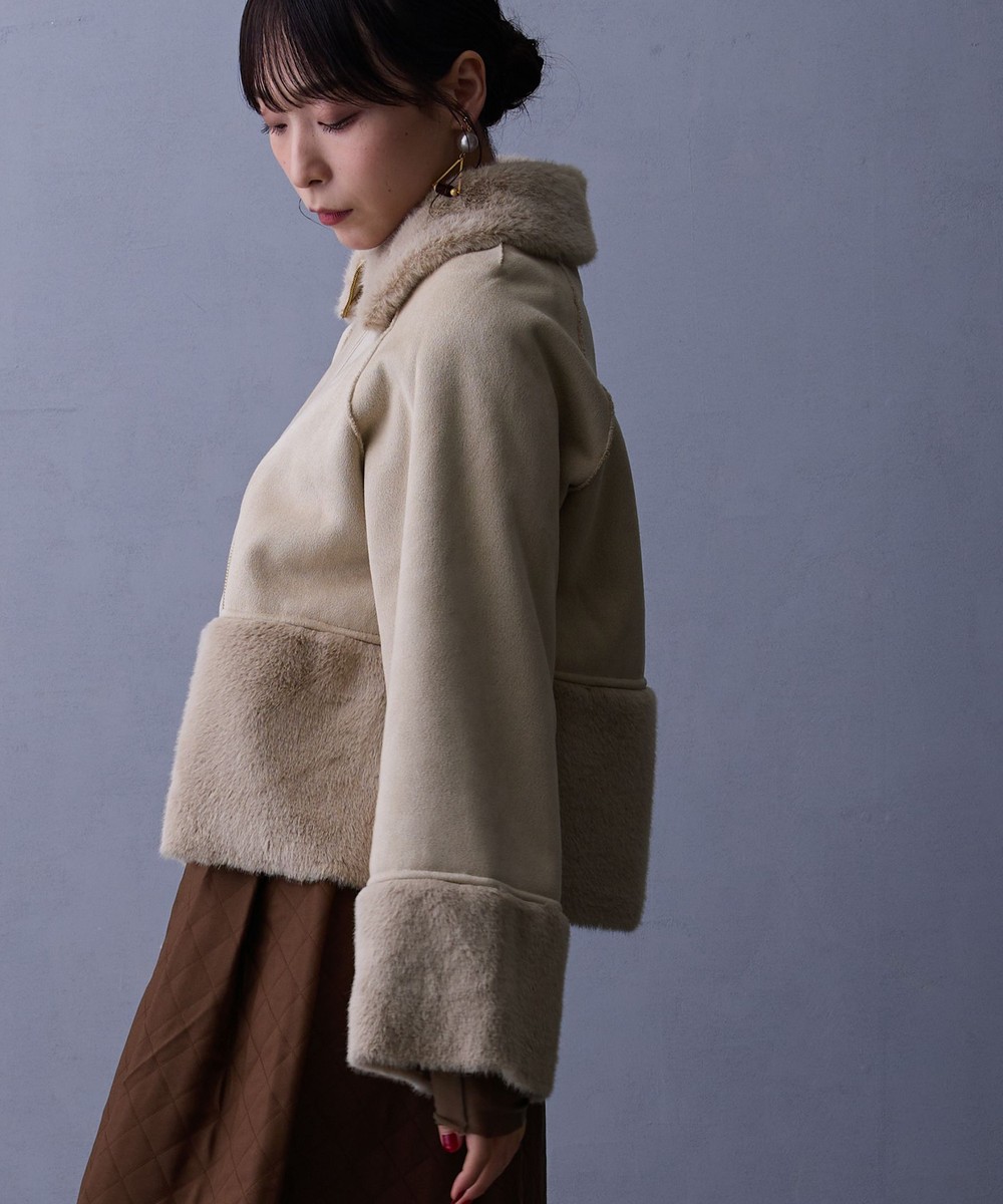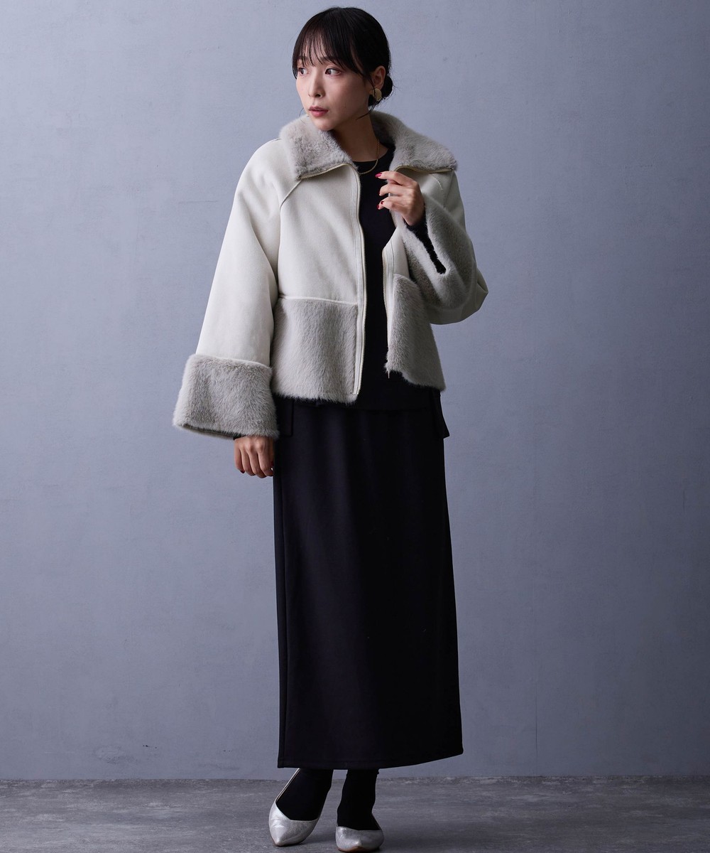 毛足の滑らかなフェイクファーを使用し高級感をプラス。ファー使いが上品でワンランク上の大人カジュアルを演出できます。