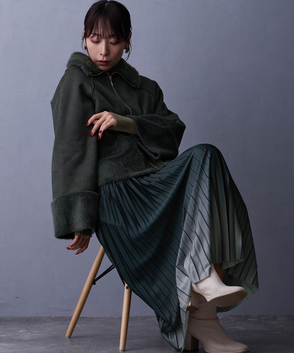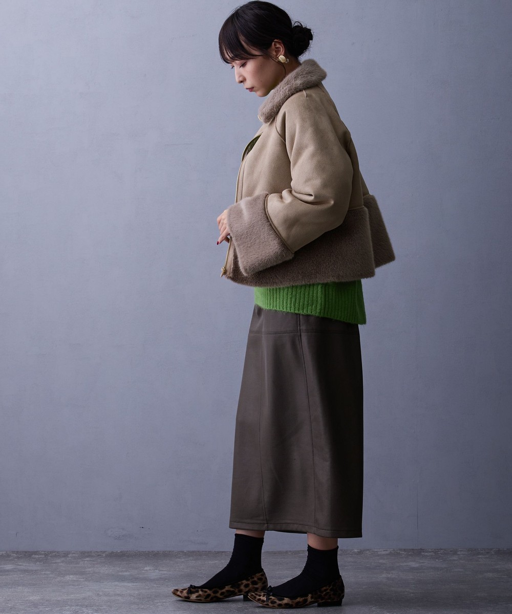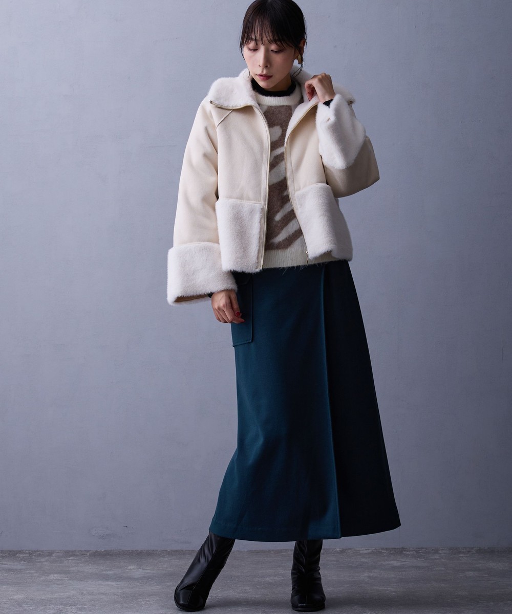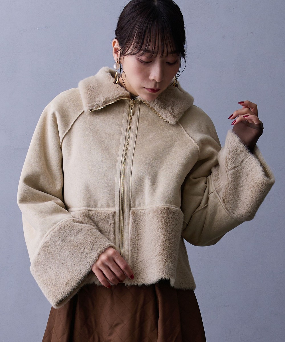 毛足の滑らかなフェイクファーを使用し高級感をプラス。ファー使いが上品でワンランク上の大人カジュアルを演出できます。