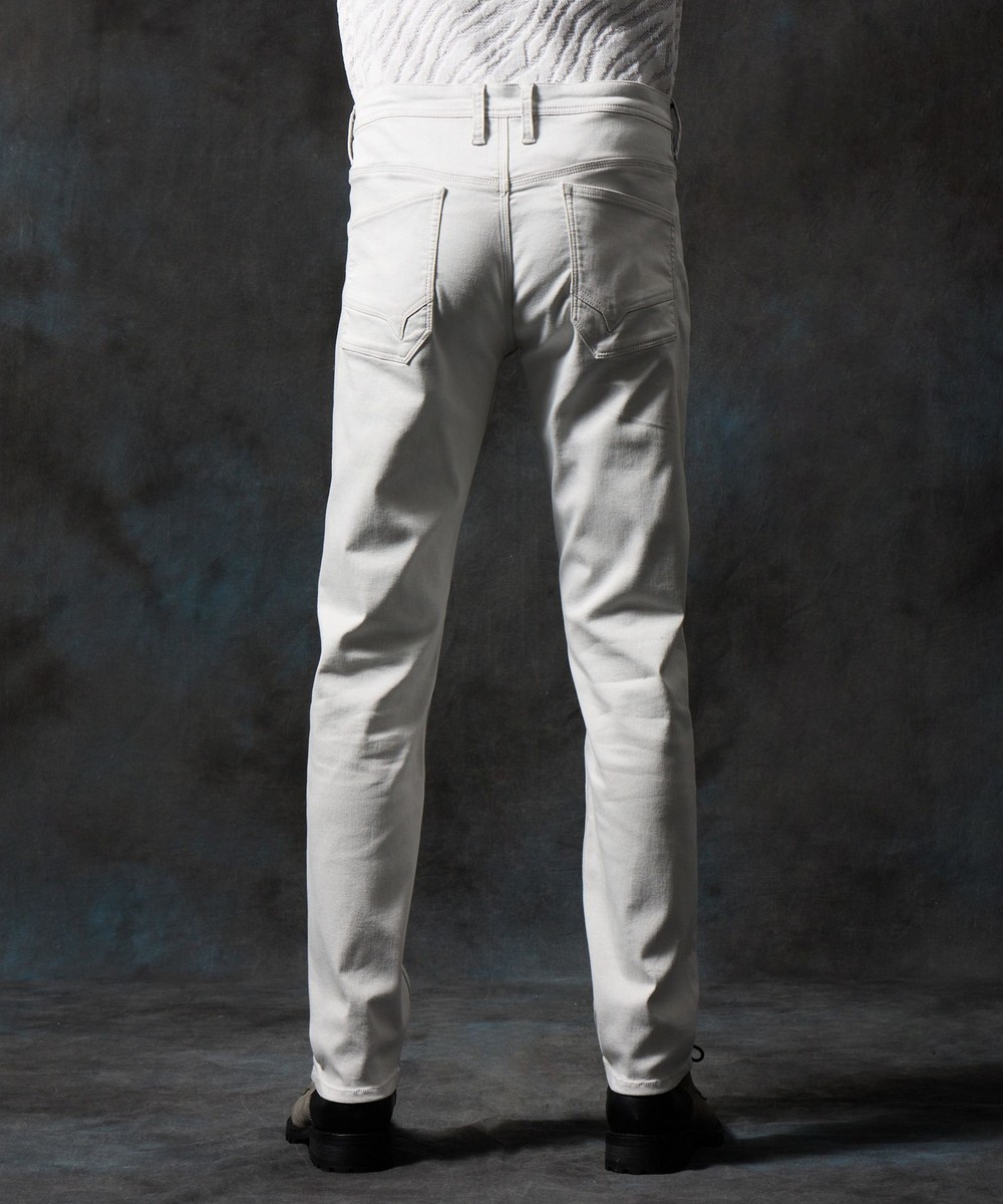 膝から裾口にかけて少しストレートなシルエットに設定した細身の綺麗なシルエットに仕上げています。