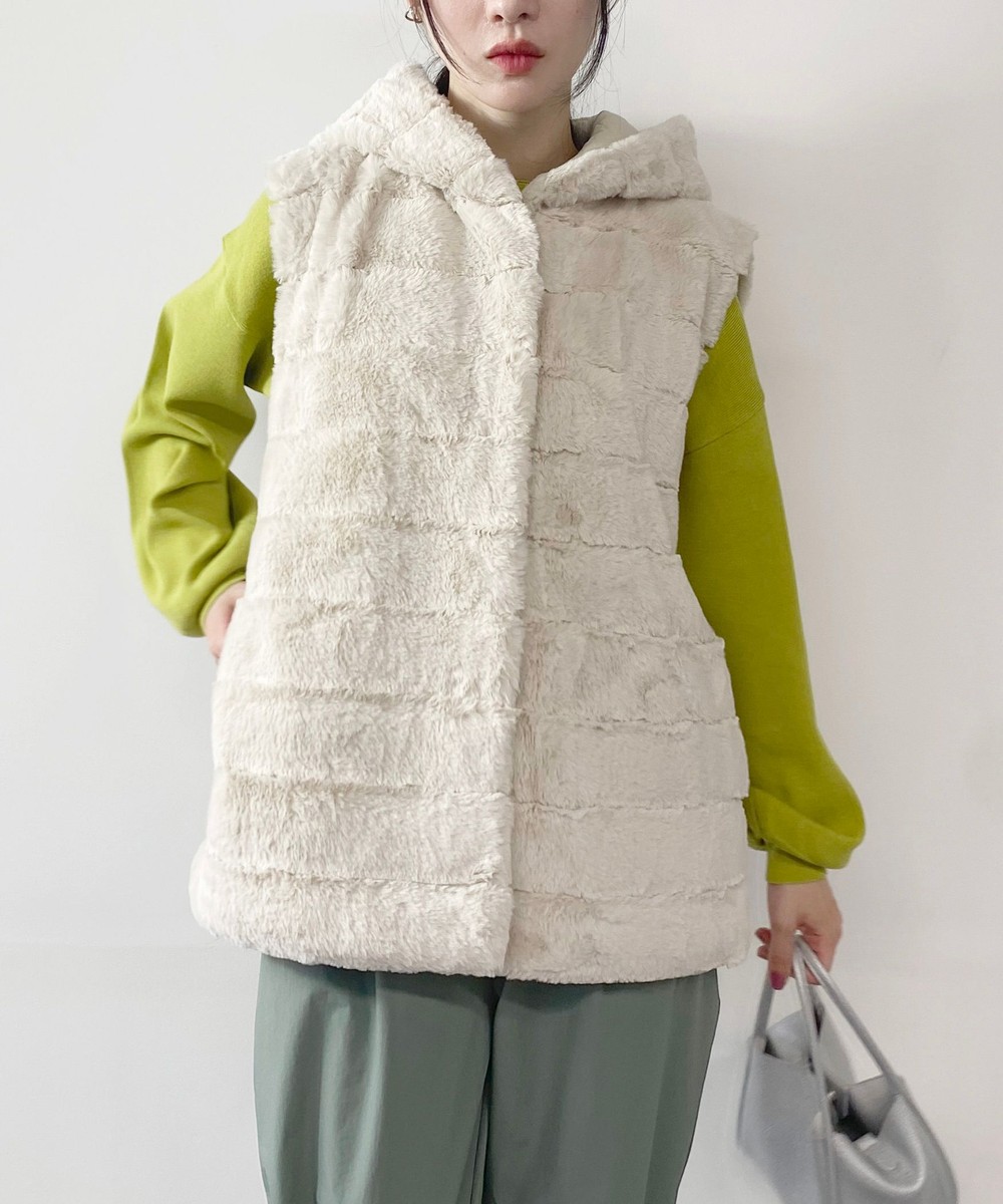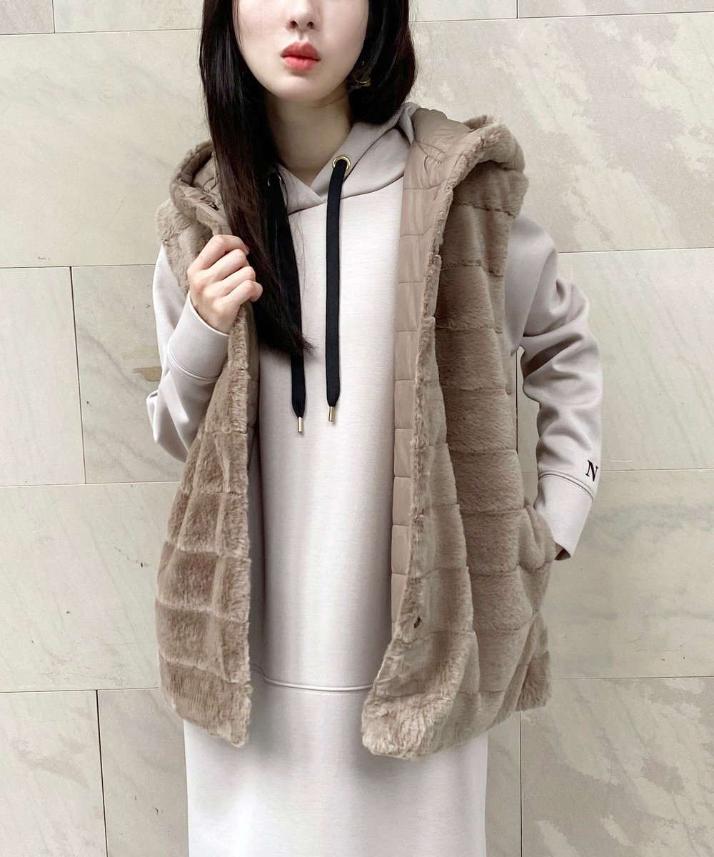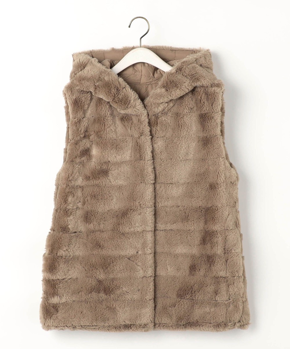 表はフェイクファー、裏はタフタ仕様のリバーシブルベスト。