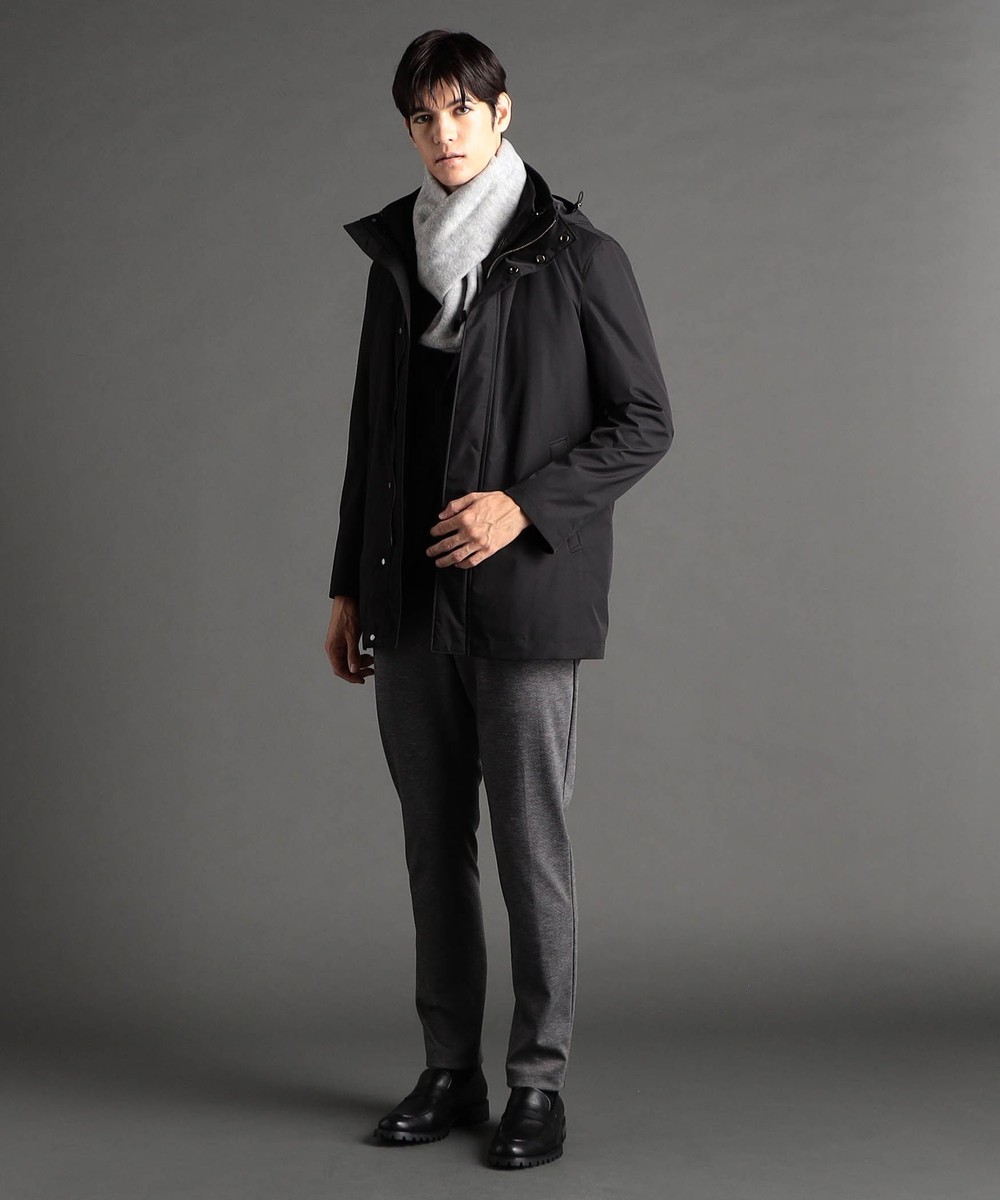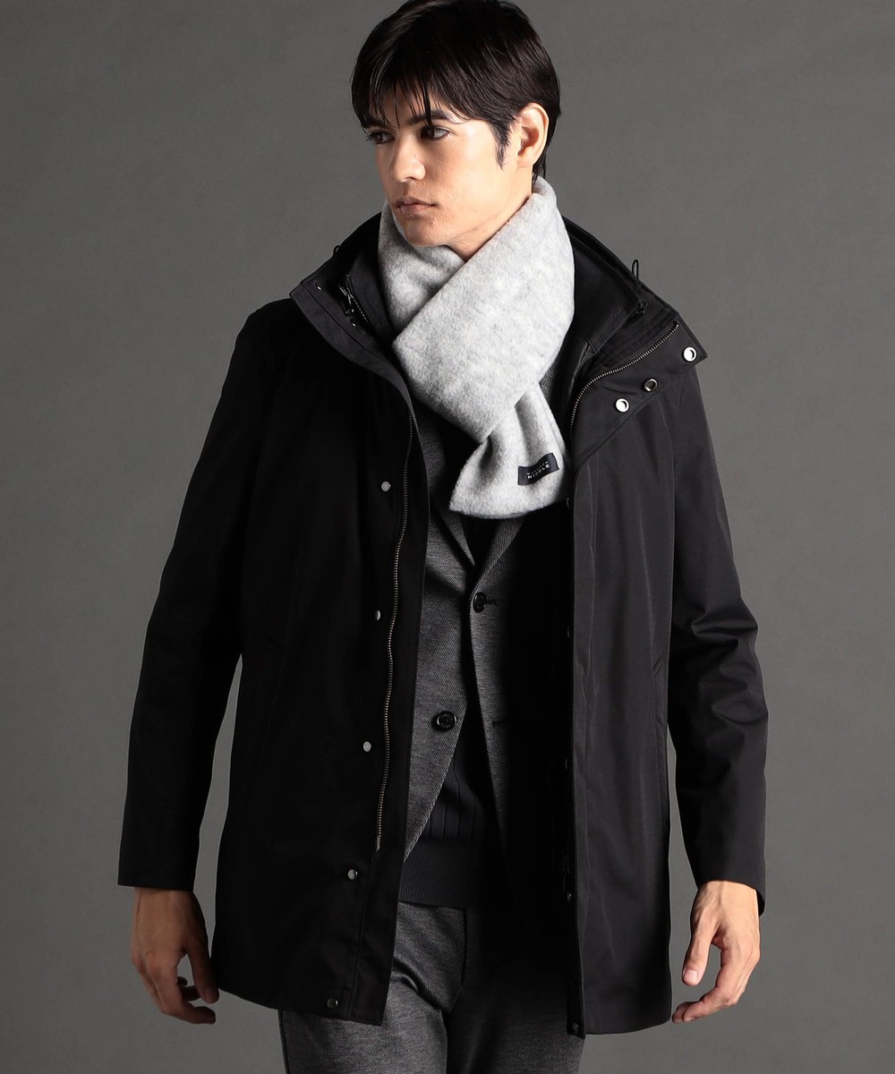 従来のマフラーとは一線を画した、二つ折りにして通すだけで上品なスタイリングを演出するクリエイティブなネックウォーマー。