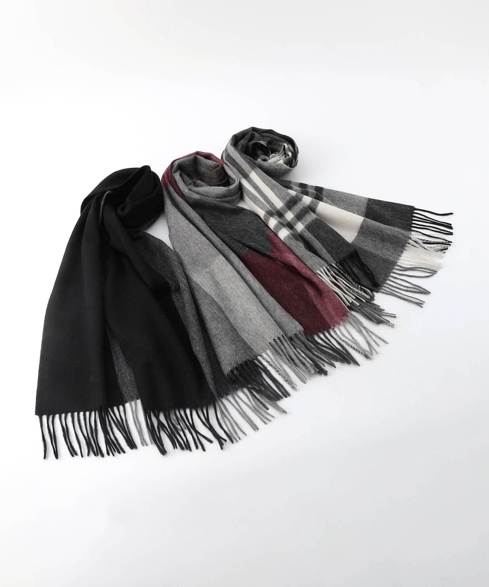 原毛から製品まで一貫した工場で生産された高品質マフラーは、カシミヤ特有の上品な肌触り、上質な光沢感が特徴。