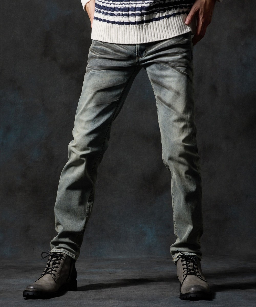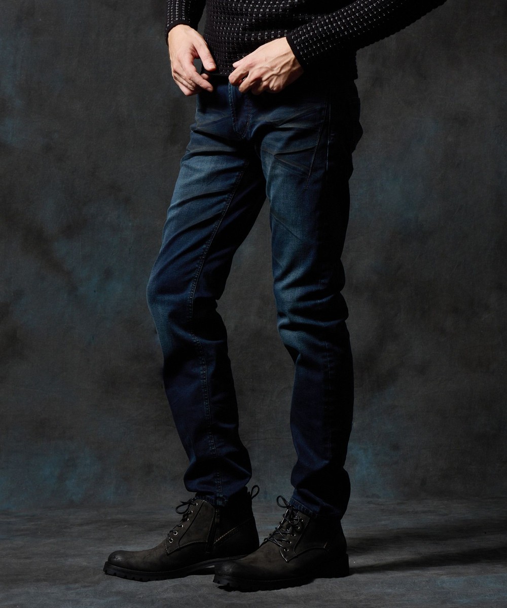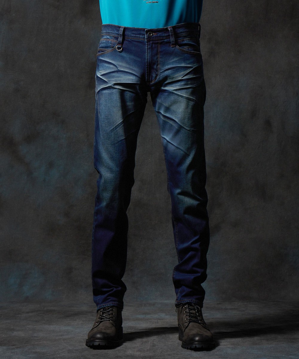 通常の削り加工に加えて前股のひげは立体的なひげ、顔料を吹き付ける事で他には無い陰影感のデニムに仕上げています。