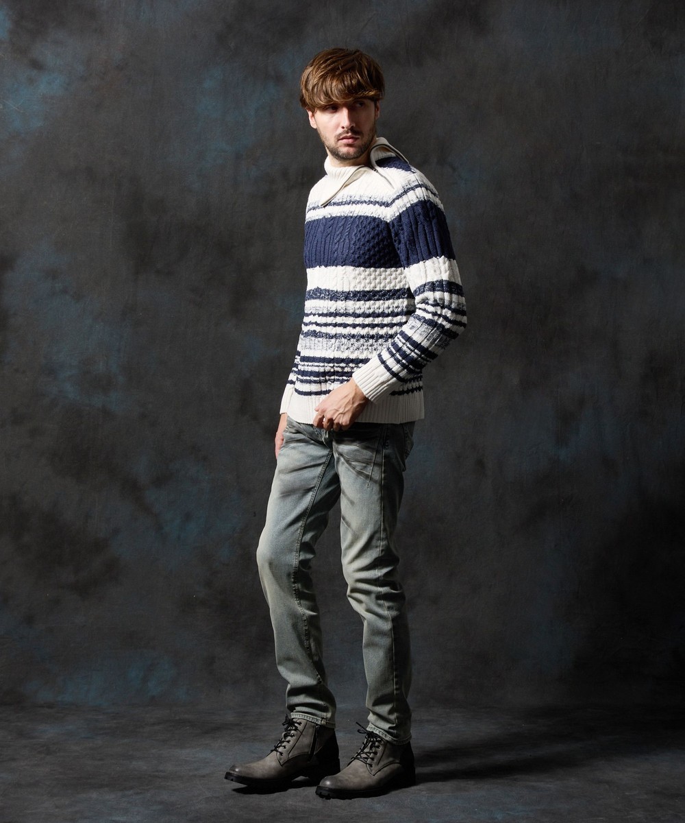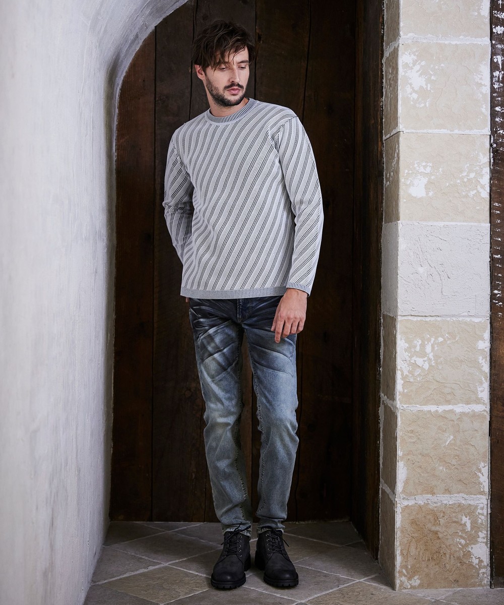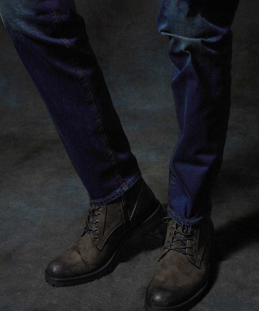 通常の削り加工に加えて前股のひげは立体的なひげ、顔料を吹き付ける事で他には無い陰影感のデニムに仕上げています。