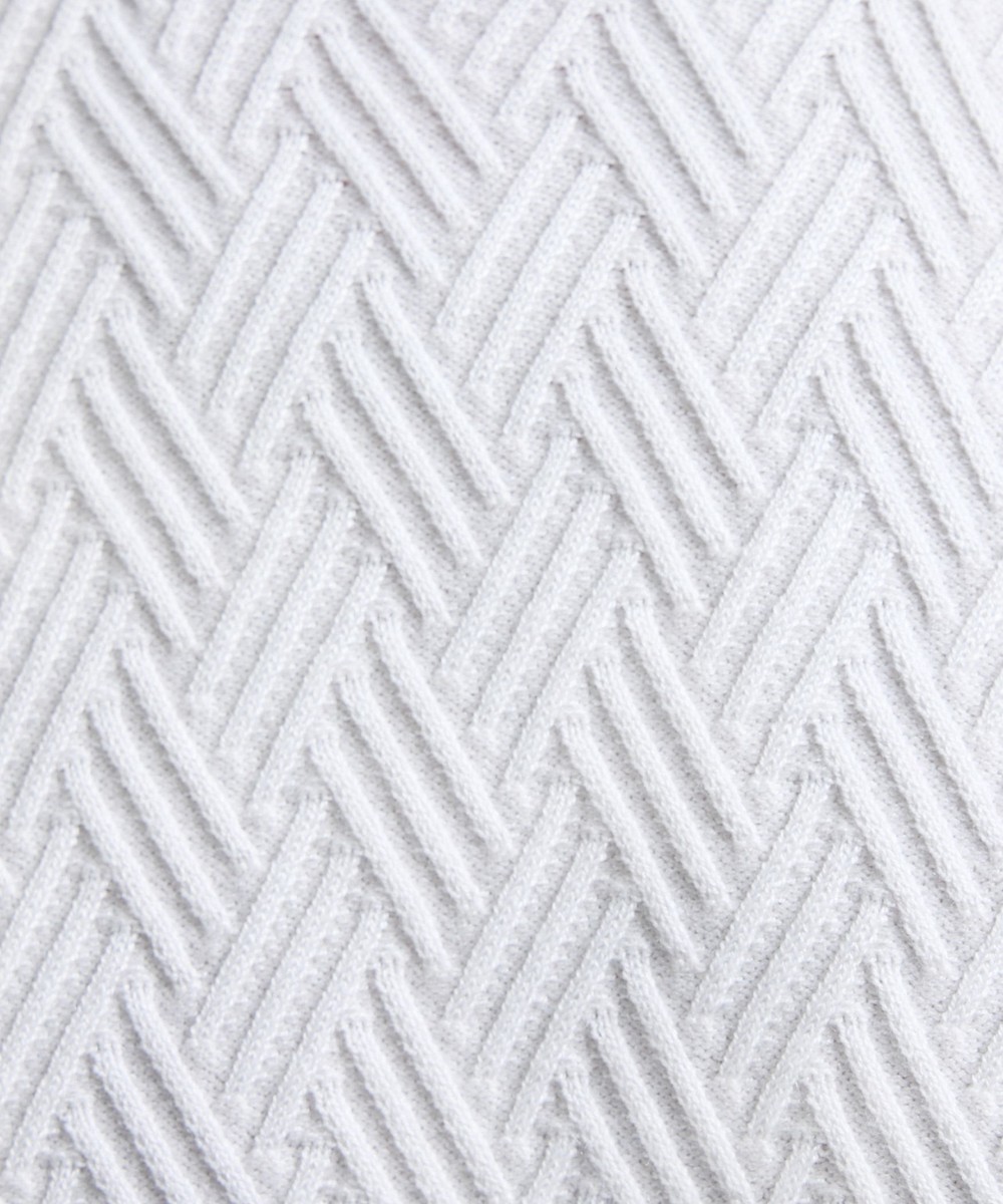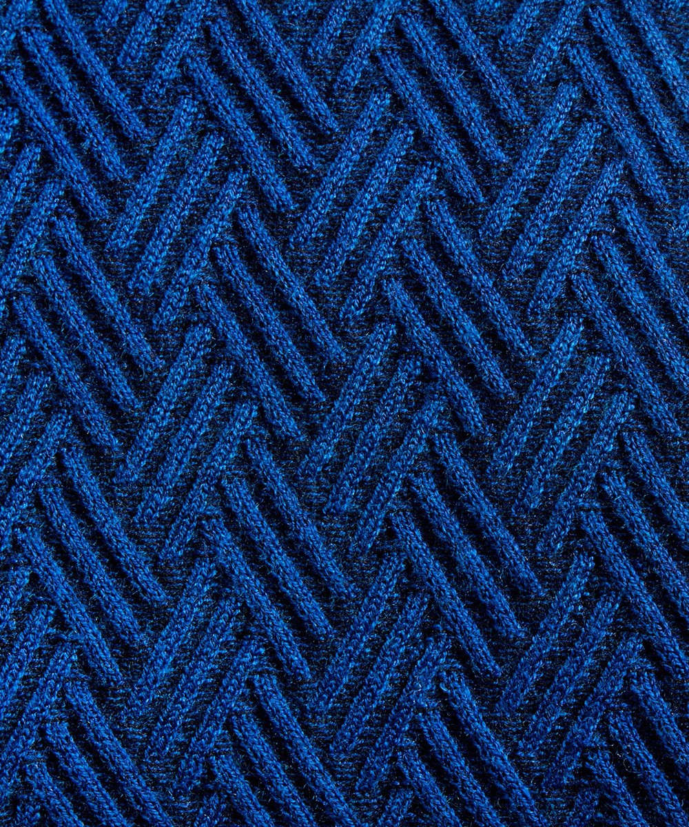 菱形を組み合わせた様なバスケット柄をプレ-ティング編みで表現しています。