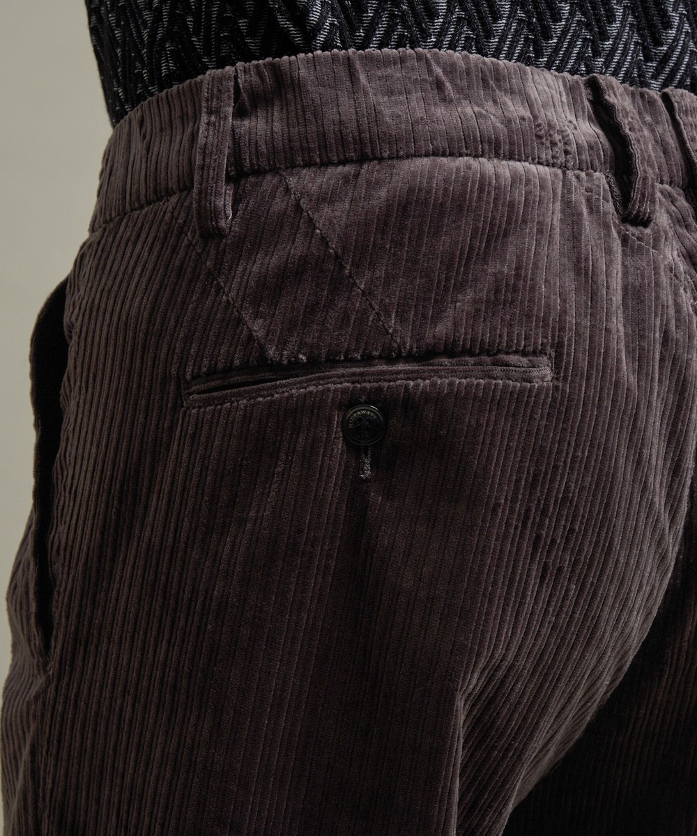 細畝と太畝が交互に入った表面感のある素材で、通常よりもパイルの密度を上げることで、高級感のある上品な光沢を出しました。