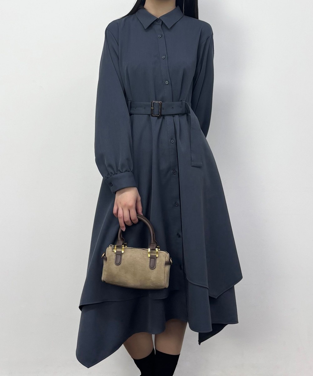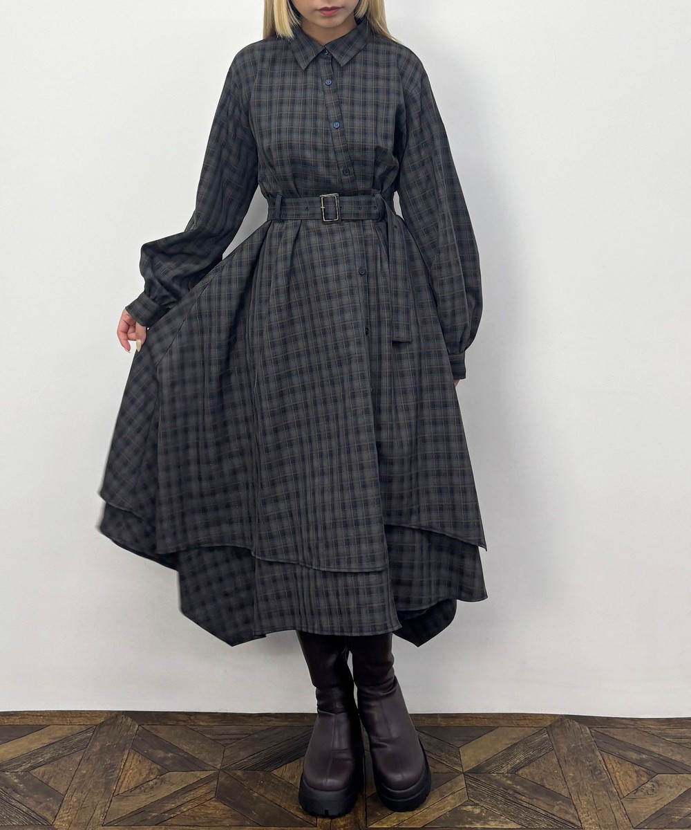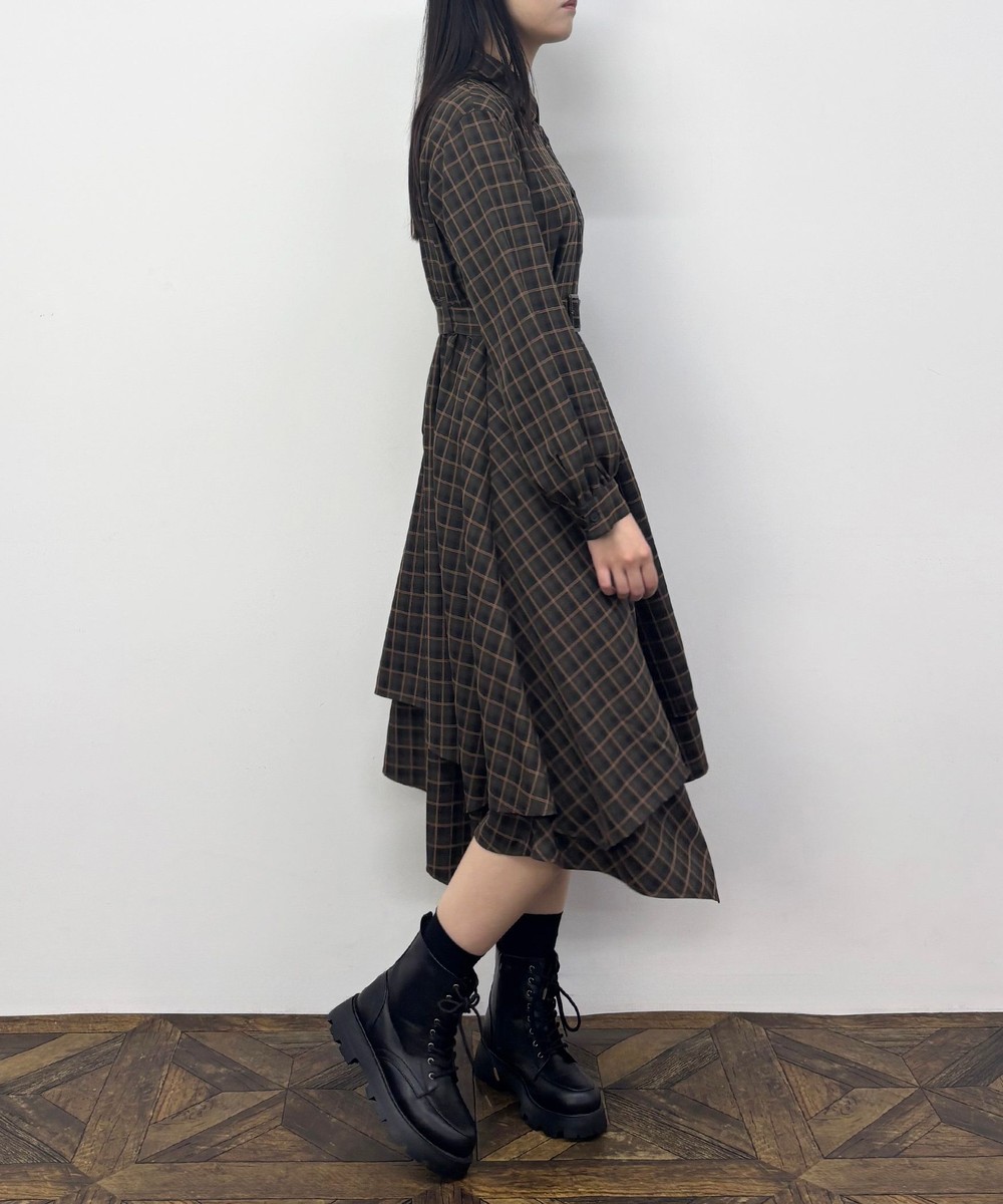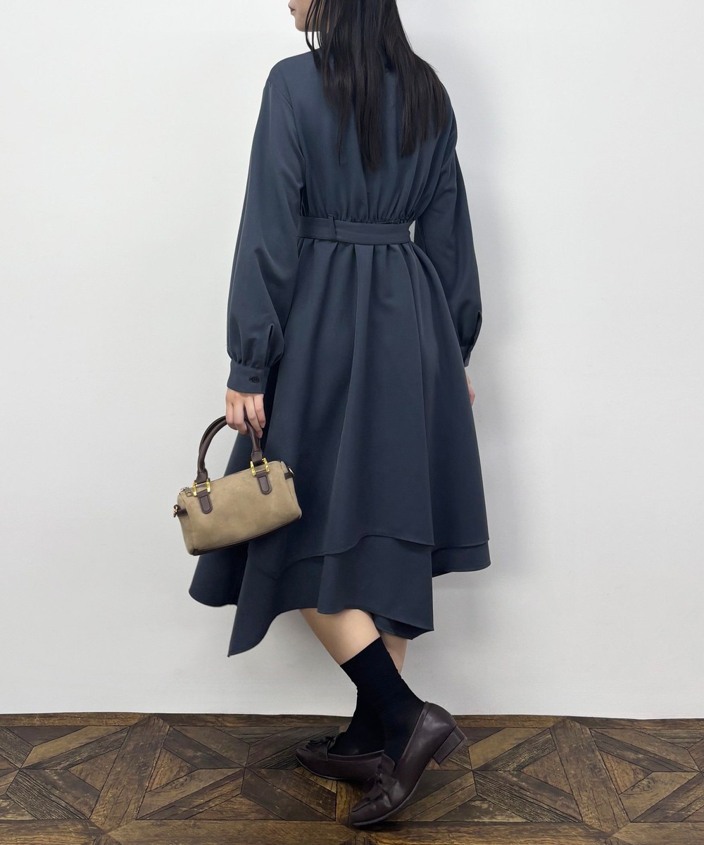 レイヤードデザインのスカート部分は立体感があり、一枚でも着映えするワンピースです。