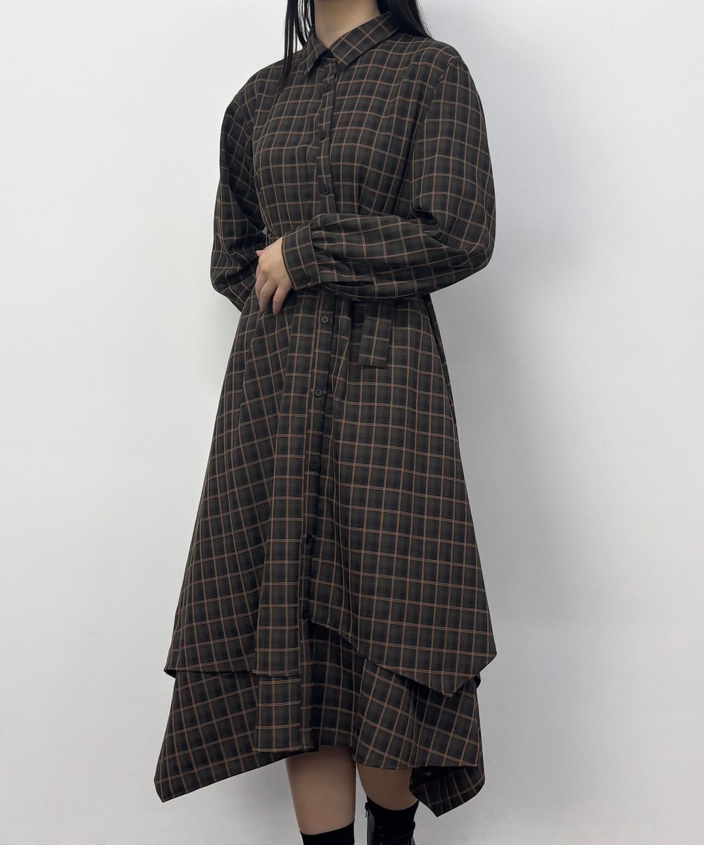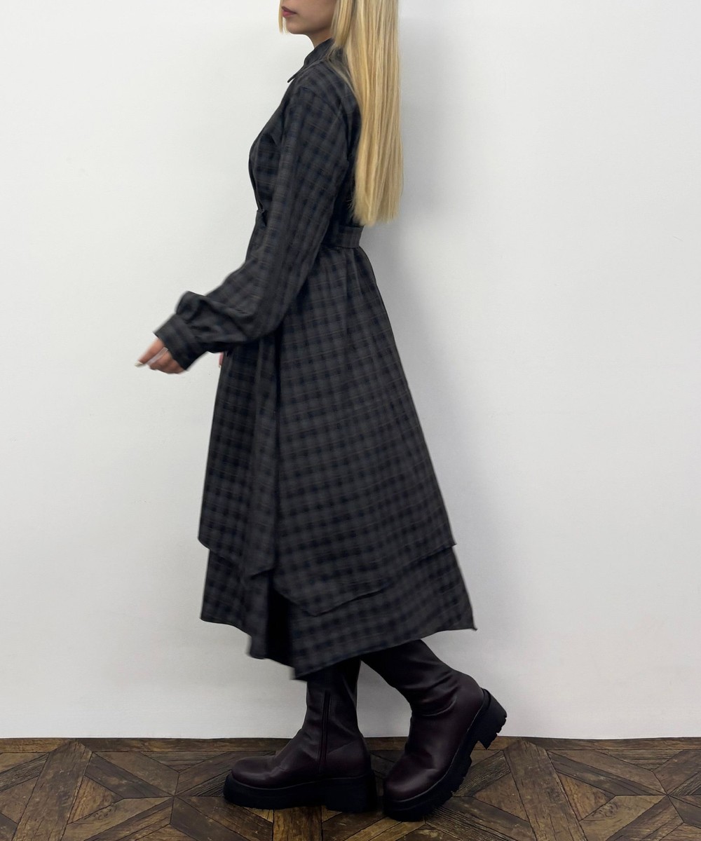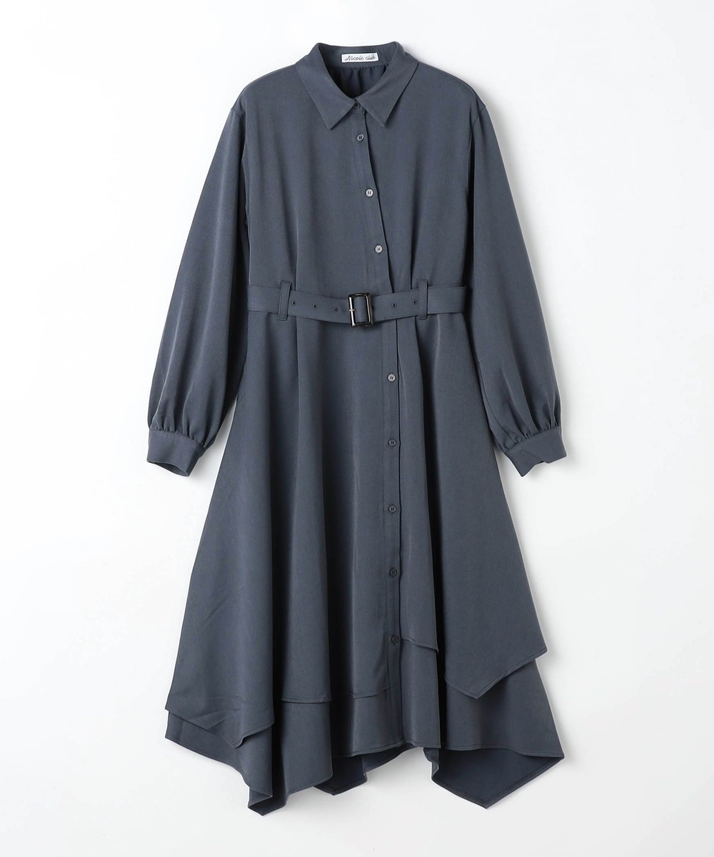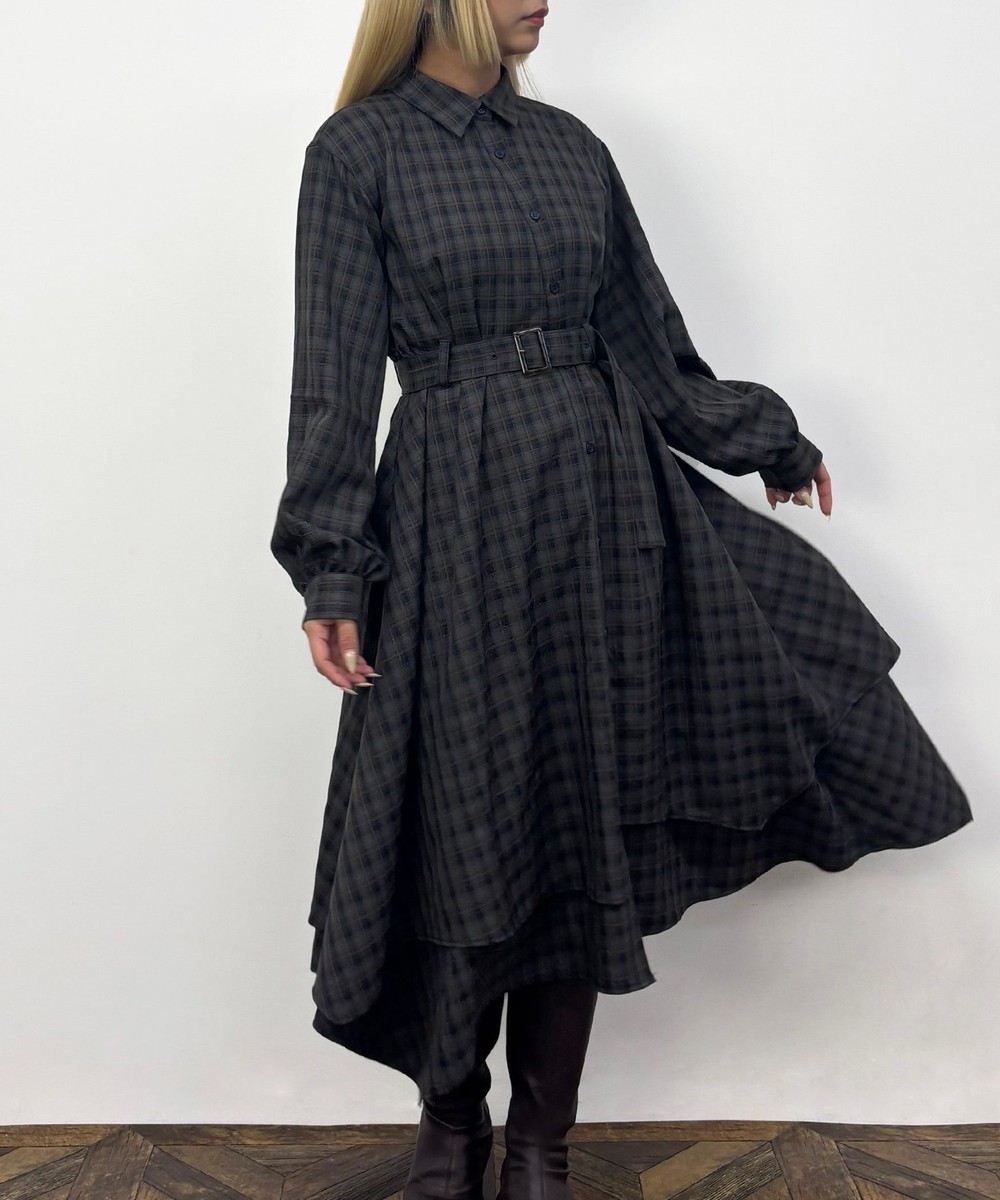 レイヤードデザインのスカート部分は立体感があり、一枚でも着映えするワンピースです。