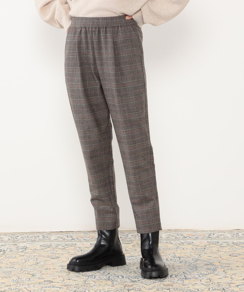 ◆コーディネートはダークなグレンチェックが新鮮で無地のブラウス・ニットなどきれいめからカジュアルまでスタイリングが楽しめます。