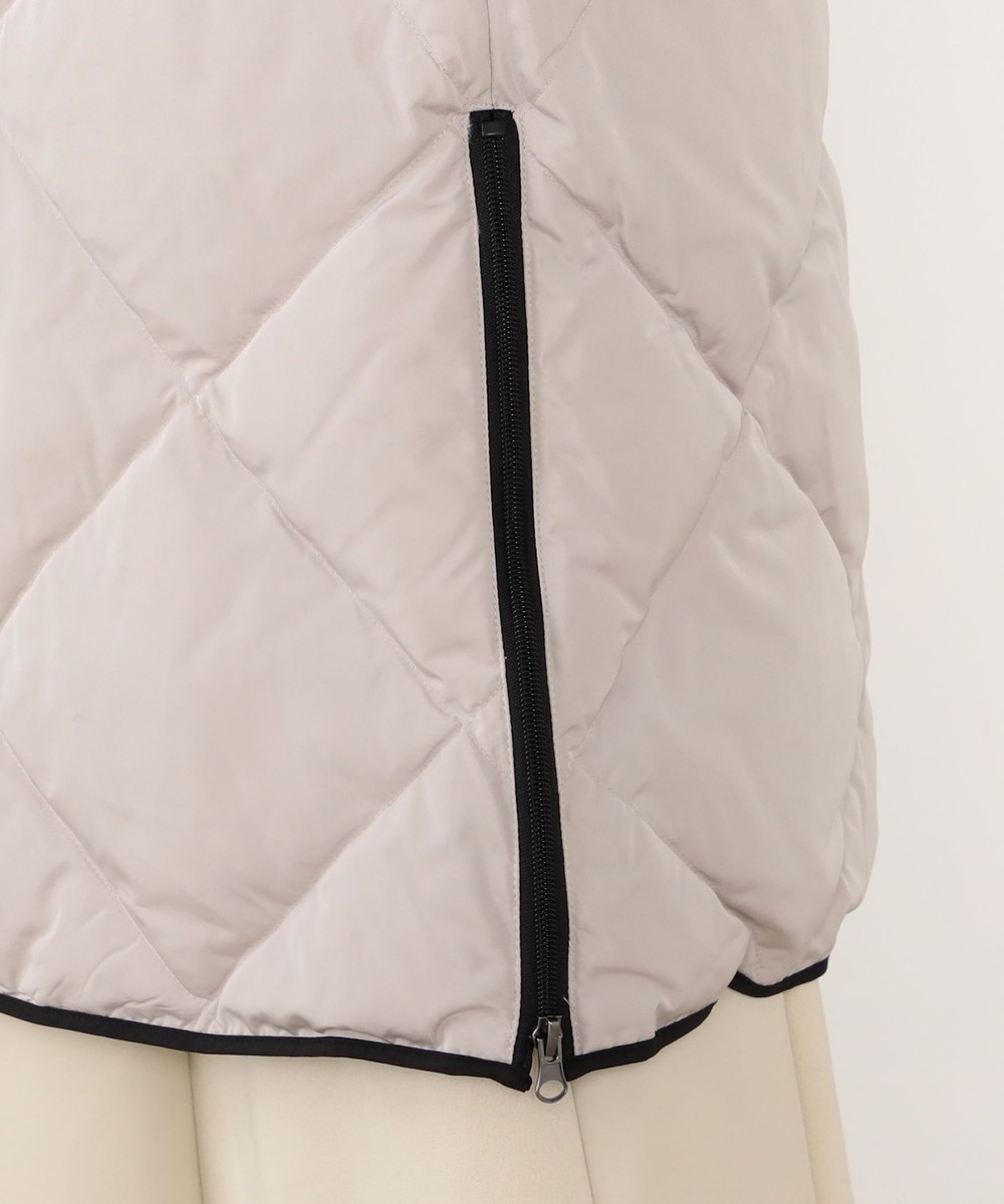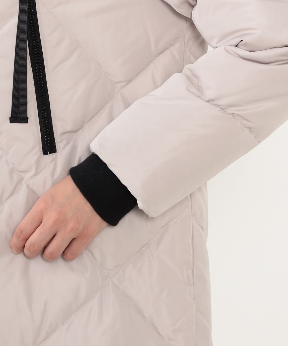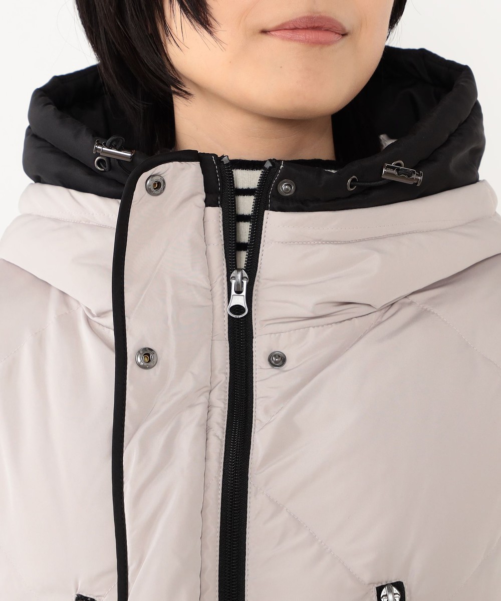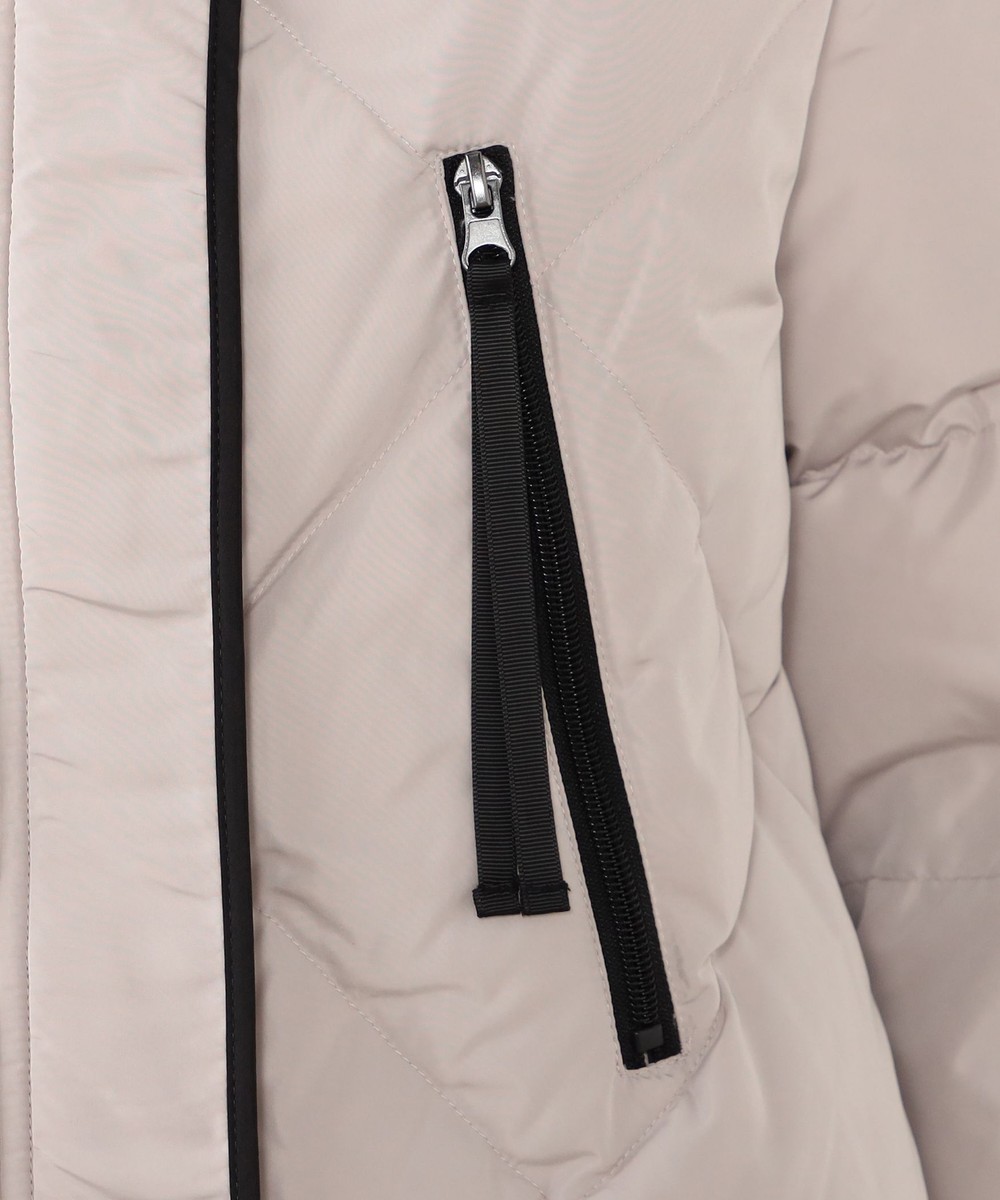 ◆デザインは前後の身ごろにダイヤ柄ステッチ、前立てスタンドネックフード付き袖口はリブ仕様、裾脇のファスナーによりスリットの長さ調整が可能です。ベージュは前立ての配色仕様もポイントです。