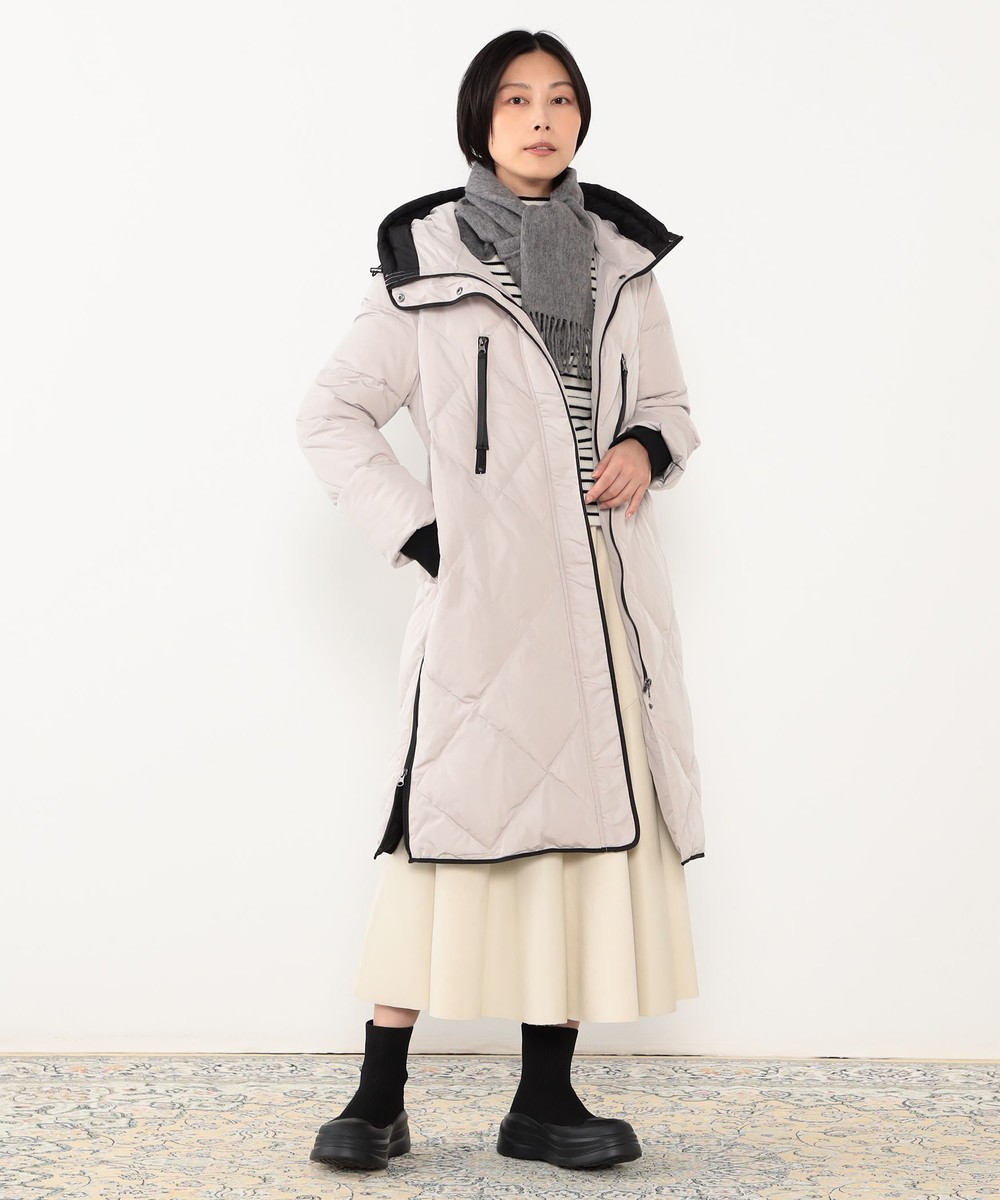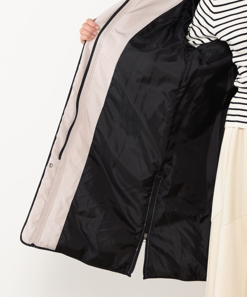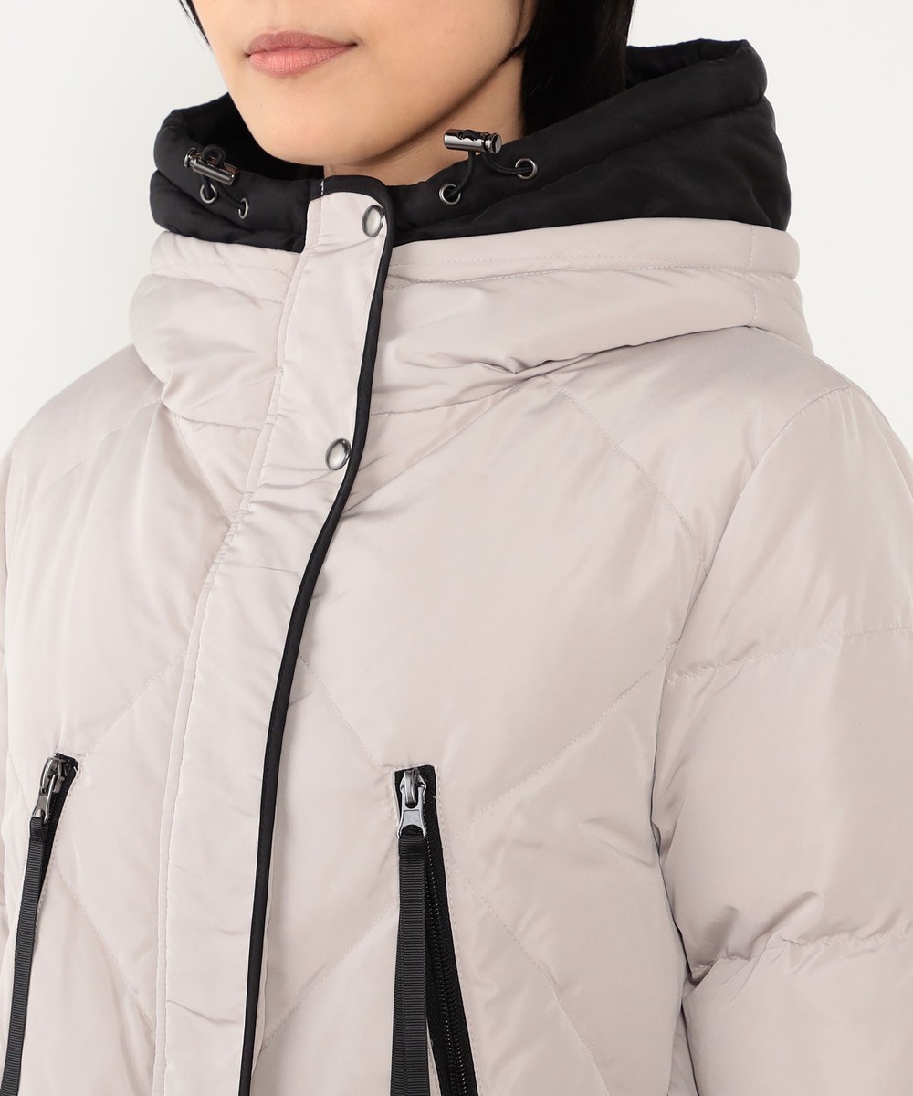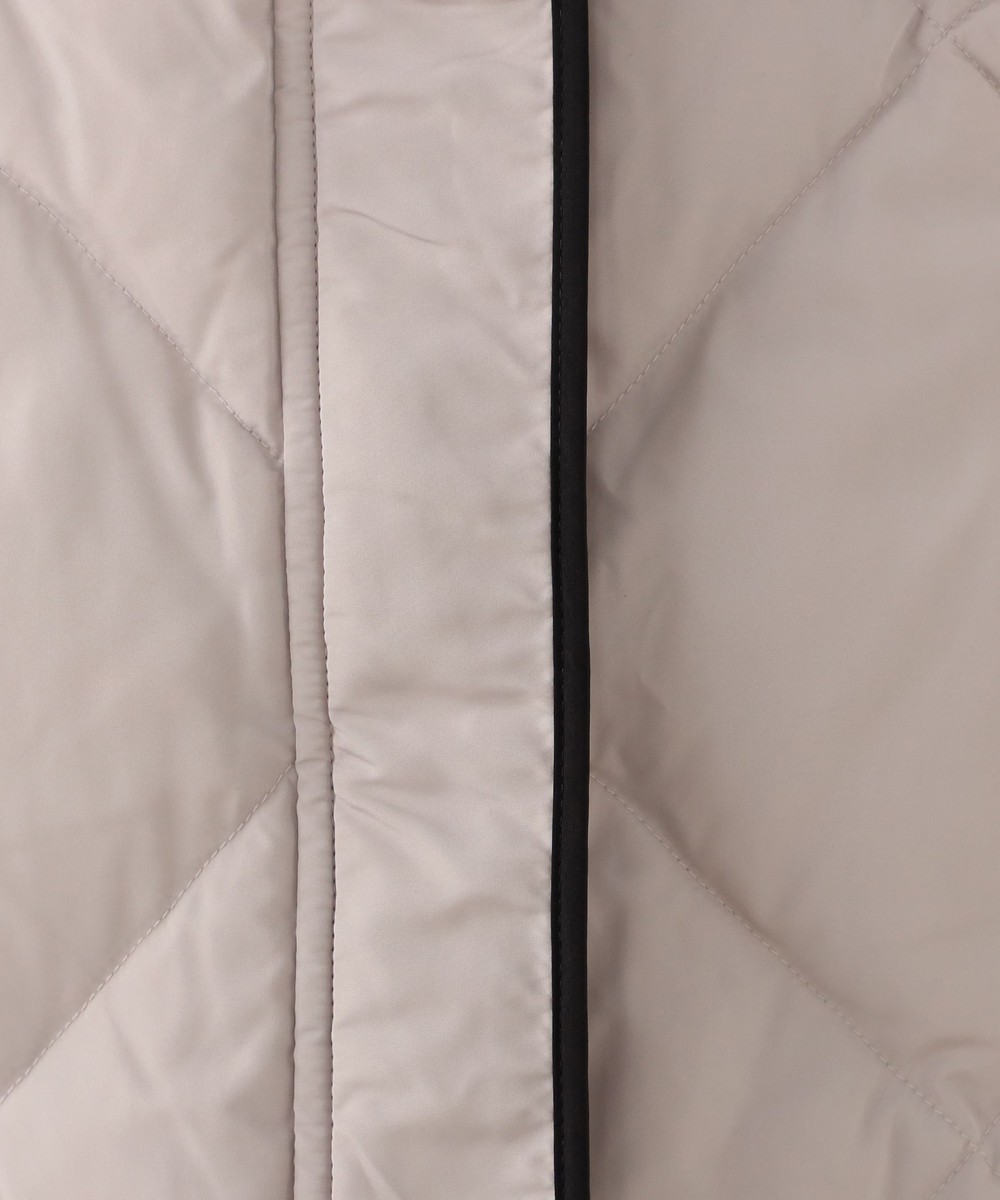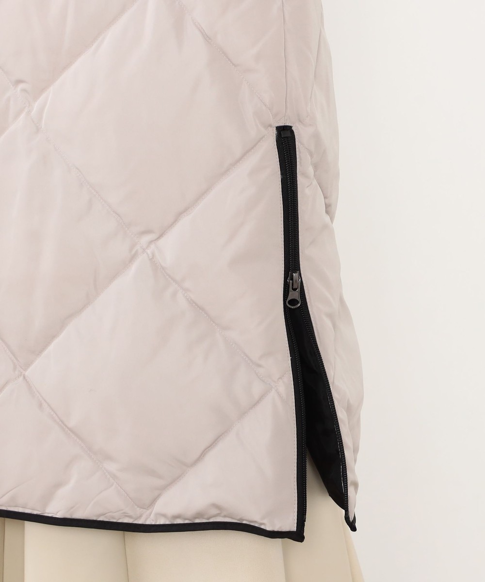 ◆デザインは前後の身ごろにダイヤ柄ステッチ、前立てスタンドネックフード付き袖口はリブ仕様、裾脇のファスナーによりスリットの長さ調整が可能です。ベージュは前立ての配色仕様もポイントです。