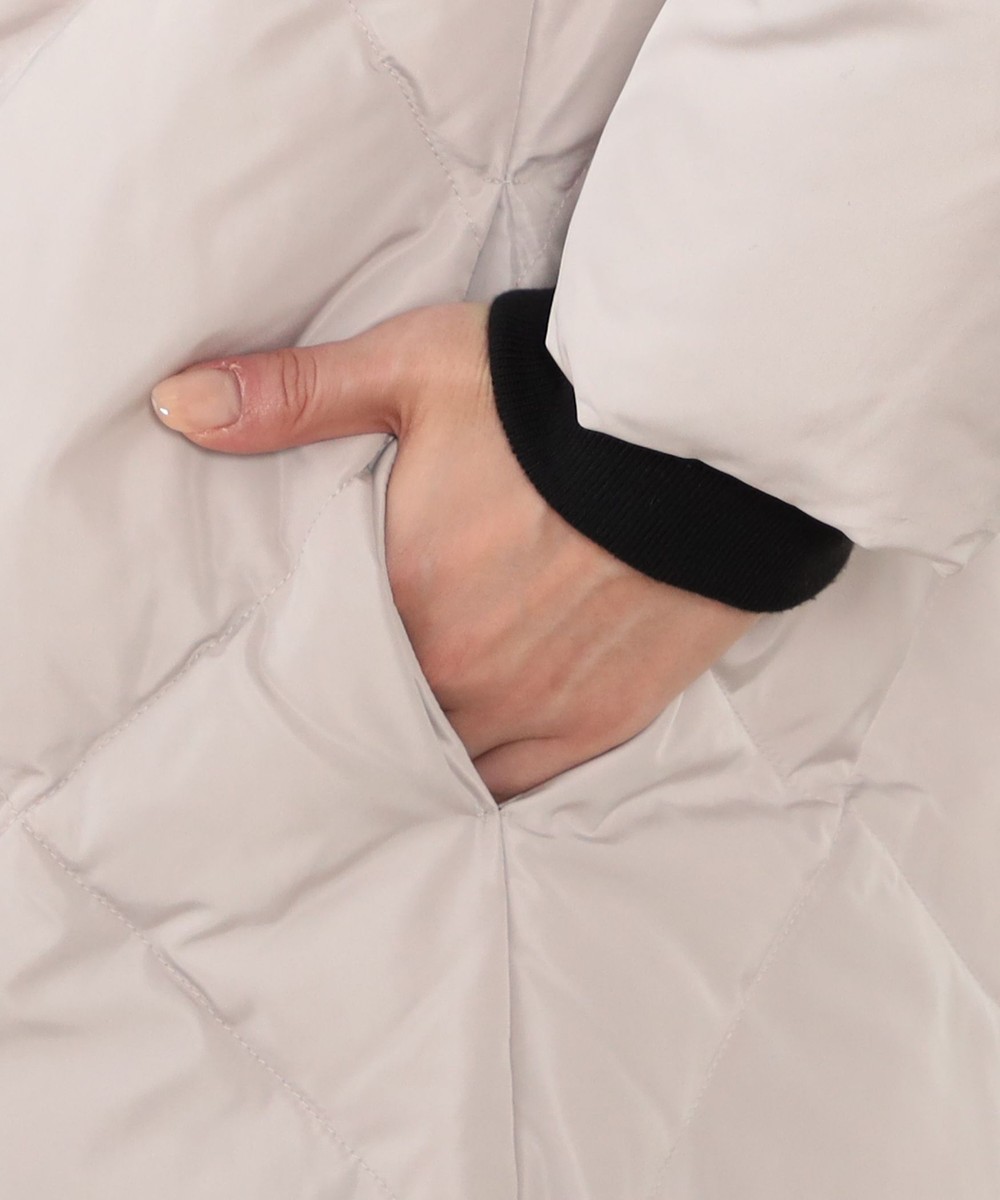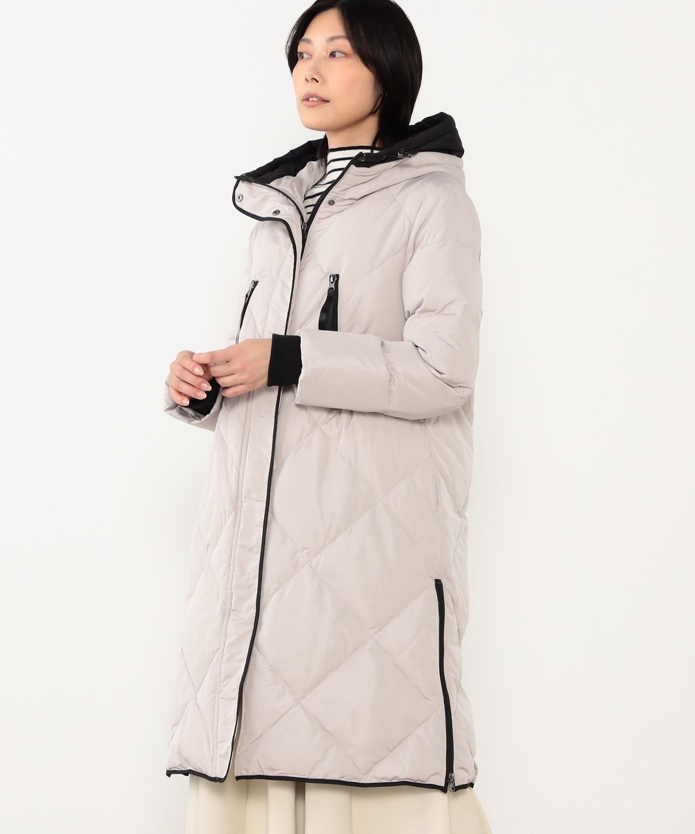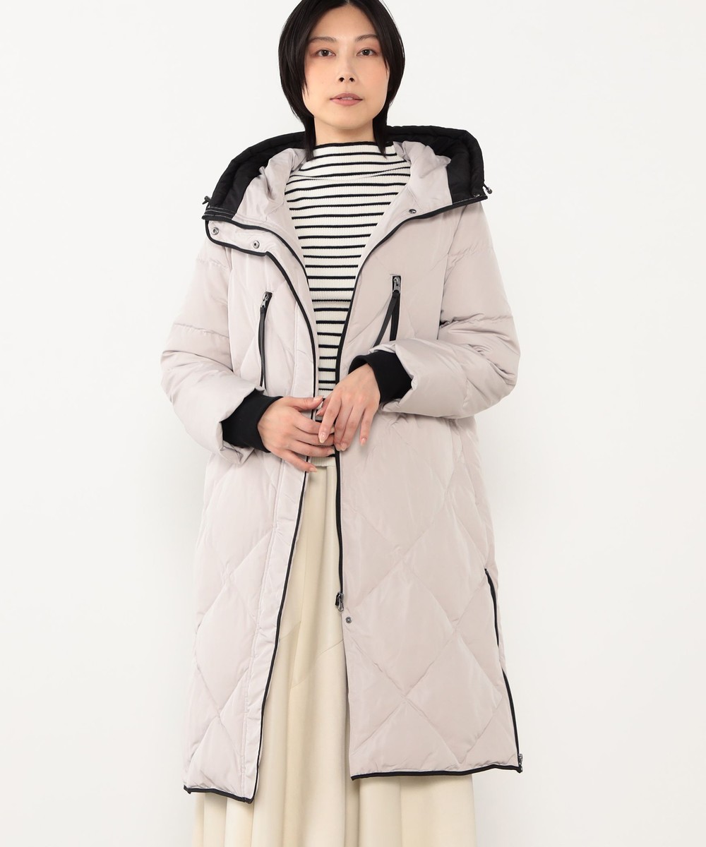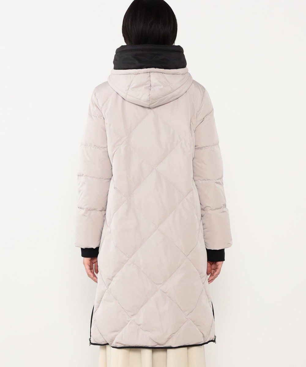 ◆デザインは前後の身ごろにダイヤ柄ステッチ、前立てスタンドネックフード付き袖口はリブ仕様、裾脇のファスナーによりスリットの長さ調整が可能です。ベージュは前立ての配色仕様もポイントです。