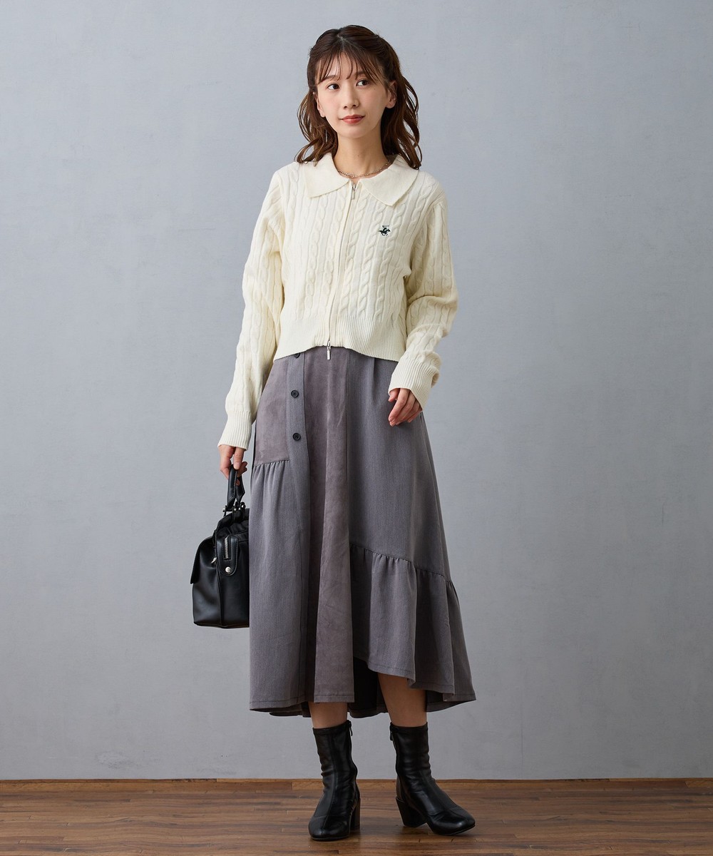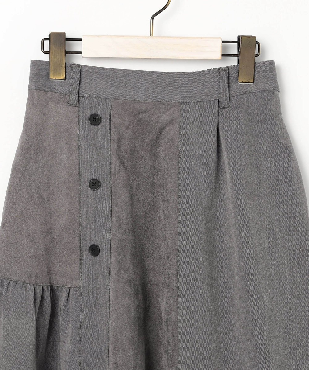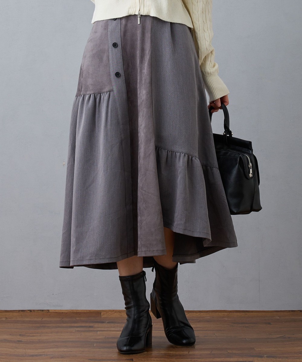 スエード調の起毛素材との異素材使いが秋冬らしい一枚です。