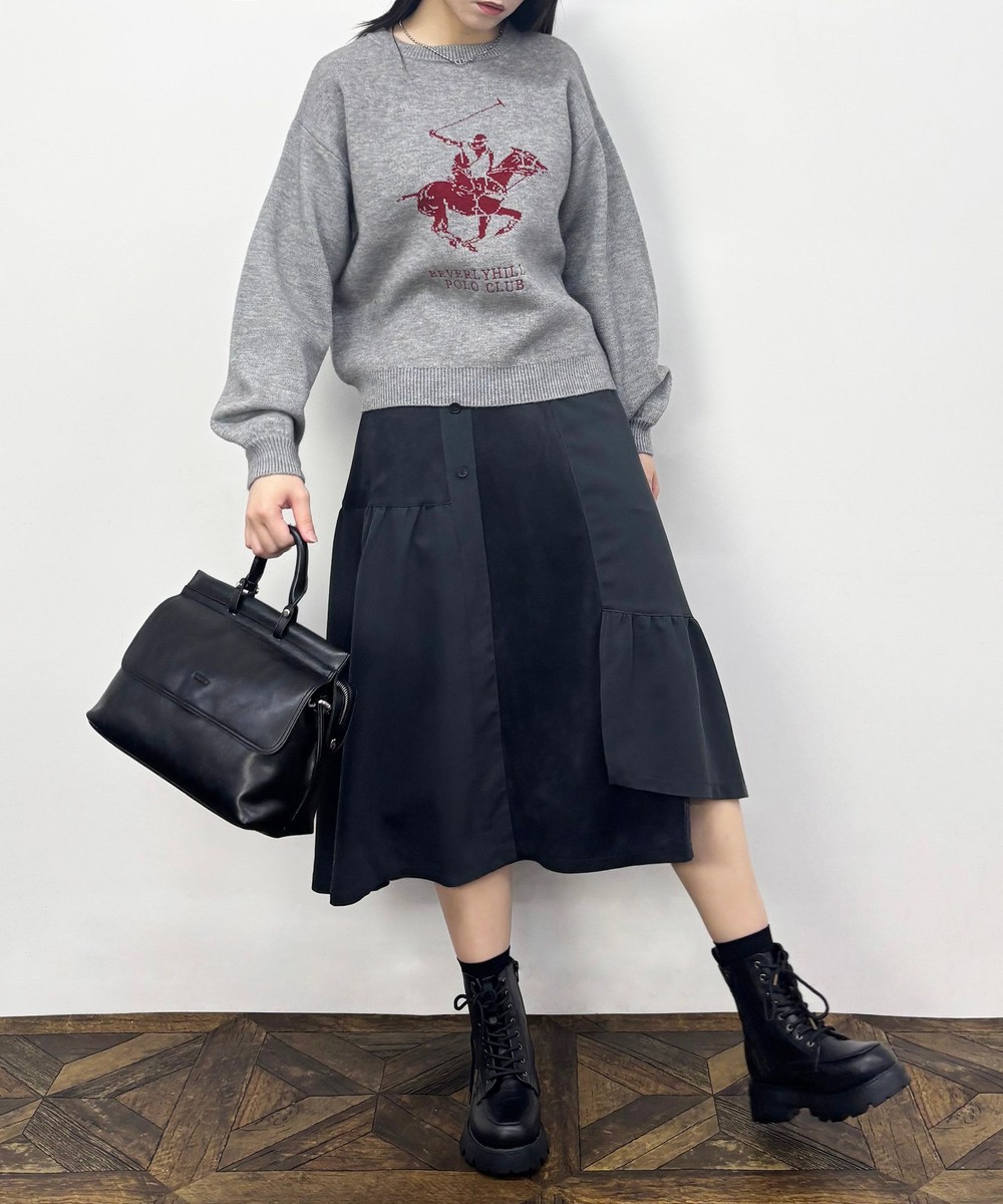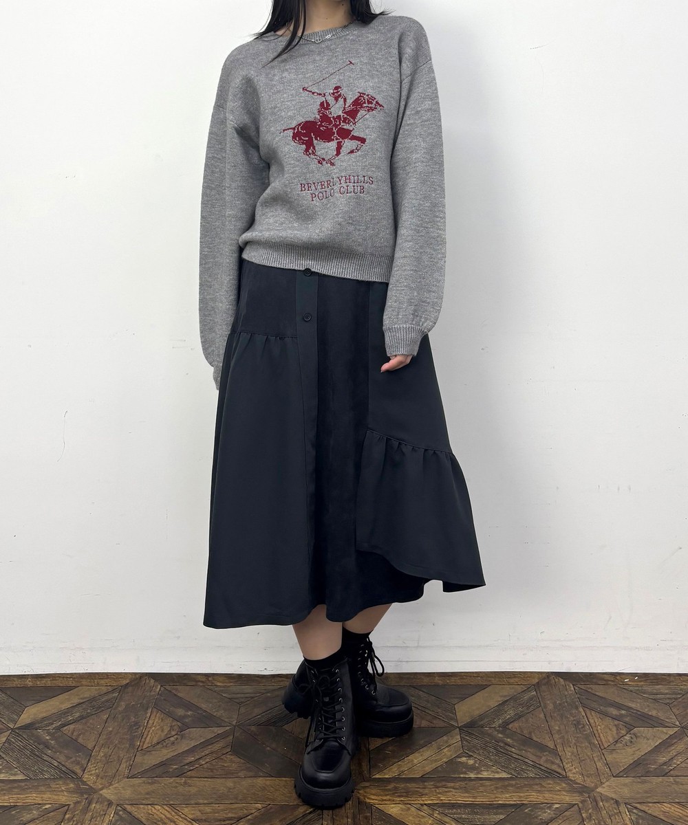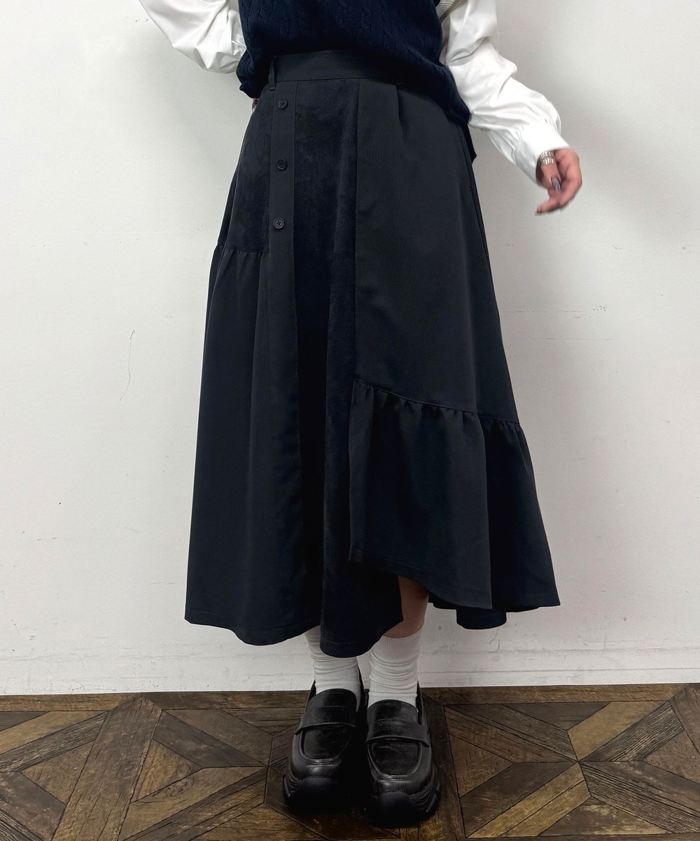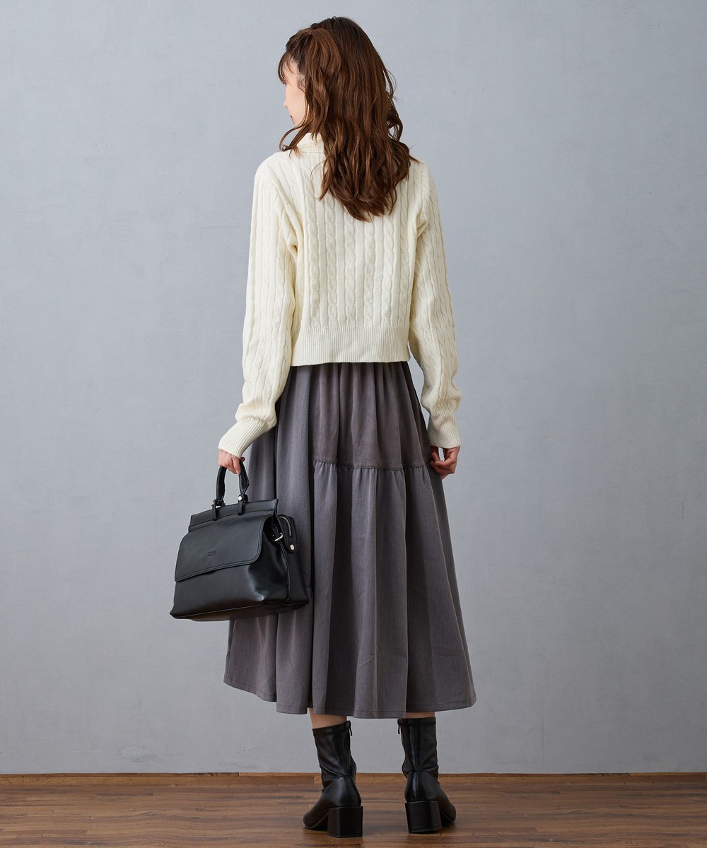 スエード調の起毛素材との異素材使いが秋冬らしい一枚です。