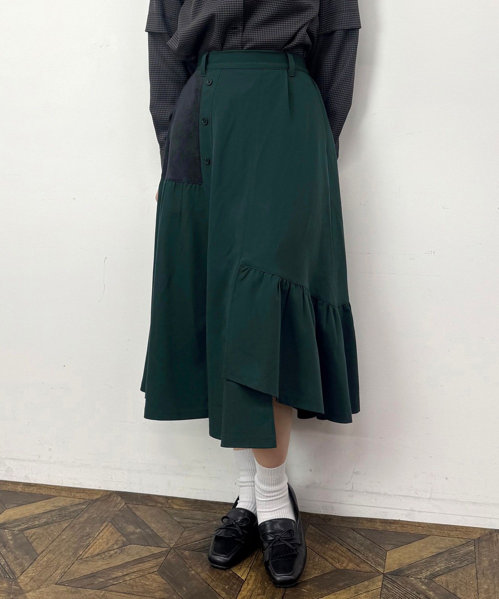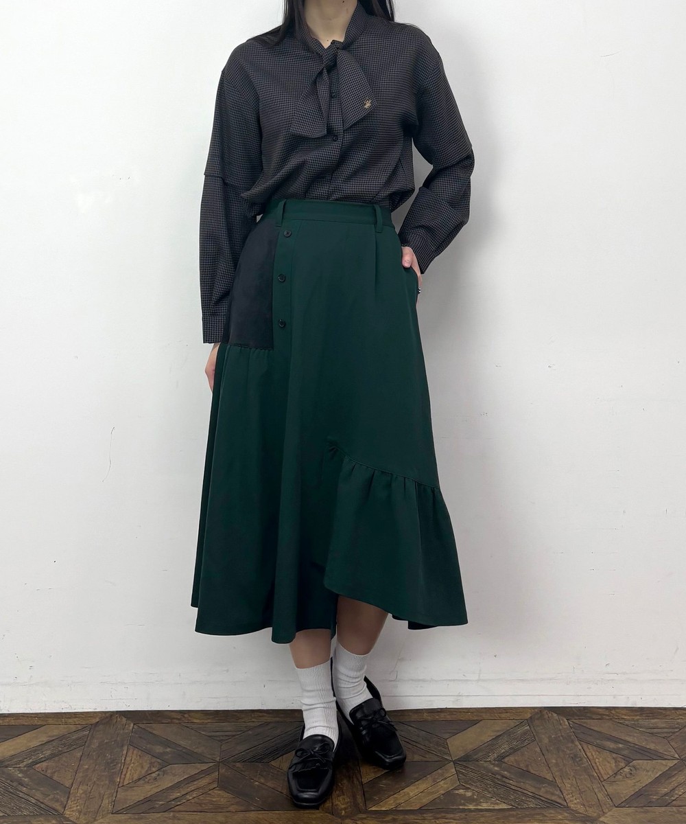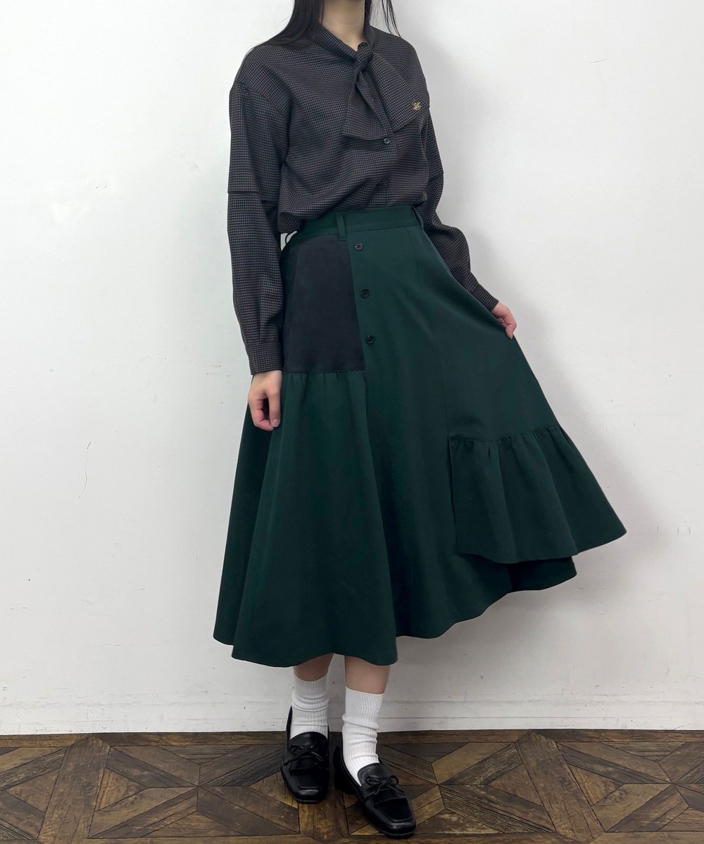 同色系や微配色のカラーリングでまとめることで切り替えのデザインを生かしつつも様々なトップスと合わせやすいのがポイント◎